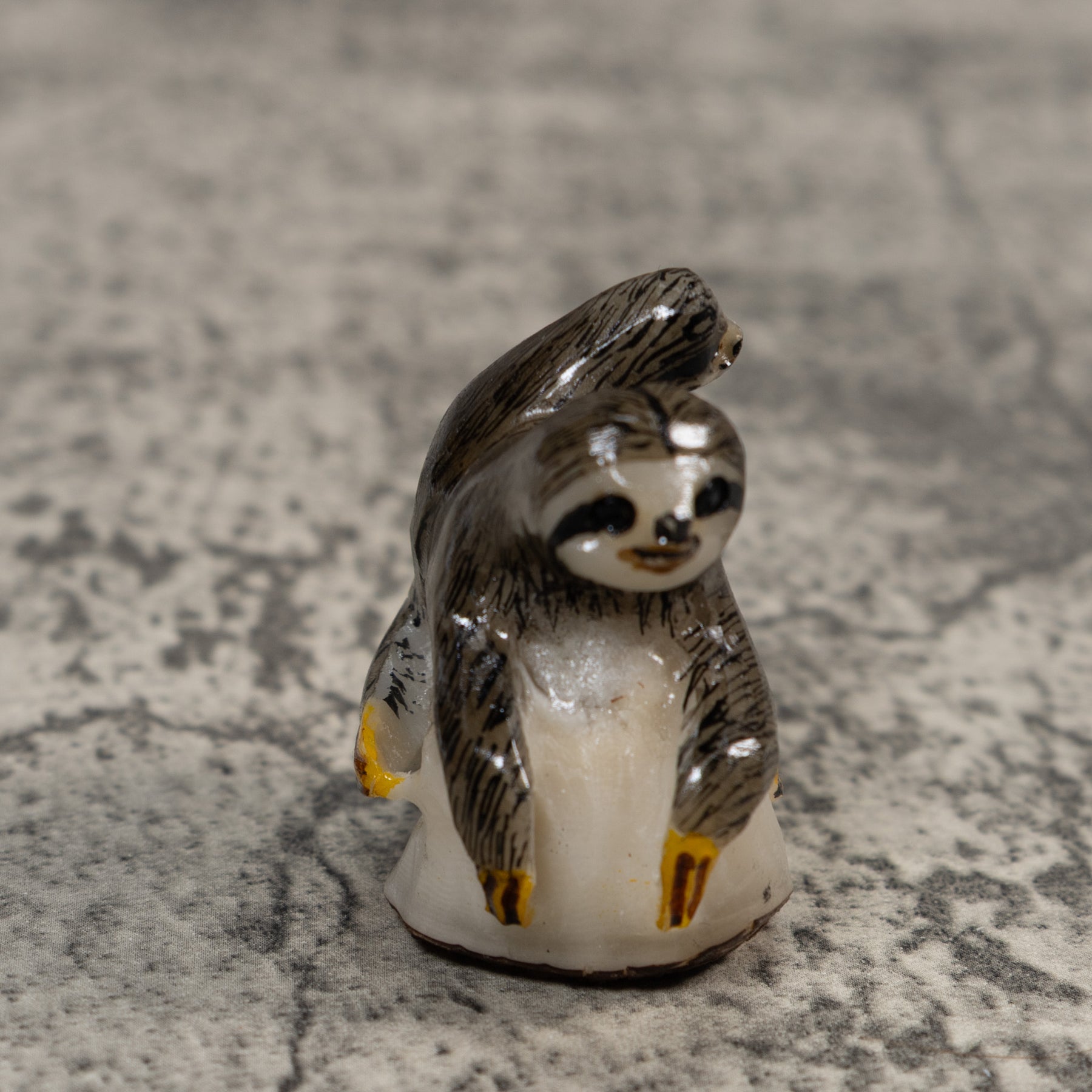 Hand carved from sustainably harvested tagua nut, often called “vegetable ivory”, this charming Sloth celebrates the rich biodiversity of the Latin American rainforest. Each small sculpture is created by skilled artisans in Panama who carefully shape and polish the natural nut before bringing the animal to life with detailed hand painting. Every piece is made by our artisan partners for TraderBrock, helping support traditional craft and fair, long term relationships with local makers.