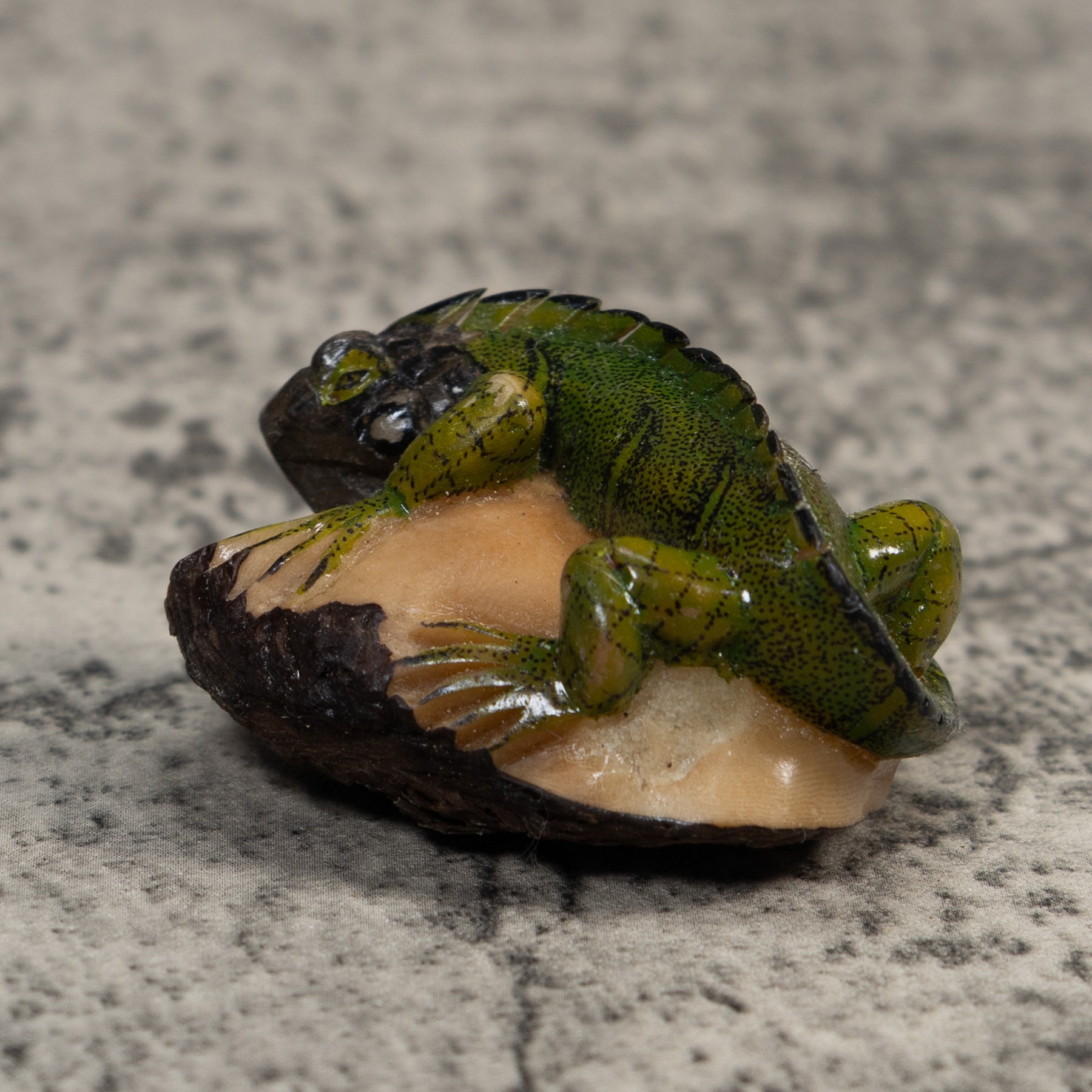 Hand carved from sustainably harvested tagua nut, often called “vegetable ivory”, this charming Iguana celebrates the rich biodiversity of the Latin American rainforest. Each small sculpture is created by skilled artisans in Panama who carefully shape and polish the natural nut before bringing the animal to life with detailed hand painting. Every piece is made by our artisan partners for TraderBrock, helping support traditional craft and fair, long term relationships with local makers.