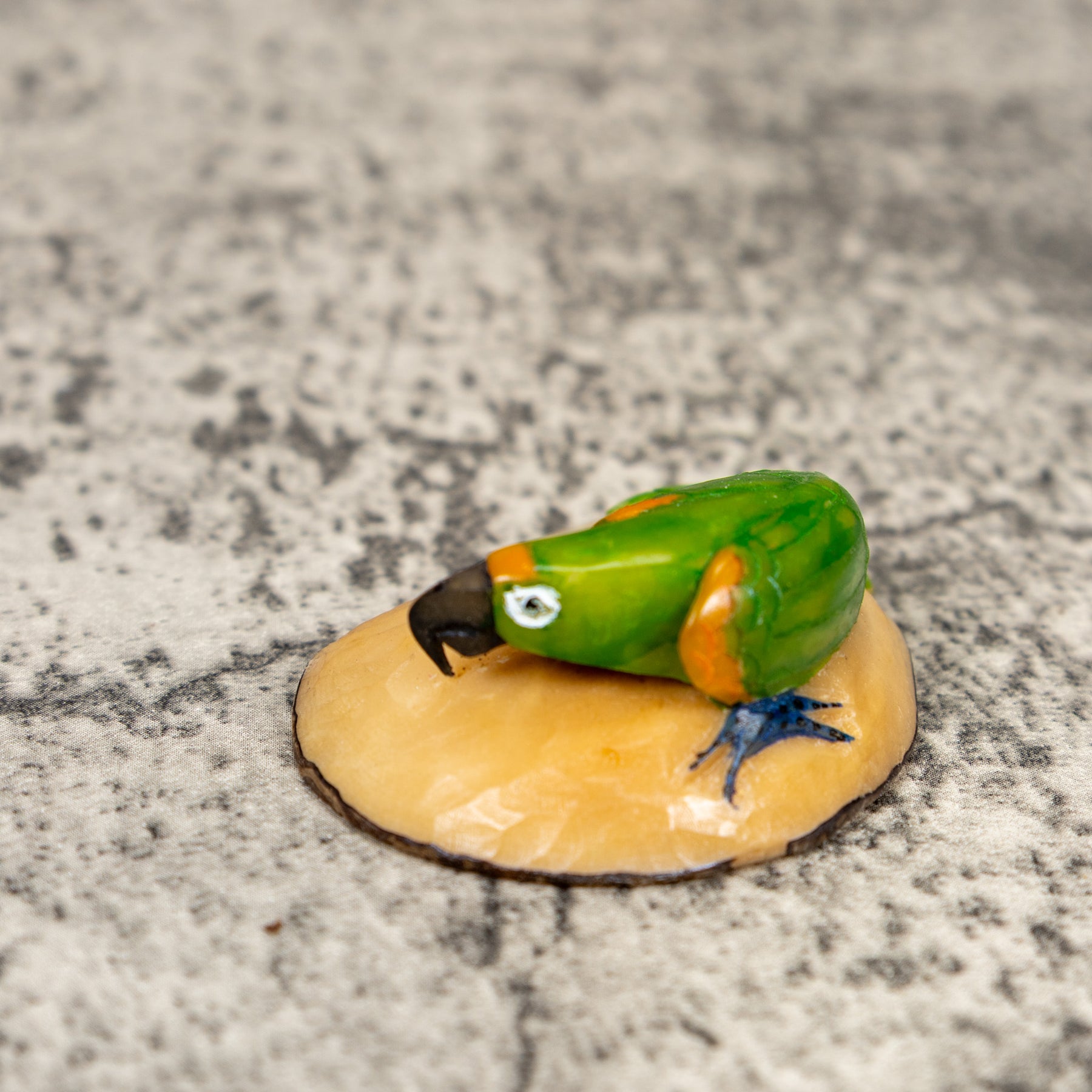 Hand carved from sustainably harvested tagua nut, often called “vegetable ivory”, this charming Parrot celebrates the rich biodiversity of the Latin American rainforest. Each small sculpture is created by skilled artisans in Panama who carefully shape and polish the natural nut before bringing the animal to life with detailed hand painting. Every piece is made by our artisan partners for TraderBrock, helping support traditional craft and fair, long term relationships with local makers.