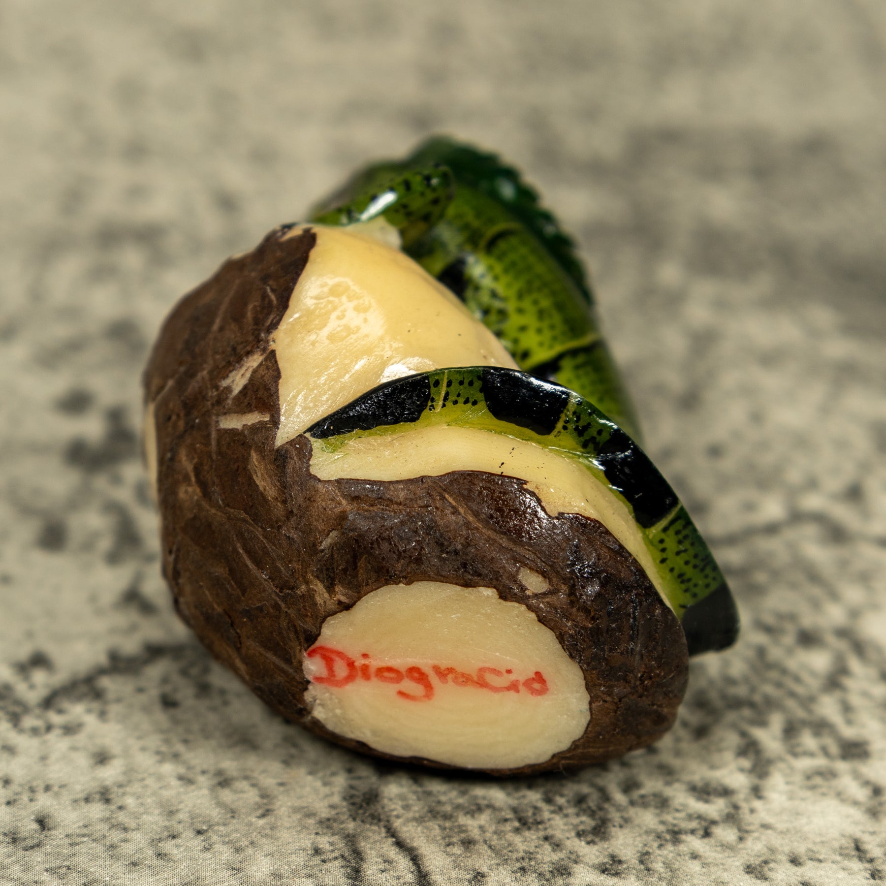 • Hand carved tagua nut “vegetable ivory” from the rainforest