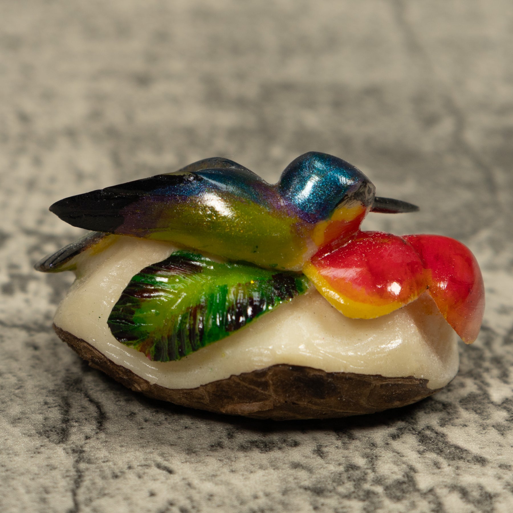 Hand carved from sustainably harvested tagua nut, often called “vegetable ivory”, this charming Hummingbird Tagua Carving celebrates the rich biodiversity of the Latin American rainforest. Each small sculpture is created by skilled artisans in Panama who carefully shape and polish the natural nut before bringing the animal to life with detailed hand painting. Every piece is made by our artisan partners for TraderBrock, helping support traditional craft and fair, long term relationships with local makers.
