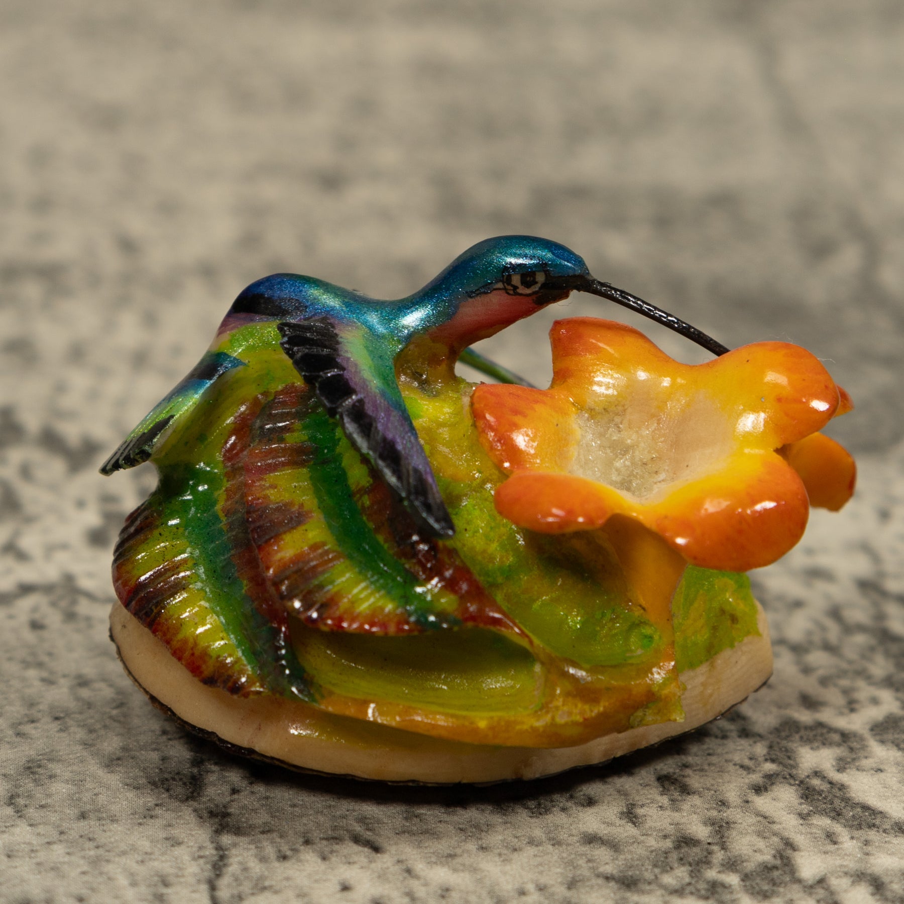 Hand carved from sustainably harvested tagua nut, often called “vegetable ivory”, this charming Hummingbird Tagua Carving celebrates the rich biodiversity of the Latin American rainforest. Each small sculpture is created by skilled artisans in Panama who carefully shape and polish the natural nut before bringing the animal to life with detailed hand painting. Every piece is made by our artisan partners for TraderBrock, helping support traditional craft and fair, long term relationships with local makers.