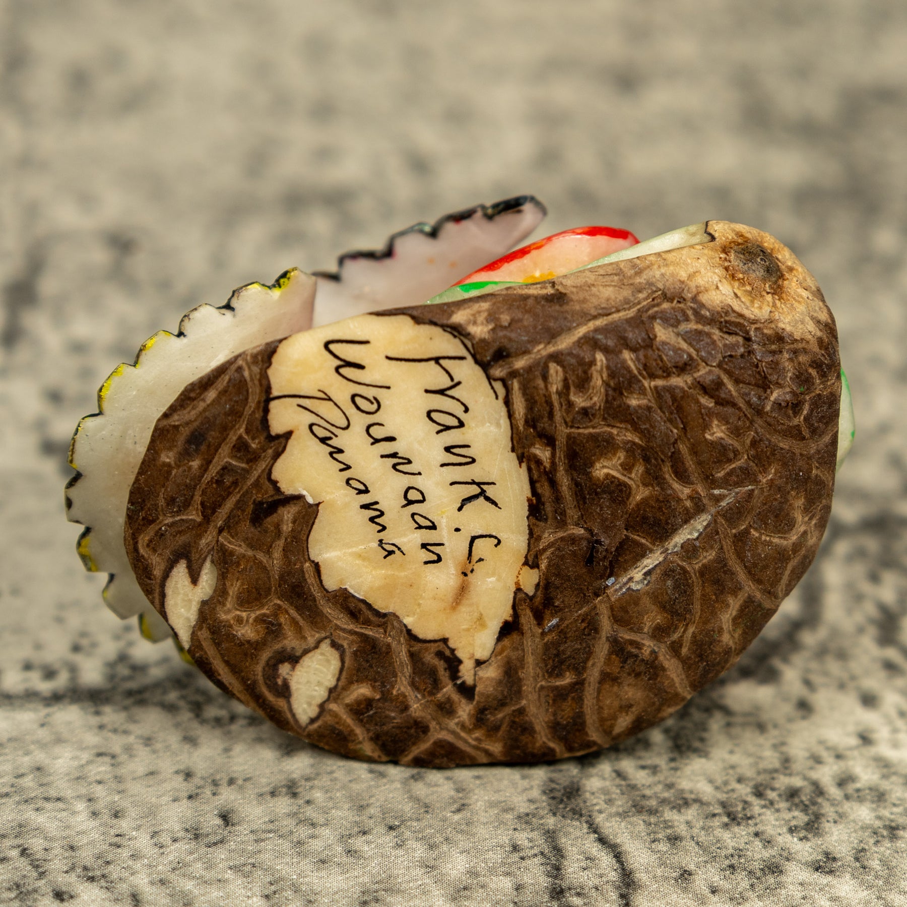 • Hand carved tagua nut “vegetable ivory” from the rainforest