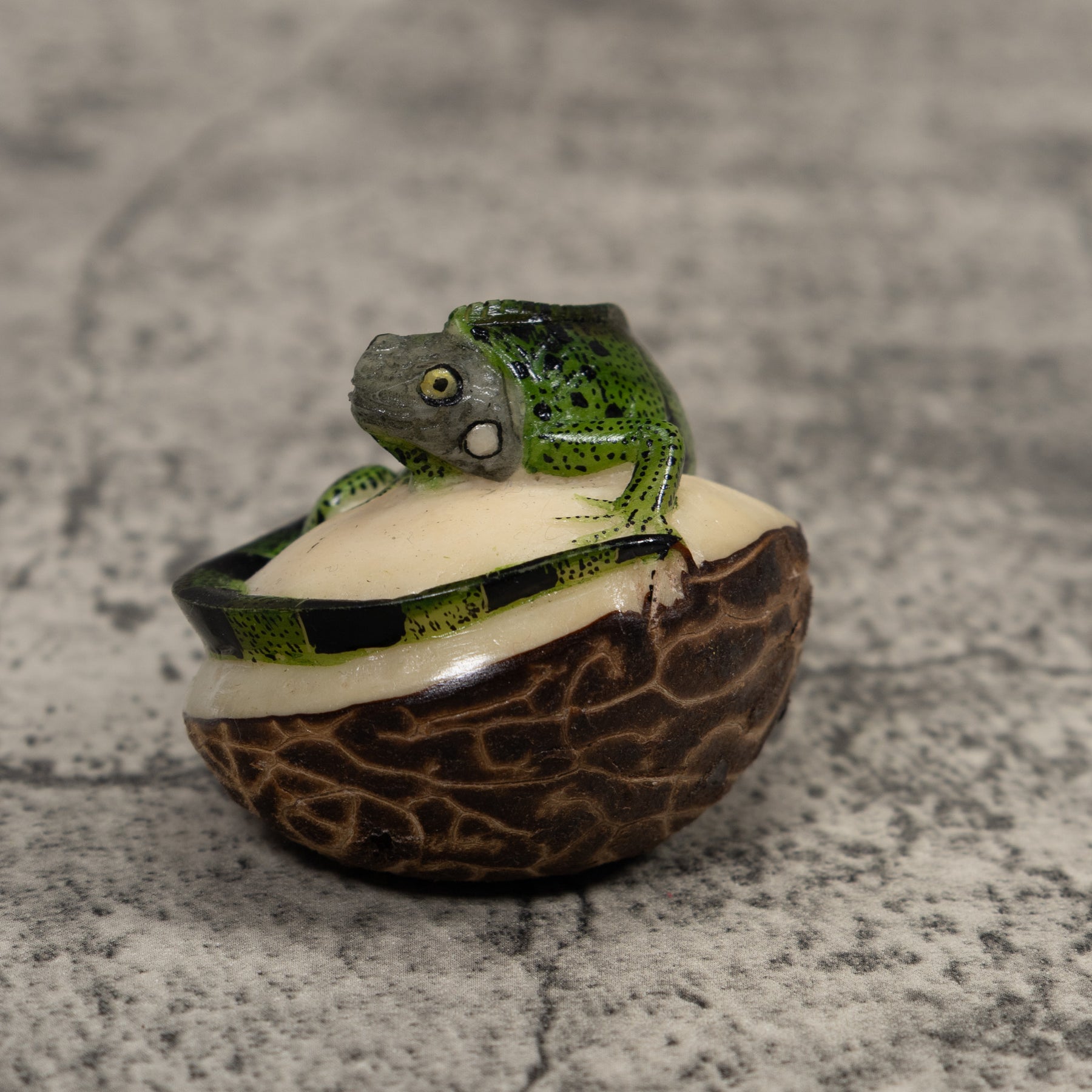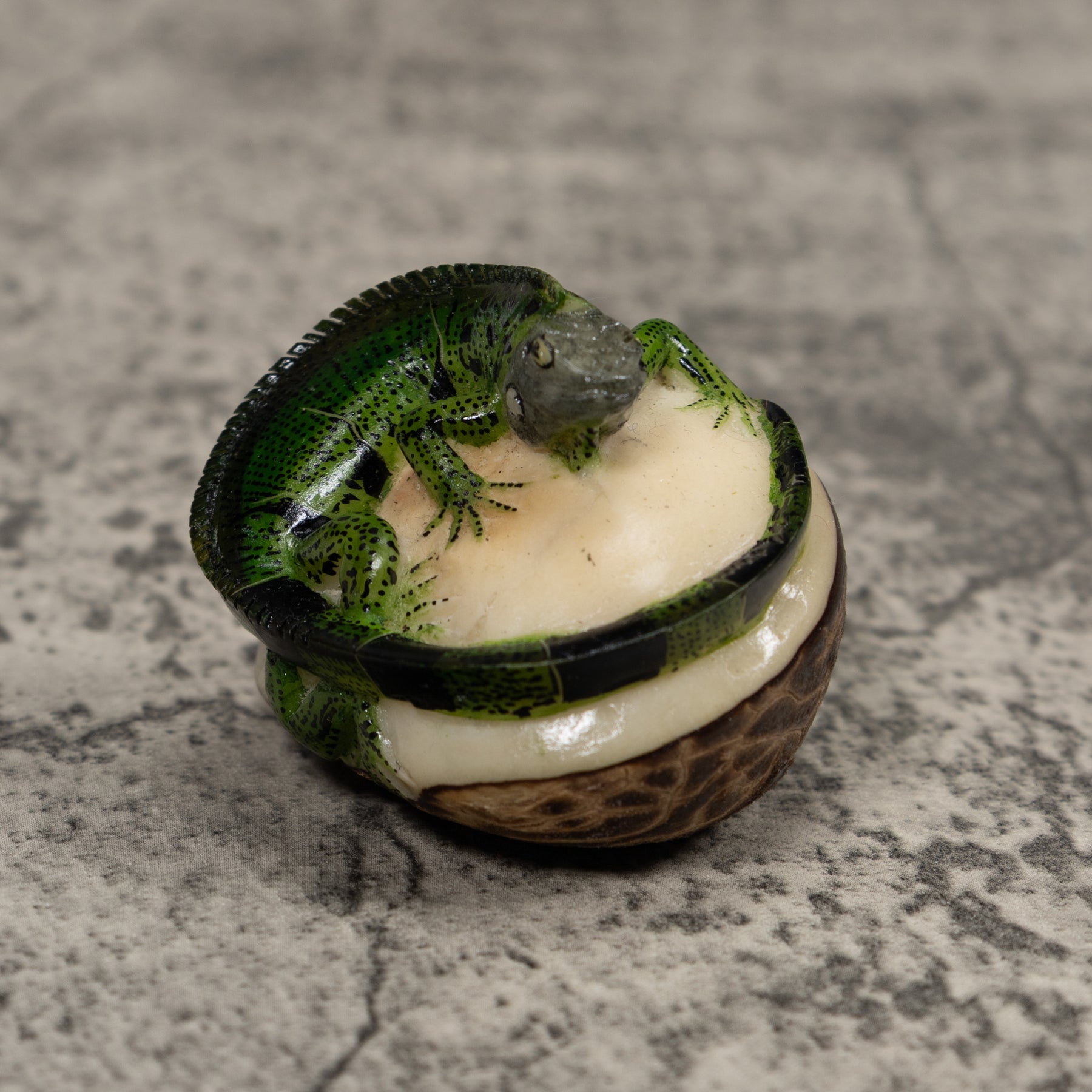 Hand carved from sustainably harvested tagua nut, often called “vegetable ivory”, this charming Iguana Lizard Reptile Carving celebrates the rich biodiversity of the Latin American rainforest. Each small sculpture is created by skilled artisans in Panama who carefully shape and polish the natural nut before bringing the animal to life with detailed hand painting. Every piece is made by our artisan partners for TraderBrock, helping support traditional craft and fair, long term relationships with local makers.