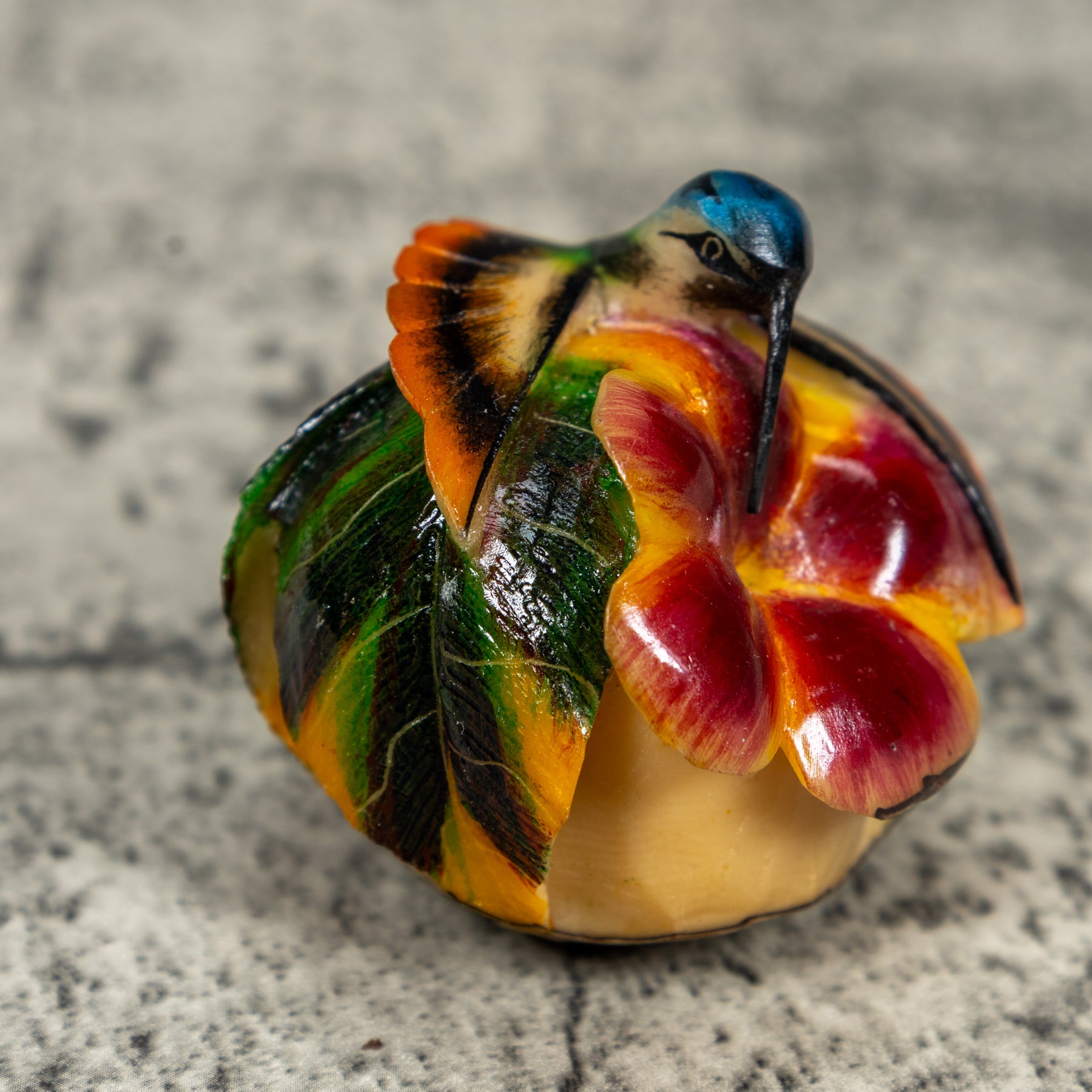 • Hand carved tagua nut “vegetable ivory” from the rainforest