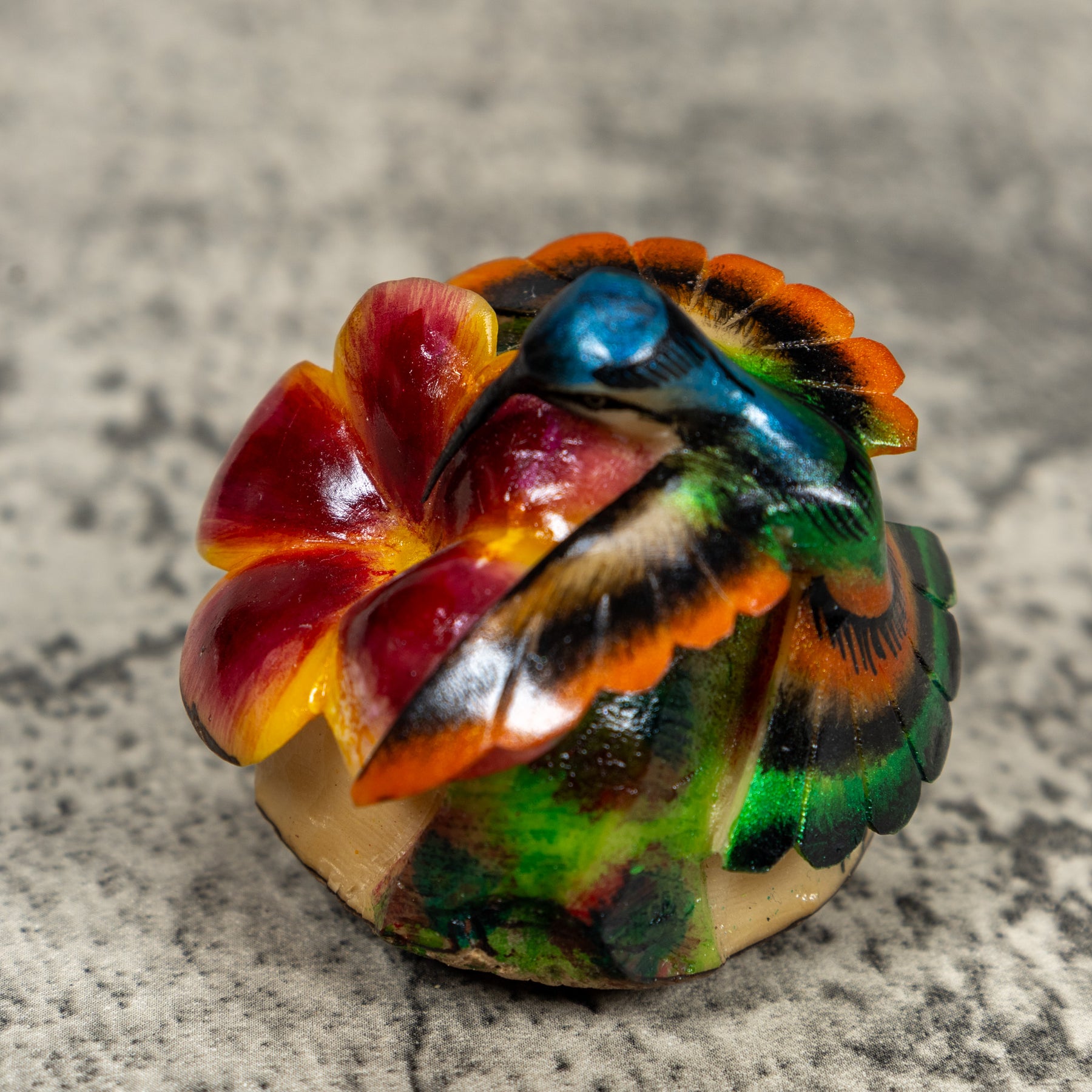 Hand carved from sustainably harvested tagua nut, often called “vegetable ivory”, this charming Macaw Parrot celebrates the rich biodiversity of the Latin American rainforest. Each small sculpture is created by skilled artisans in Panama who carefully shape and polish the natural nut before bringing the animal to life with detailed hand painting. Every piece is made by our artisan partners for TraderBrock, helping support traditional craft and fair, long term relationships with local makers.