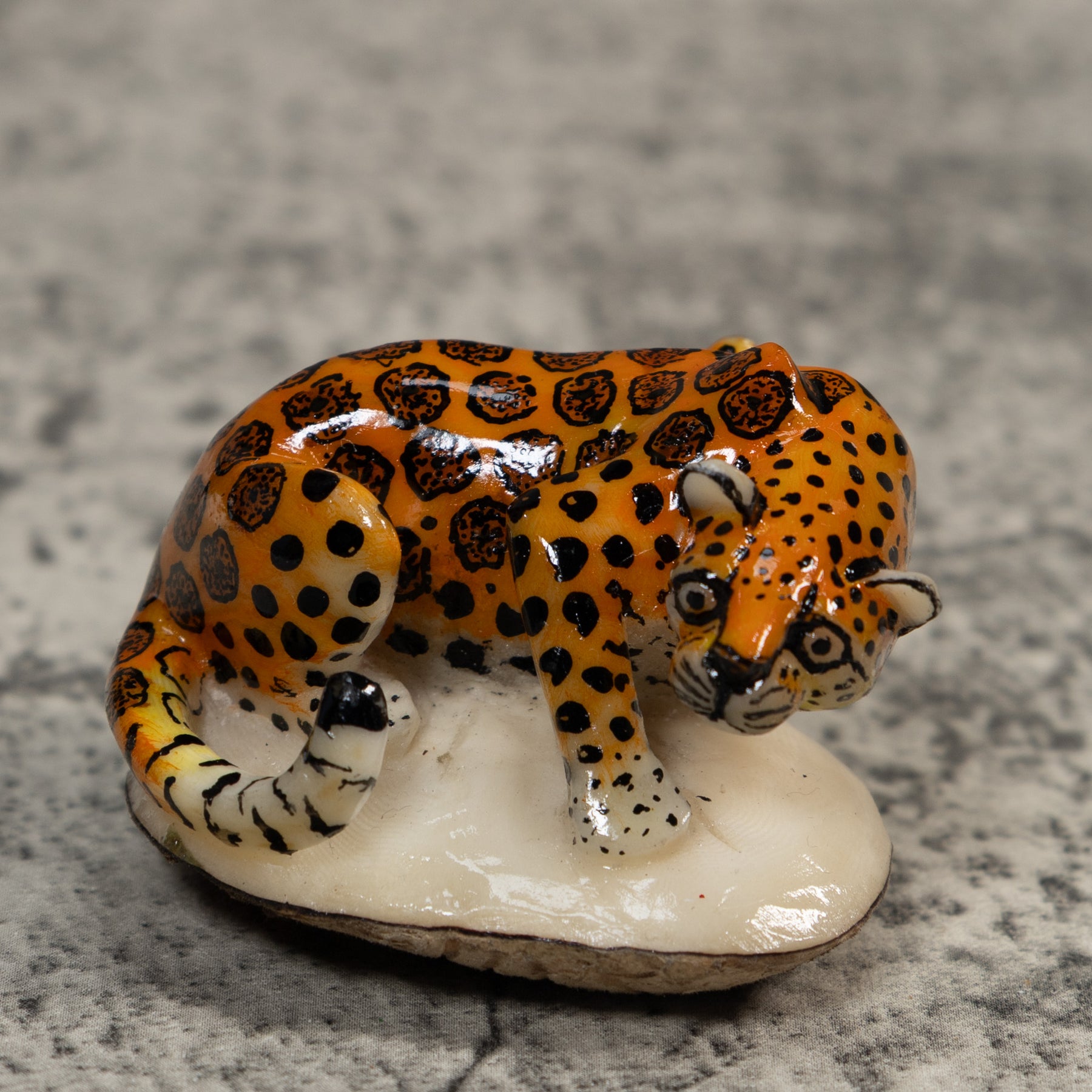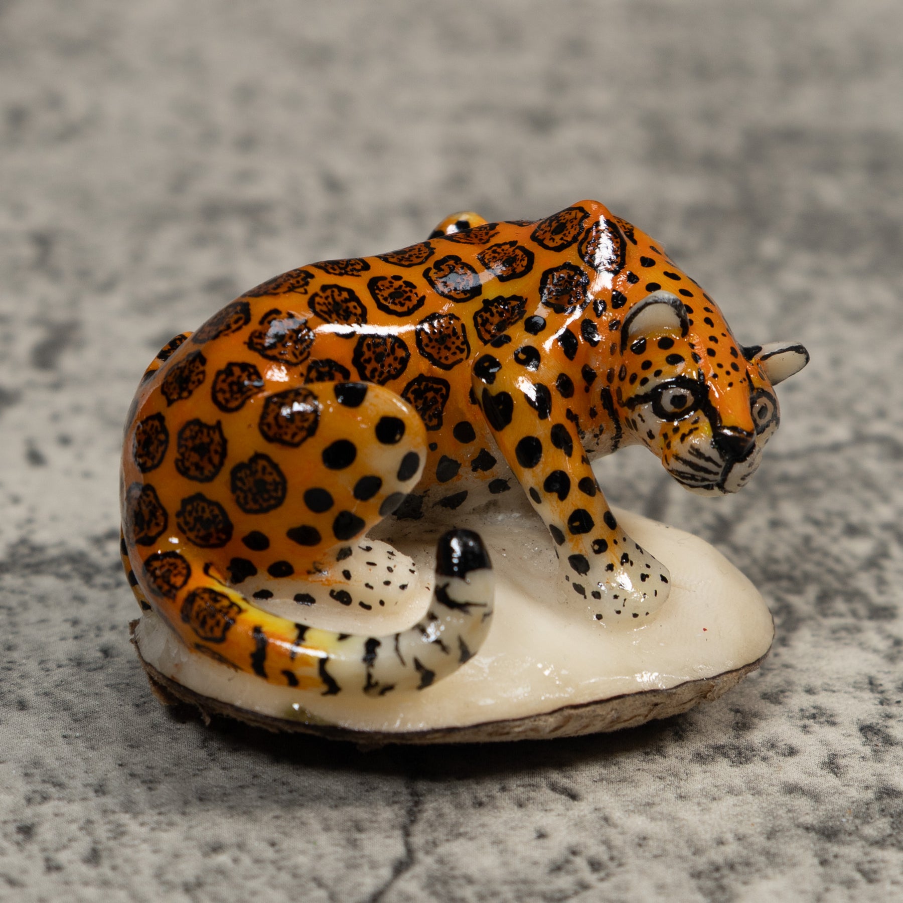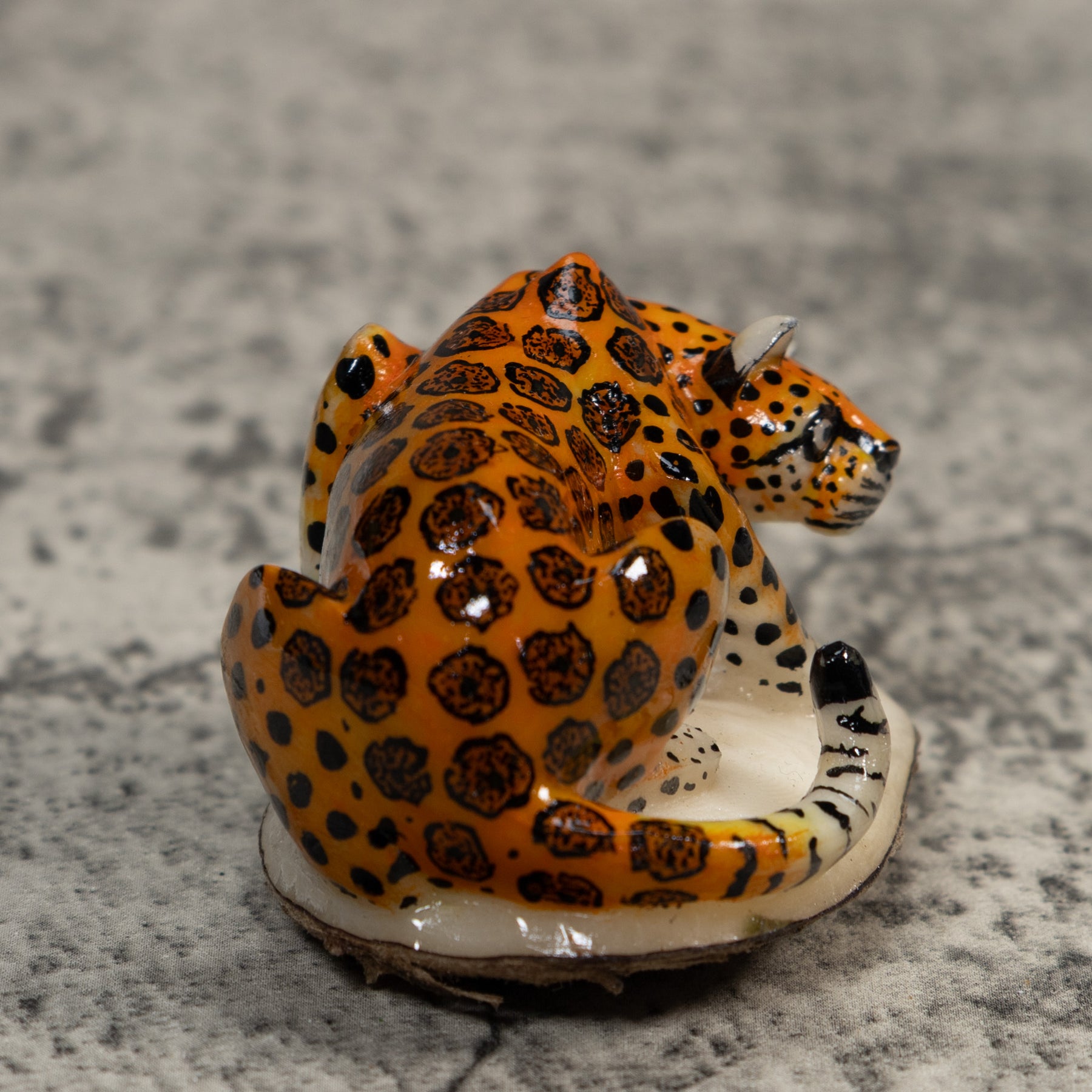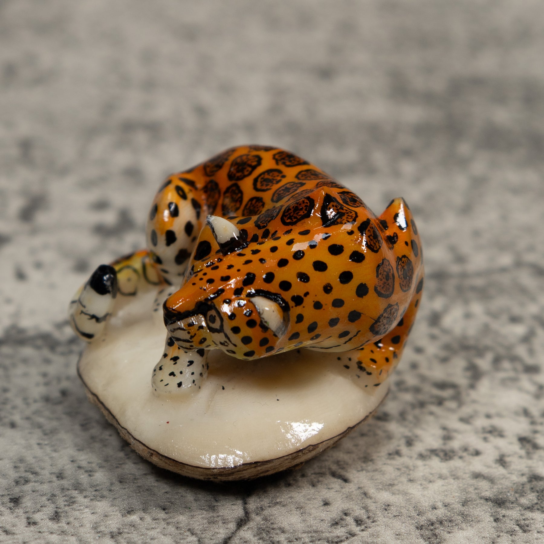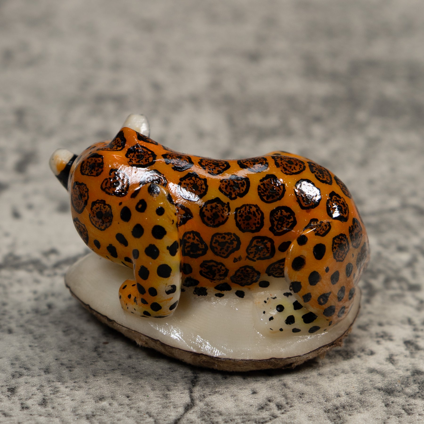 Hand carved from sustainably harvested tagua nut, often called “vegetable ivory”, this charming Jaguar Cat celebrates the rich biodiversity of the Latin American rainforest. Each small sculpture is created by skilled artisans in Panama who carefully shape and polish the natural nut before bringing the animal to life with detailed hand painting. Every piece is made by our artisan partners for TraderBrock, helping support traditional craft and fair, long term relationships with local makers.