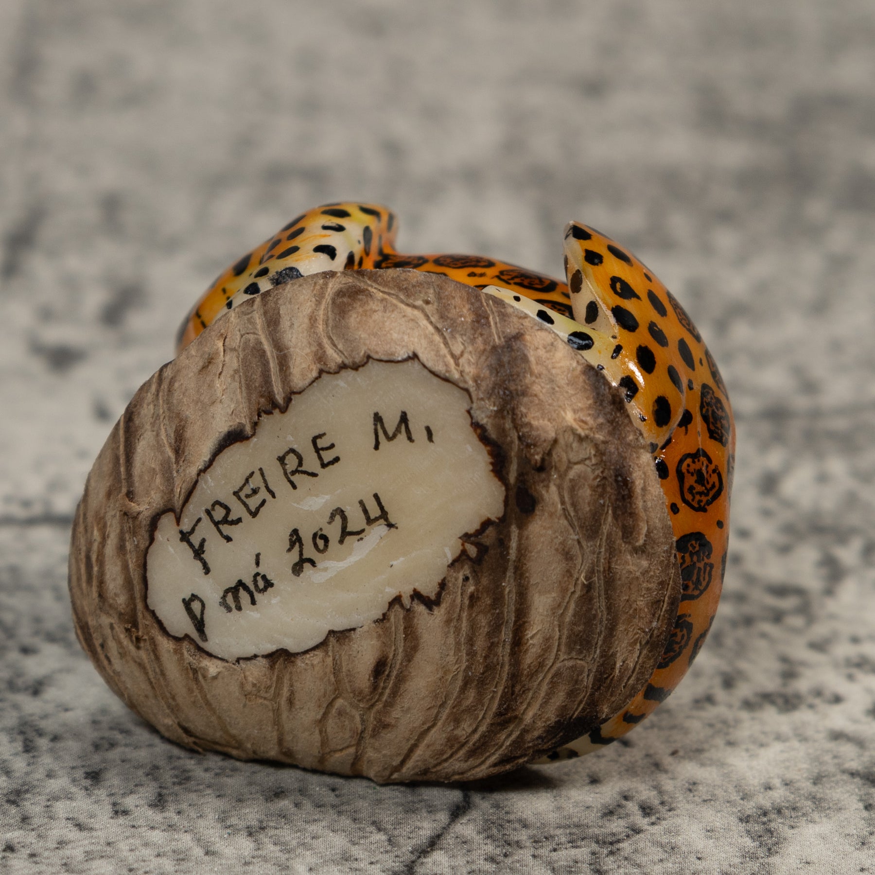 • Hand carved tagua nut “vegetable ivory” from the rainforest