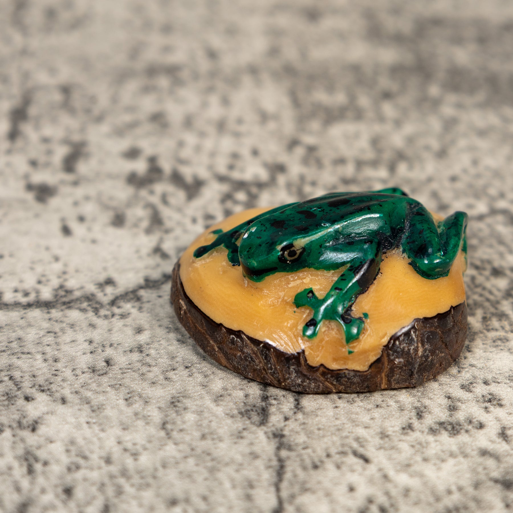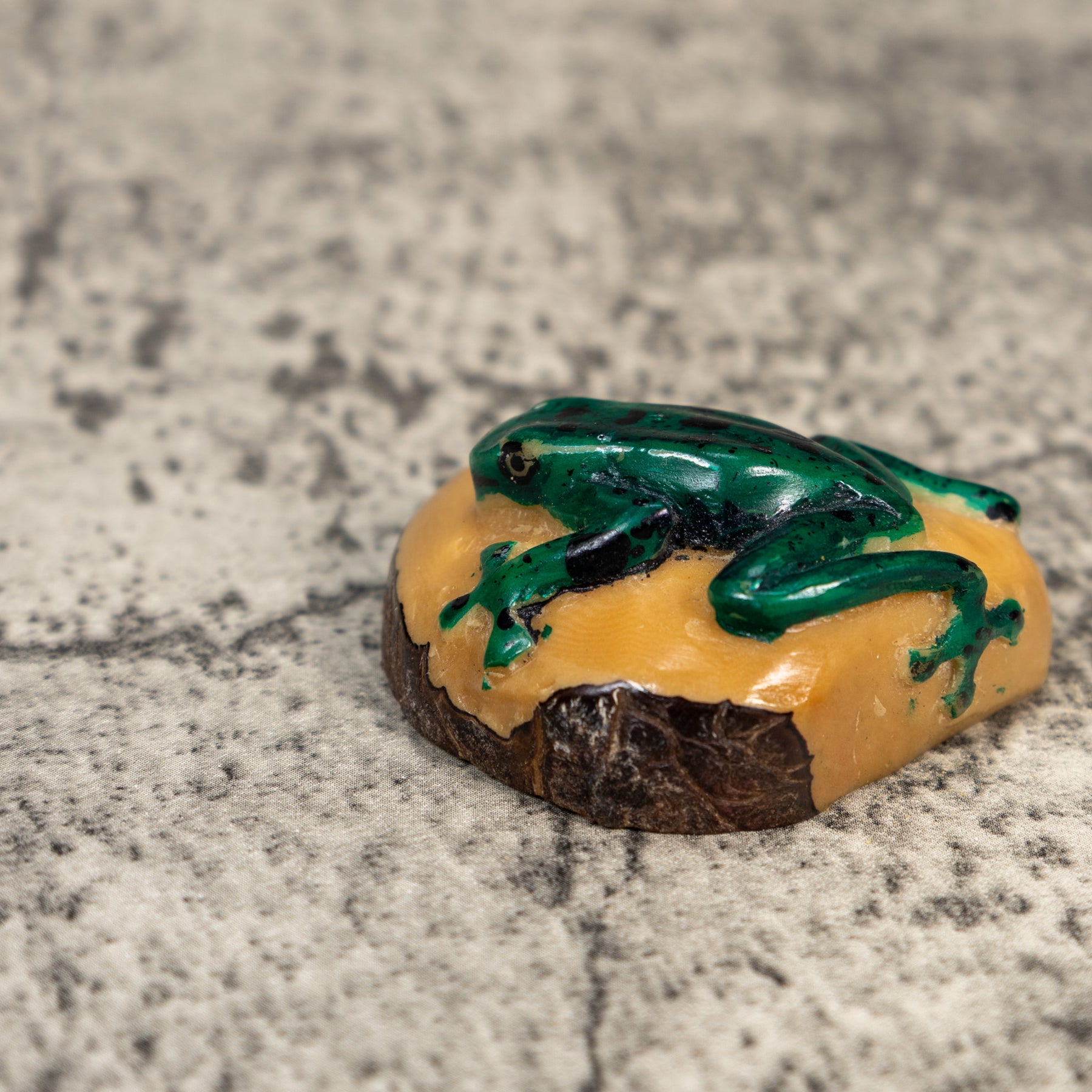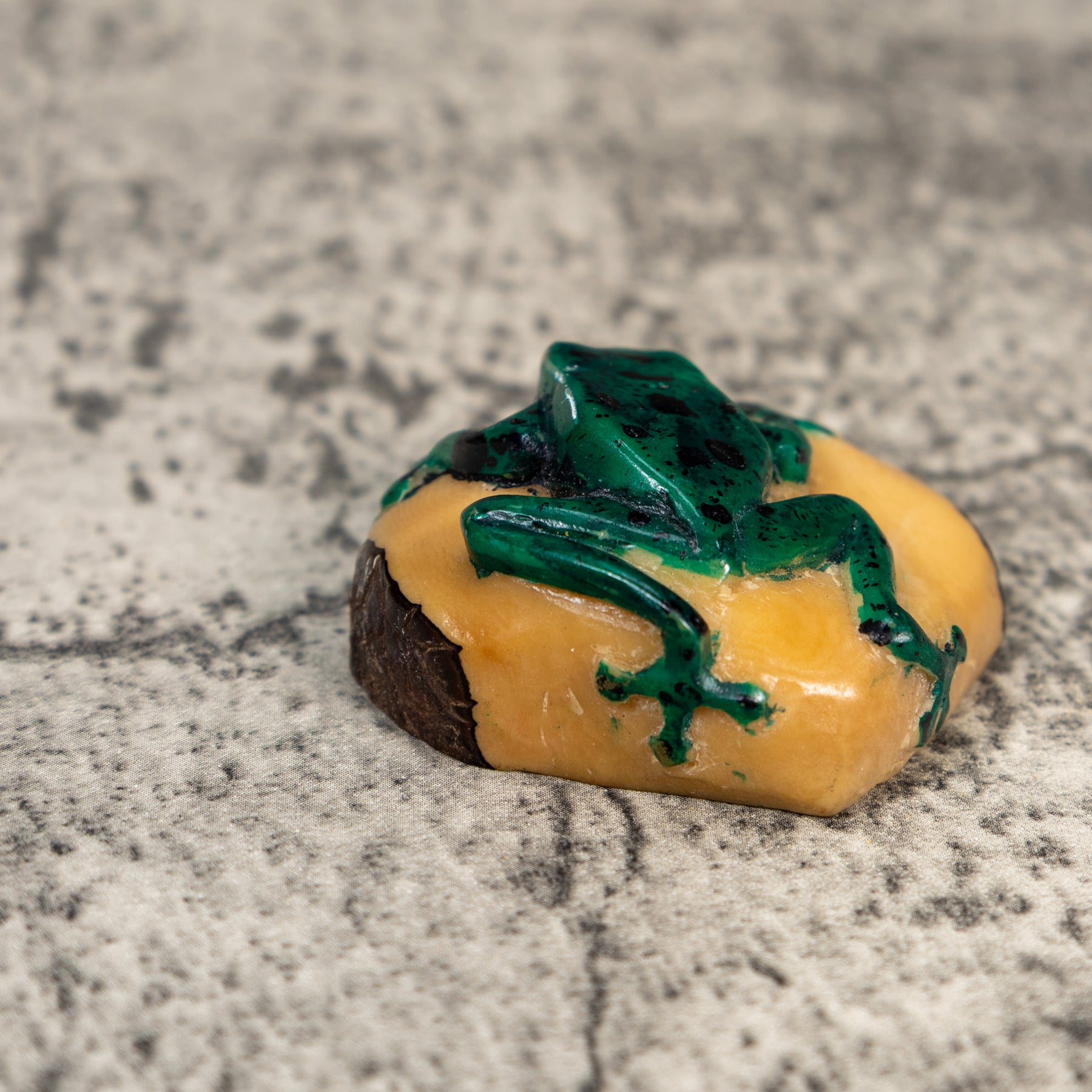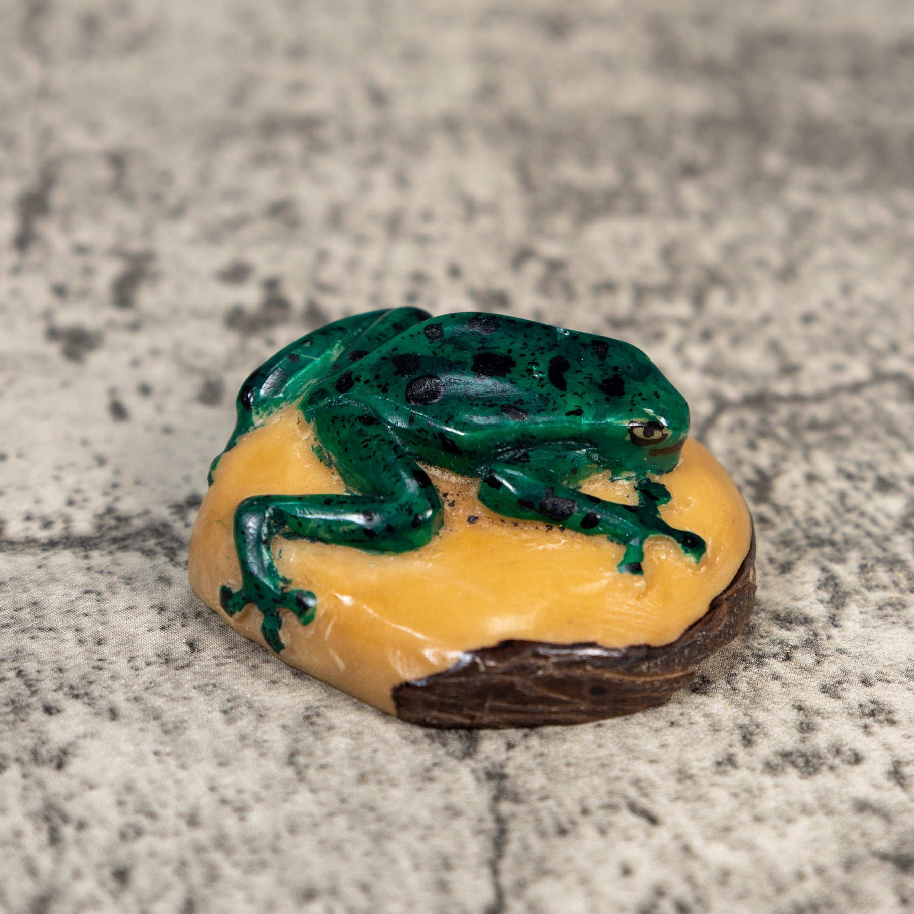 Hand carved from sustainably harvested tagua nut, often called “vegetable ivory”, this charming Frog celebrates the rich biodiversity of the Latin American rainforest. Each small sculpture is created by skilled artisans in Panama who carefully shape and polish the natural nut before bringing the animal to life with detailed hand painting. Every piece is made by our artisan partners for TraderBrock, helping support traditional craft and fair, long term relationships with local makers.