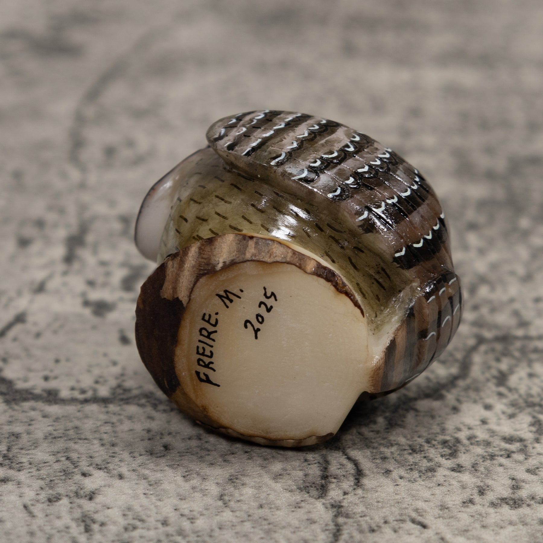 Hand carved from sustainably harvested tagua nut, often called “vegetable ivory”, this charming Owl celebrates the rich biodiversity of the Latin American rainforest. Each small sculpture is created by skilled artisans in Panama who carefully shape and polish the natural nut before bringing the animal to life with detailed hand painting. Every piece is made by our artisan partners for TraderBrock, helping support traditional craft and fair, long term relationships with local makers.