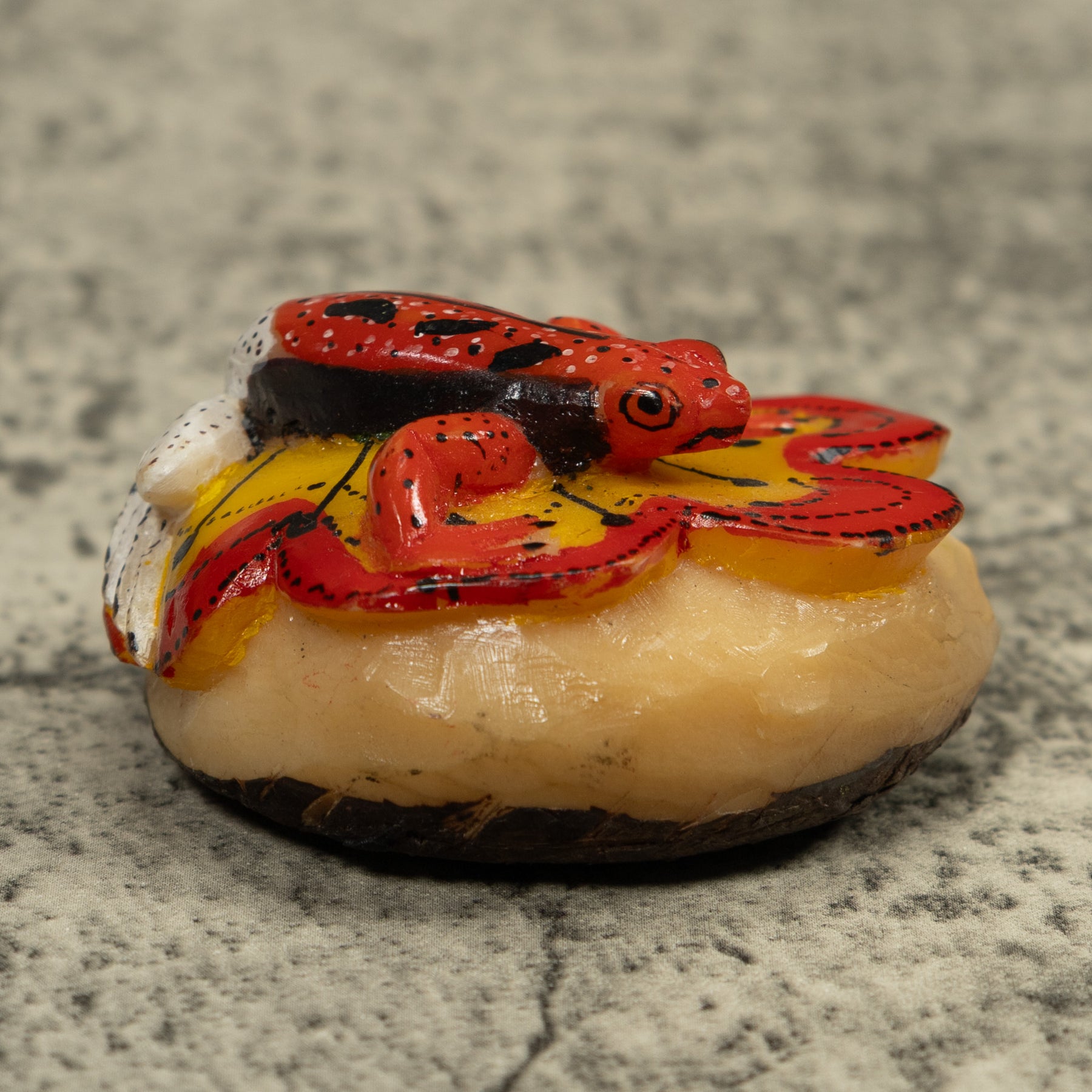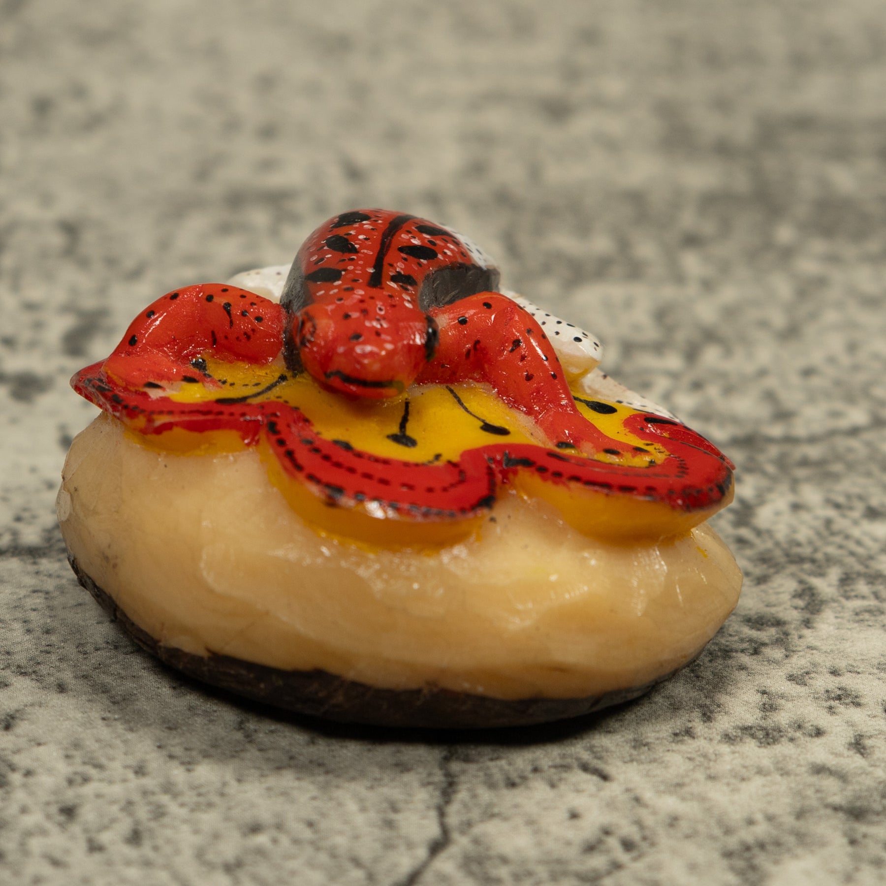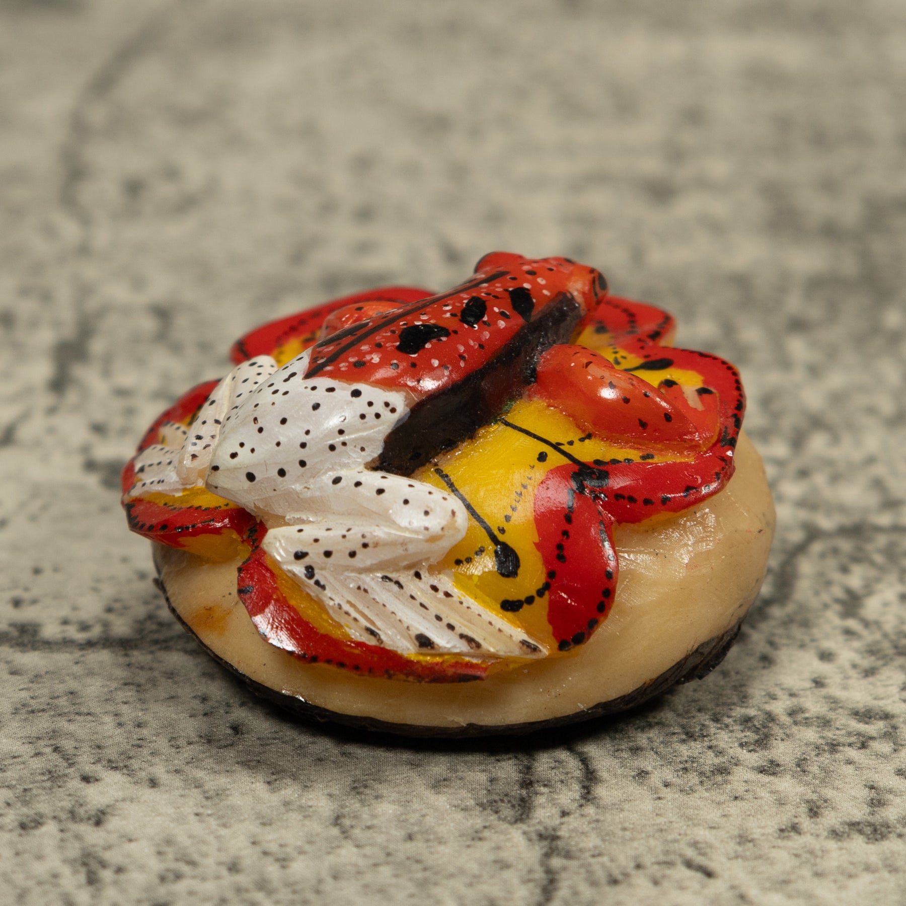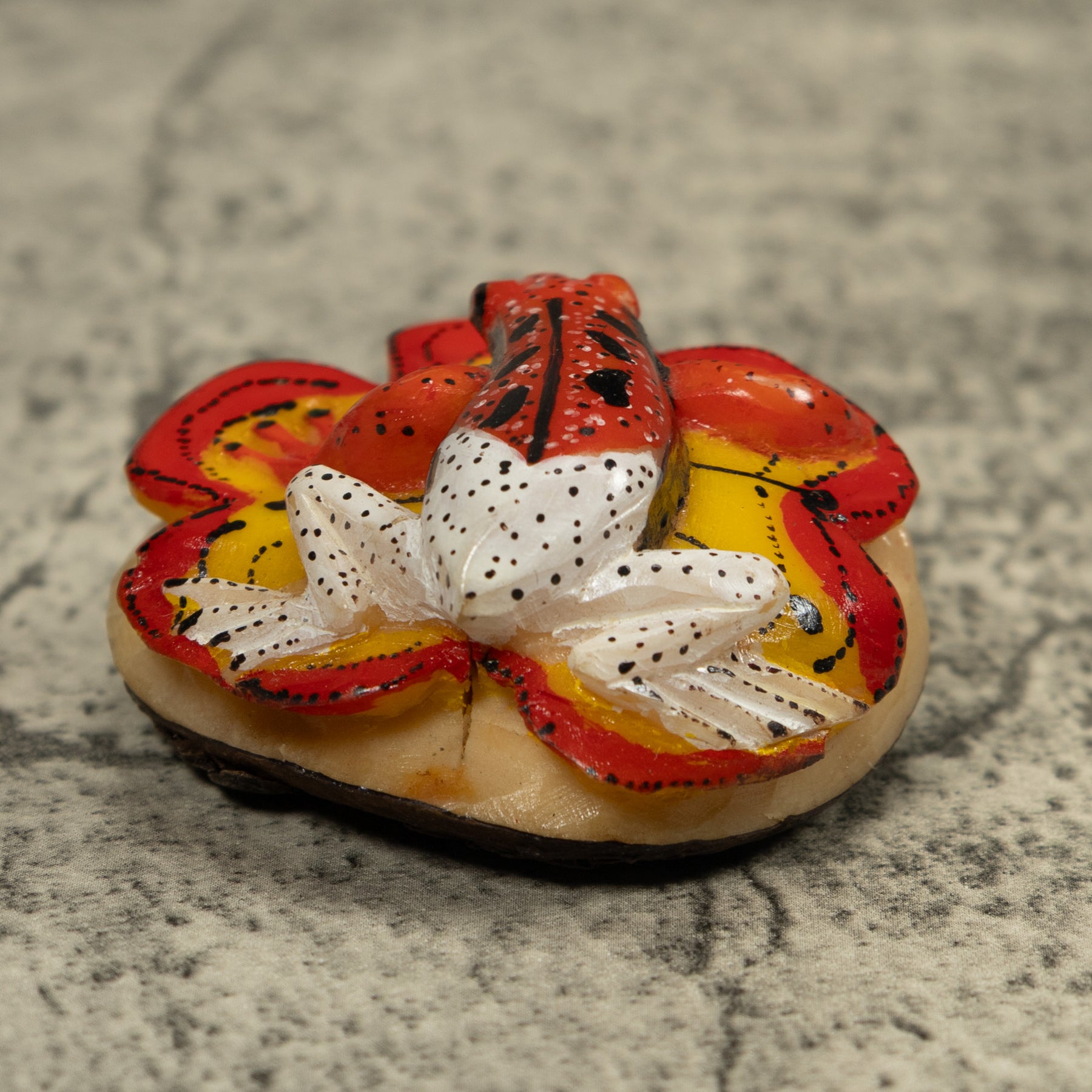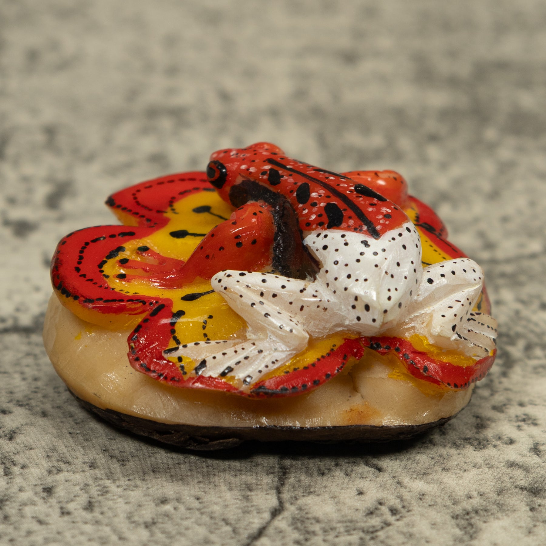 Hand carved from sustainably harvested tagua nut, often called “vegetable ivory”, this charming Poison Dart Frog Tagua Carving celebrates the rich biodiversity of the Latin American rainforest. Each small sculpture is created by skilled artisans in Panama who carefully shape and polish the natural nut before bringing the animal to life with detailed hand painting. Every piece is made by our artisan partners for TraderBrock, helping support traditional craft and fair, long term relationships with local makers.
