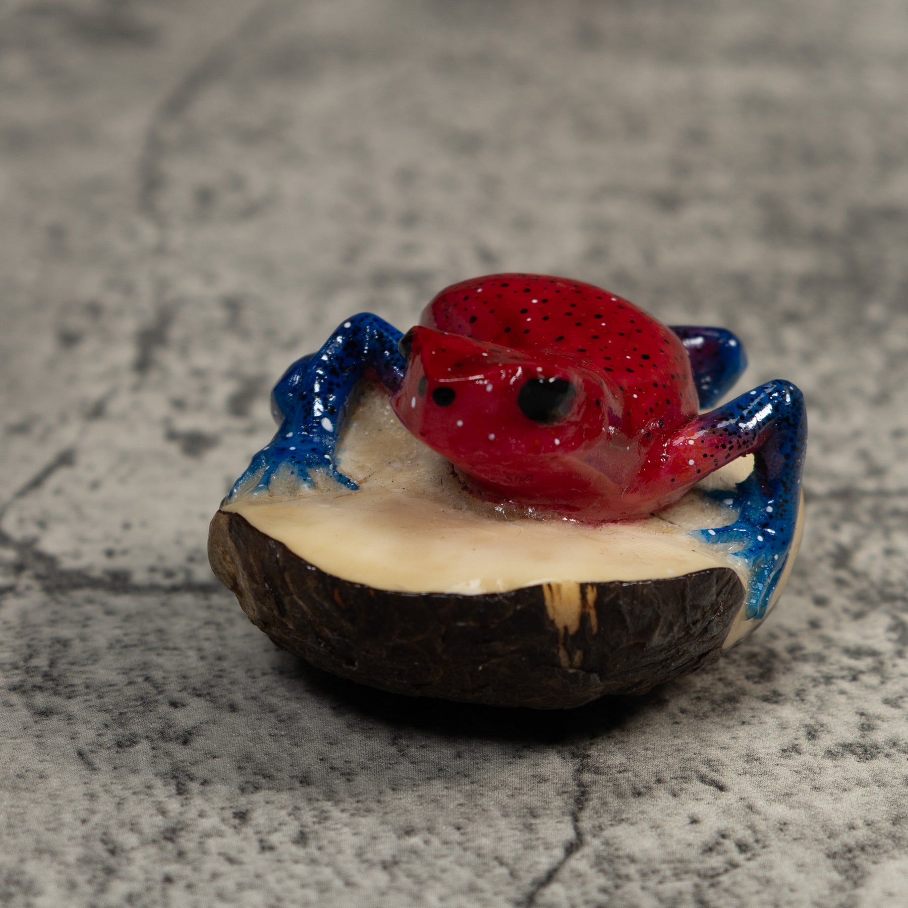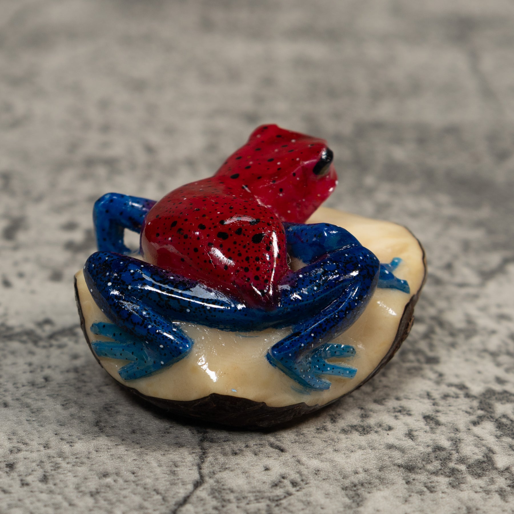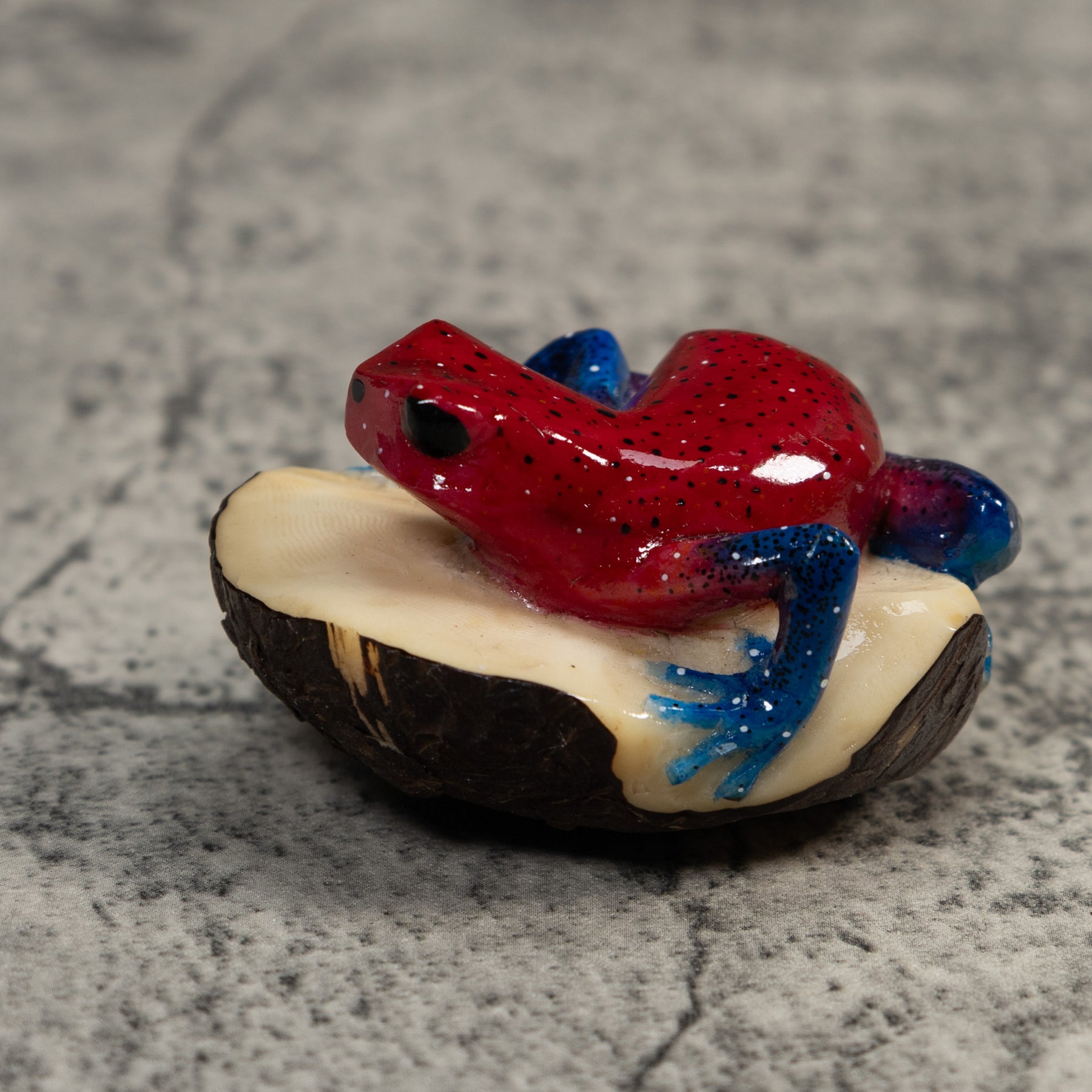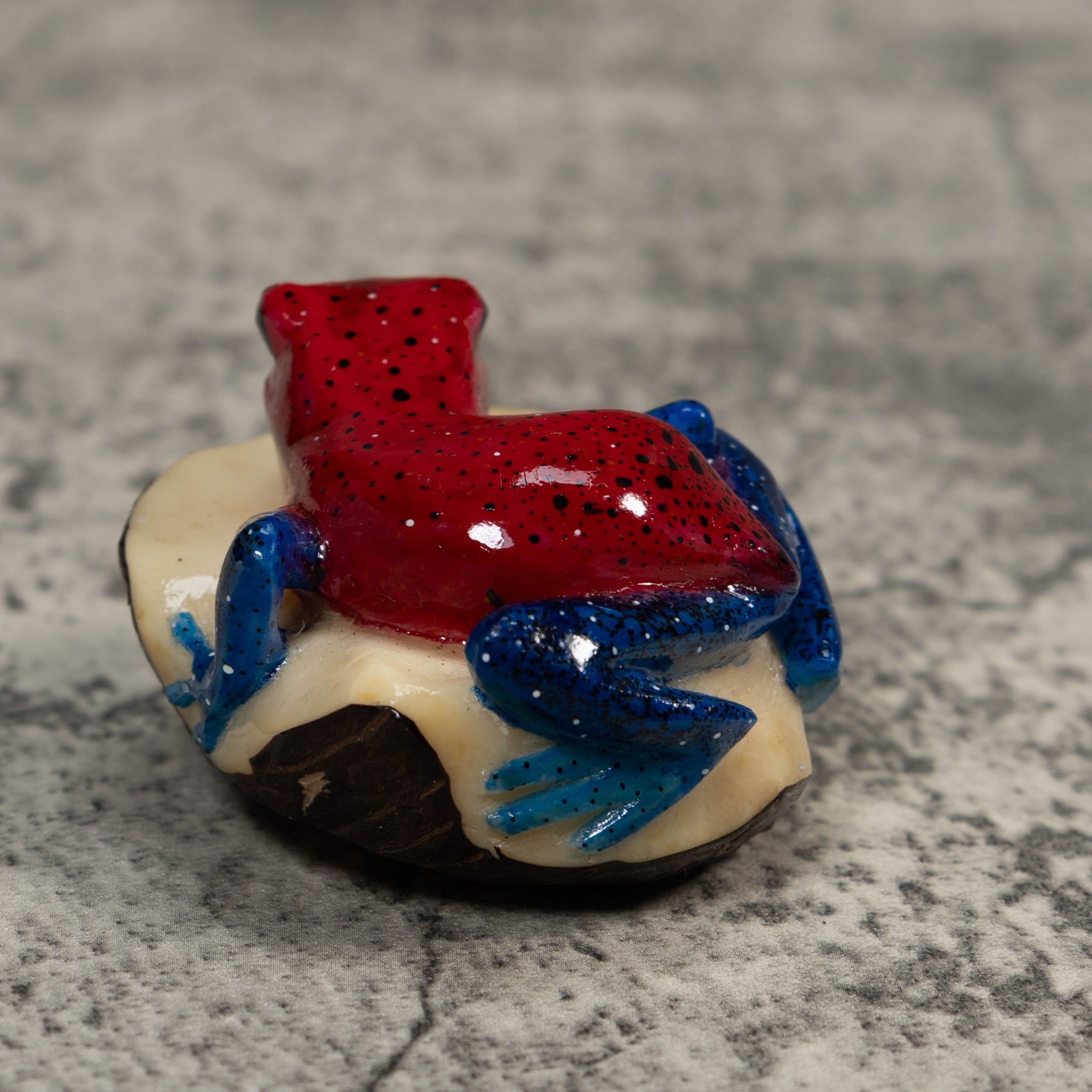 Hand carved from sustainably harvested tagua nut, often called “vegetable ivory”, this charming Frog celebrates the rich biodiversity of the Latin American rainforest. Each small sculpture is created by skilled artisans in Panama who carefully shape and polish the natural nut before bringing the animal to life with detailed hand painting. Every piece is made by our artisan partners for TraderBrock, helping support traditional craft and fair, long term relationships with local makers.