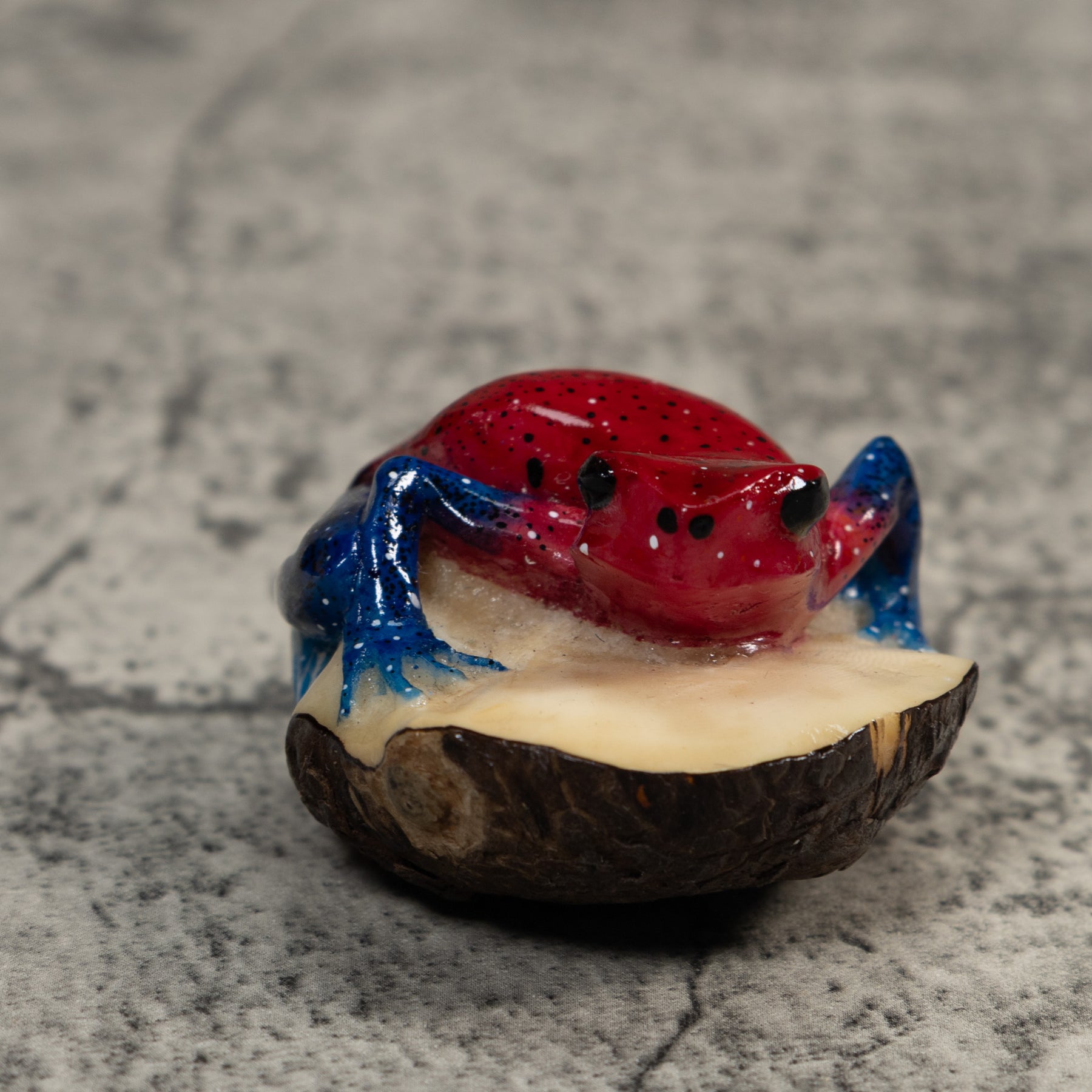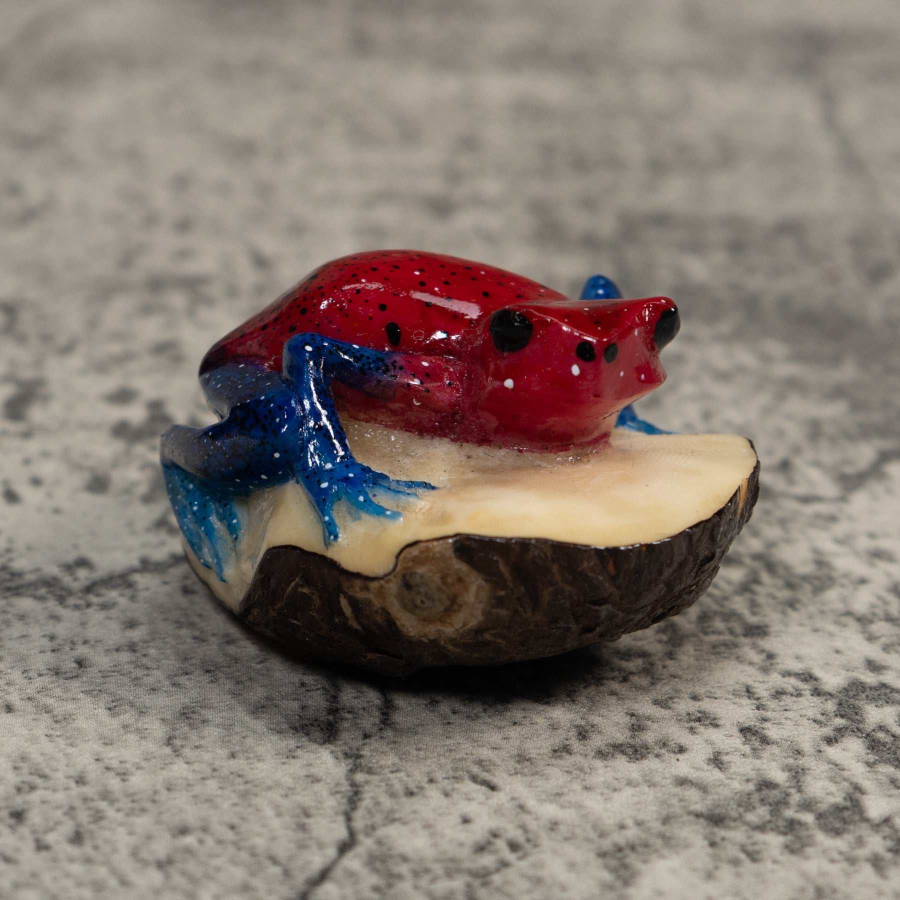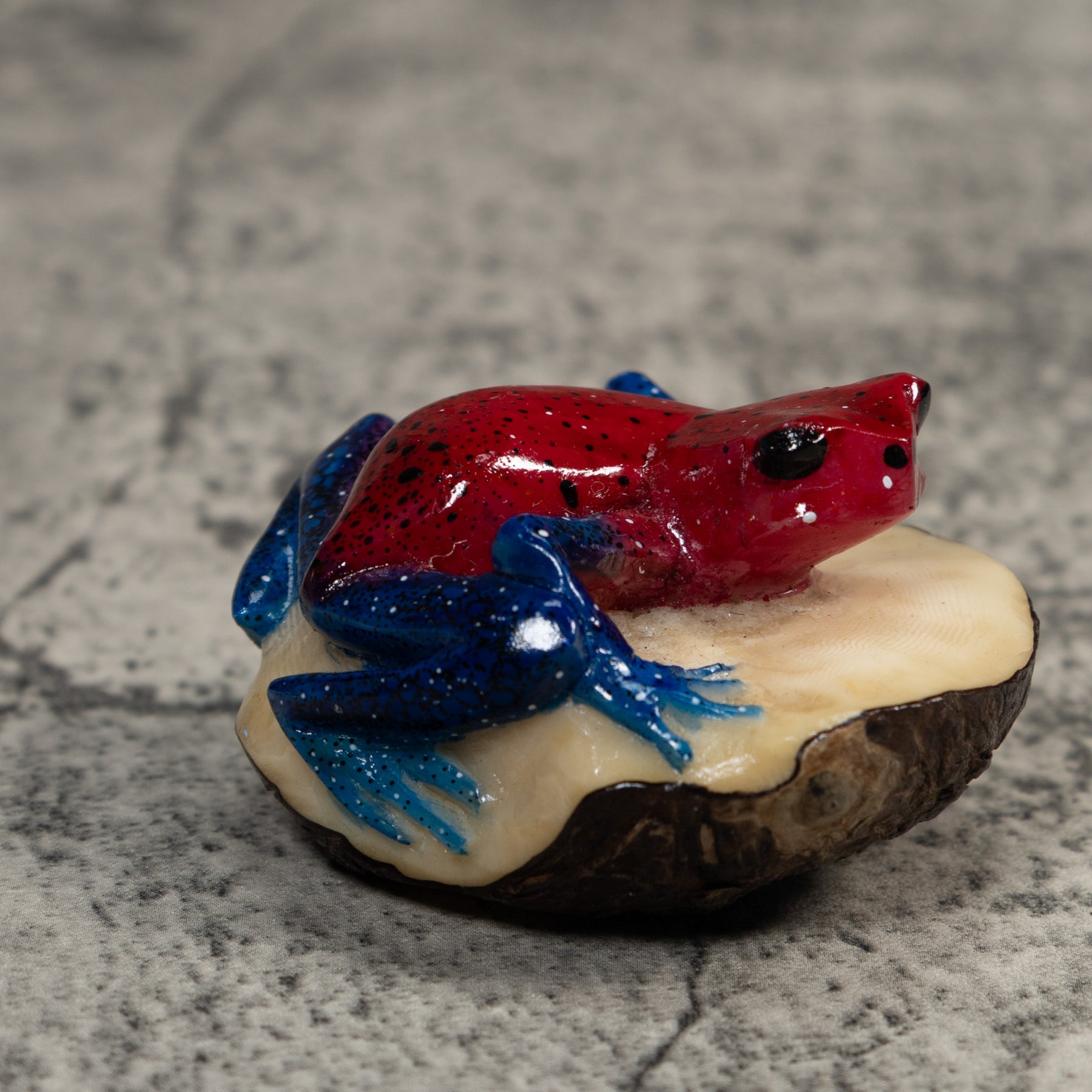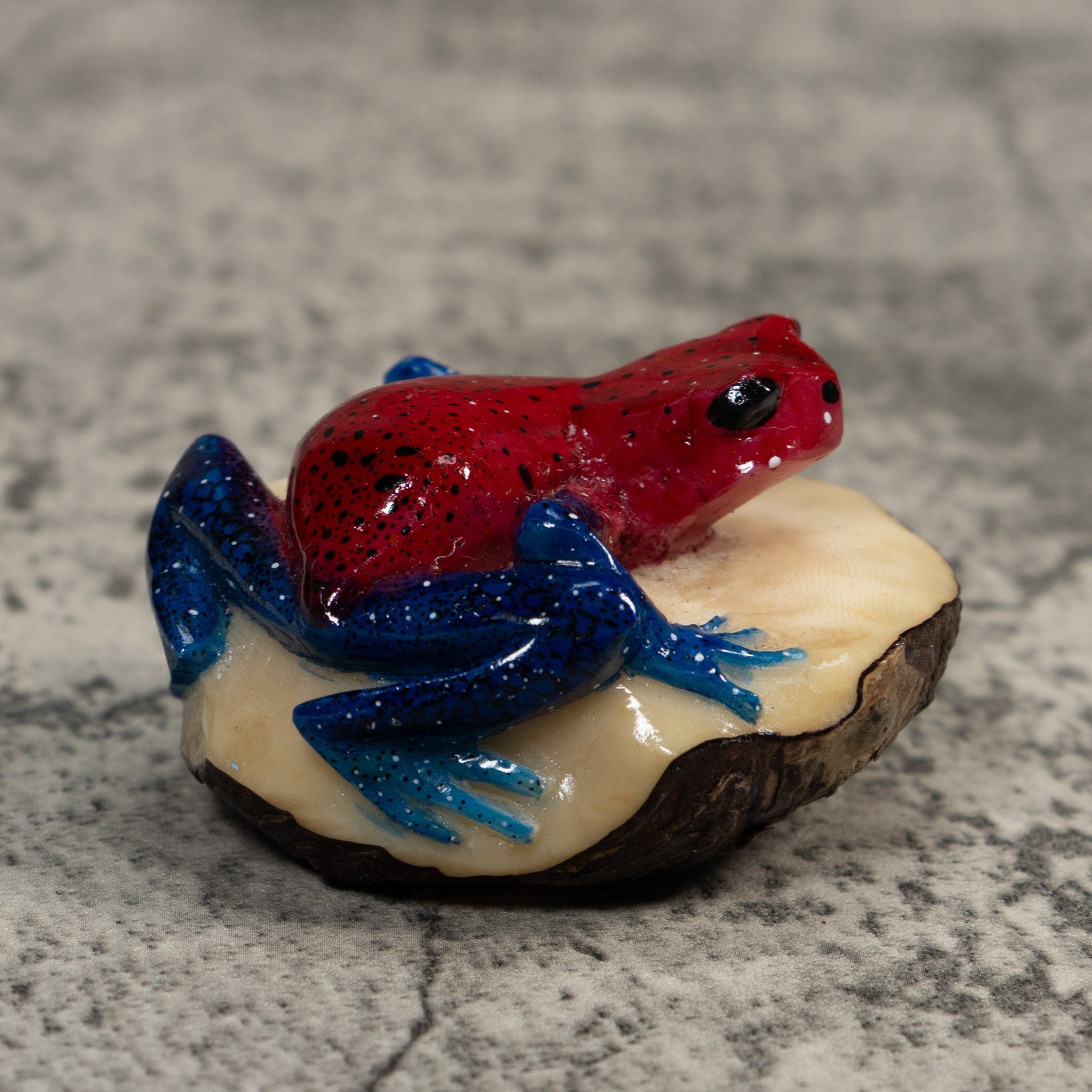 Hand carved from sustainably harvested tagua nut, often called “vegetable ivory”, this charming Frog celebrates the rich biodiversity of the Latin American rainforest. Each small sculpture is created by skilled artisans in Panama who carefully shape and polish the natural nut before bringing the animal to life with detailed hand painting. Every piece is made by our artisan partners for TraderBrock, helping support traditional craft and fair, long term relationships with local makers.