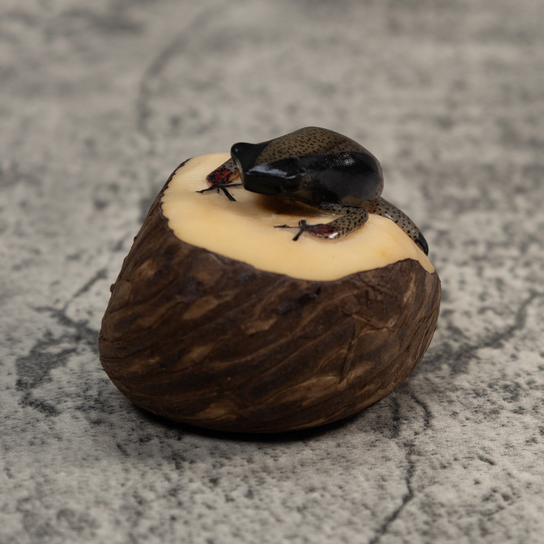 Hand carved from sustainably harvested tagua nut, often called “vegetable ivory”, this charming Frog celebrates the rich biodiversity of the Latin American rainforest. Each small sculpture is created by skilled artisans in Panama who carefully shape and polish the natural nut before bringing the animal to life with detailed hand painting. Every piece is made by our artisan partners for TraderBrock, helping support traditional craft and fair, long term relationships with local makers.