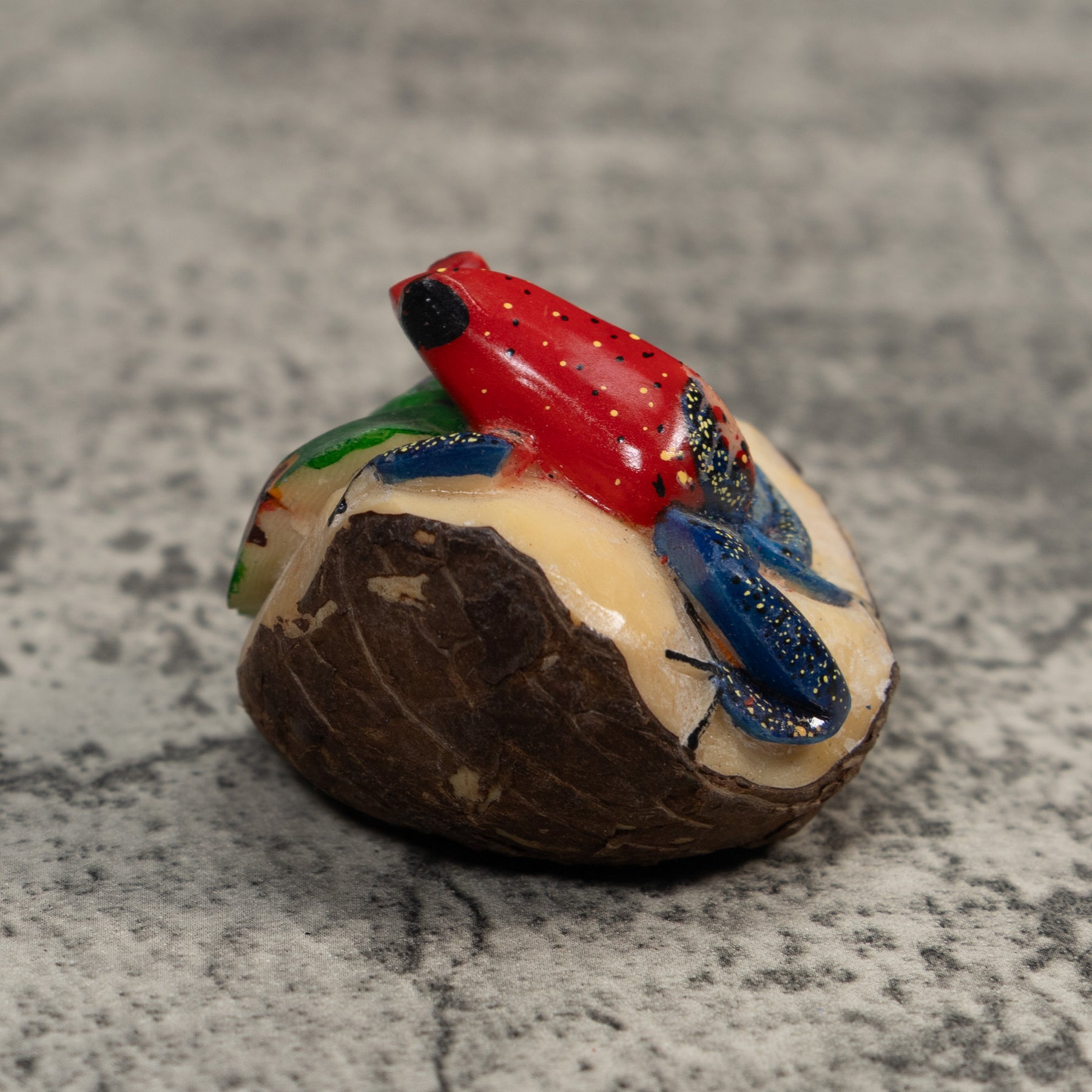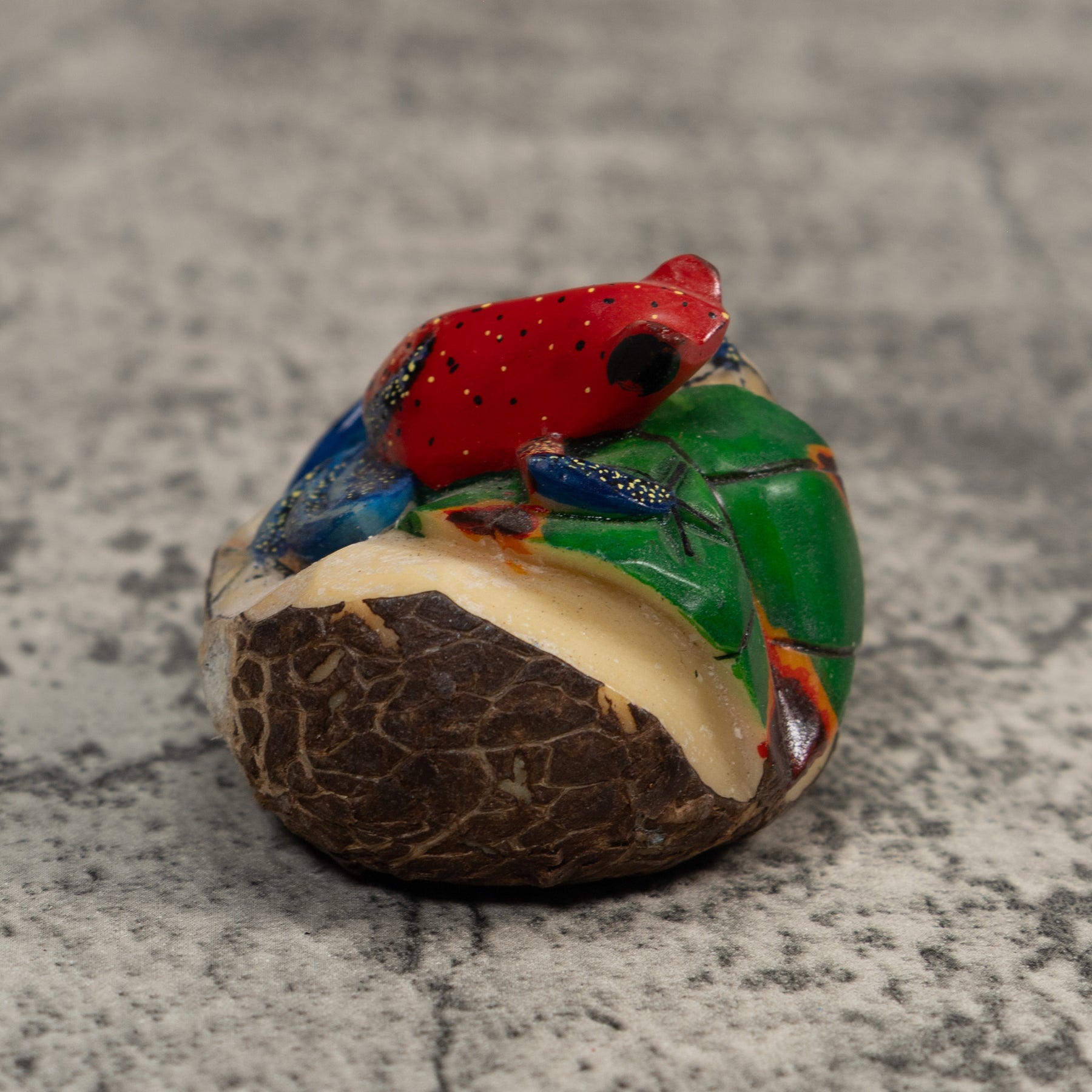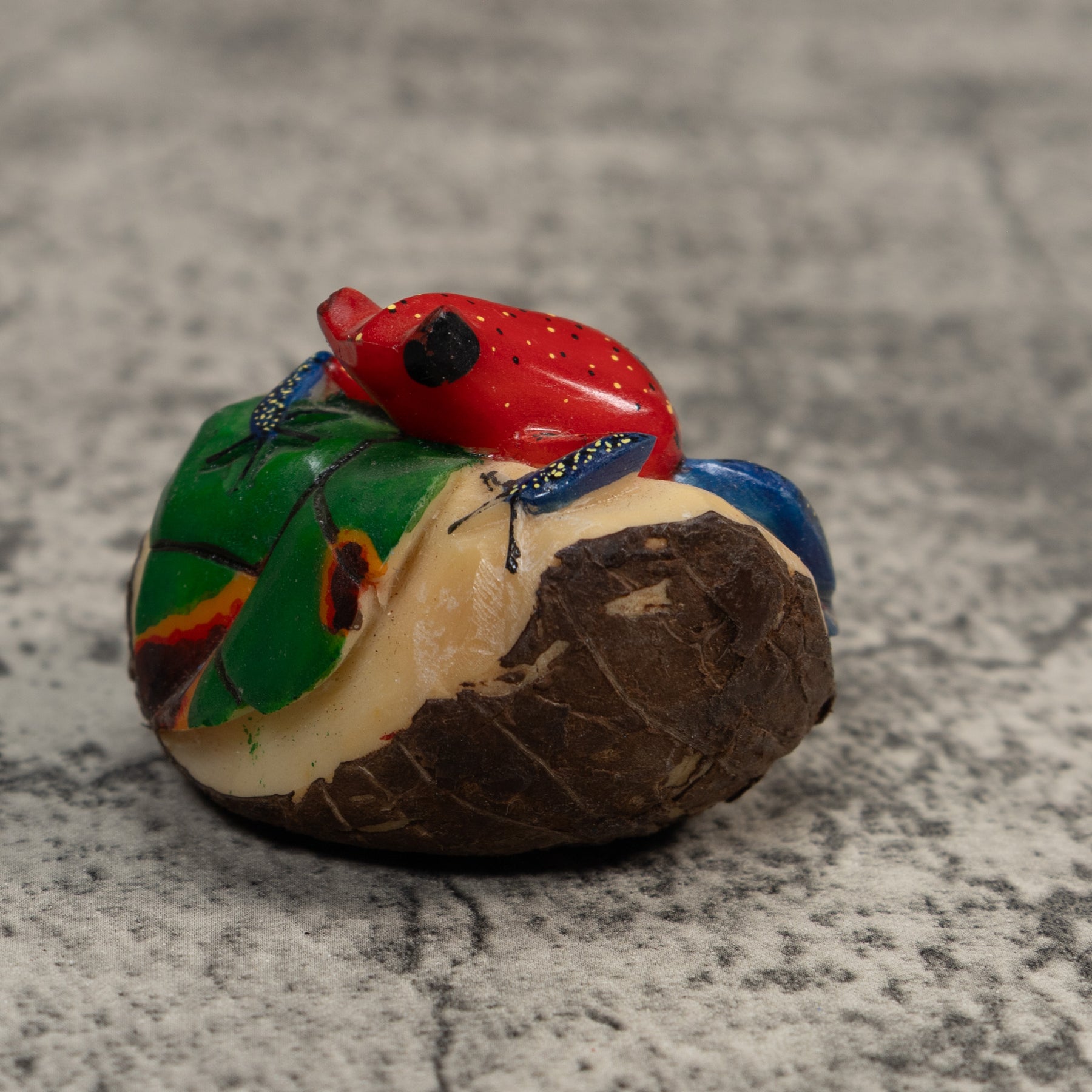 Hand carved from sustainably harvested tagua nut, often called “vegetable ivory”, this charming Frog celebrates the rich biodiversity of the Latin American rainforest. Each small sculpture is created by skilled artisans in Panama who carefully shape and polish the natural nut before bringing the animal to life with detailed hand painting. Every piece is made by our artisan partners for TraderBrock, helping support traditional craft and fair, long term relationships with local makers.