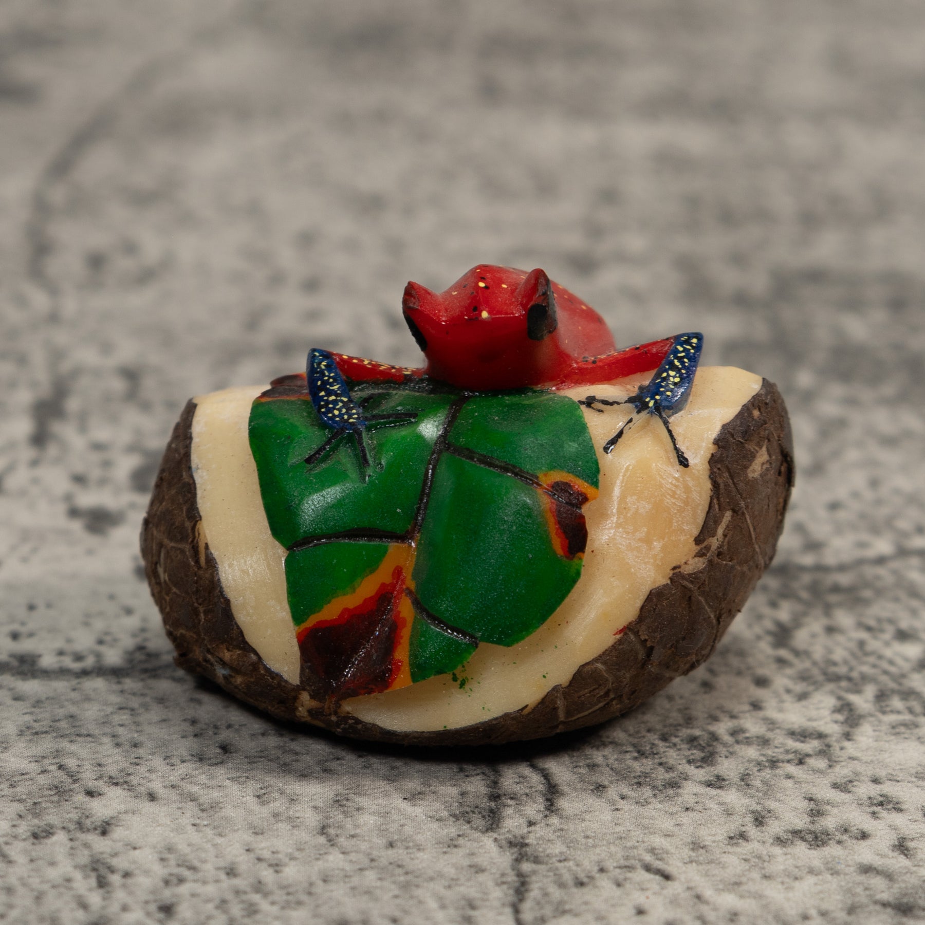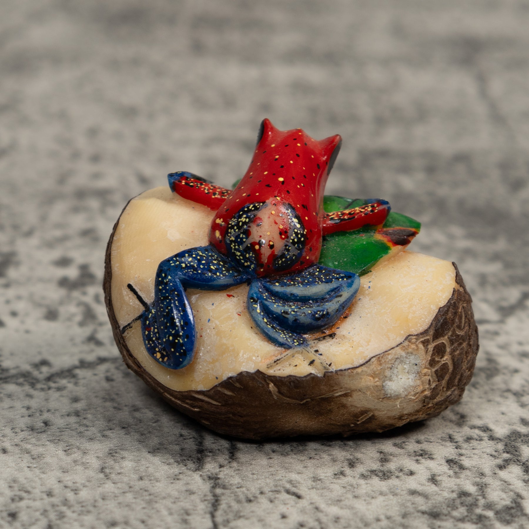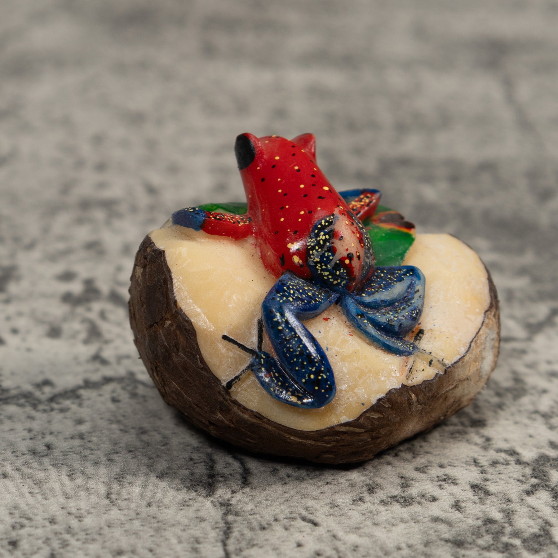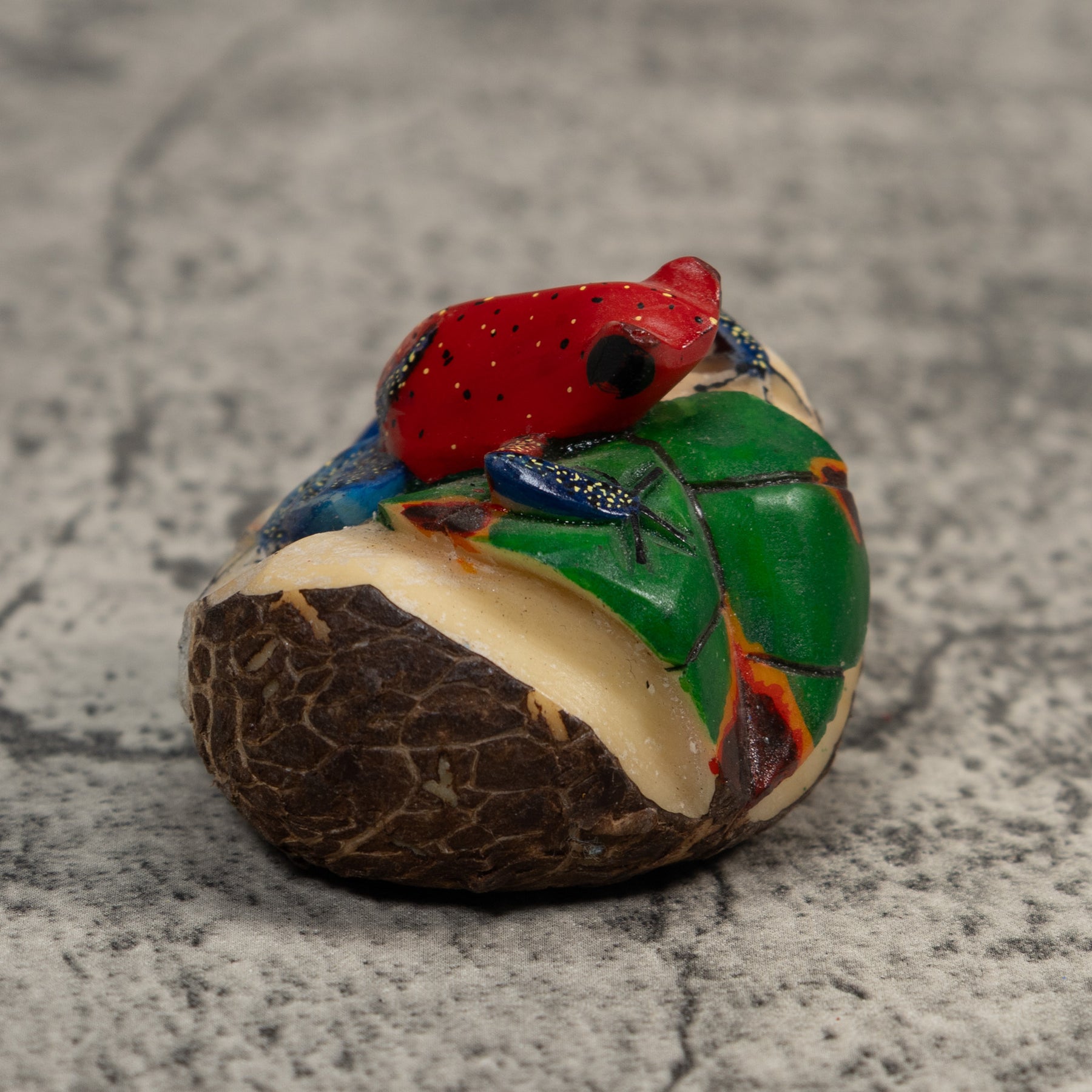 Hand carved from sustainably harvested tagua nut, often called “vegetable ivory”, this charming Frog celebrates the rich biodiversity of the Latin American rainforest. Each small sculpture is created by skilled artisans in Panama who carefully shape and polish the natural nut before bringing the animal to life with detailed hand painting. Every piece is made by our artisan partners for TraderBrock, helping support traditional craft and fair, long term relationships with local makers.