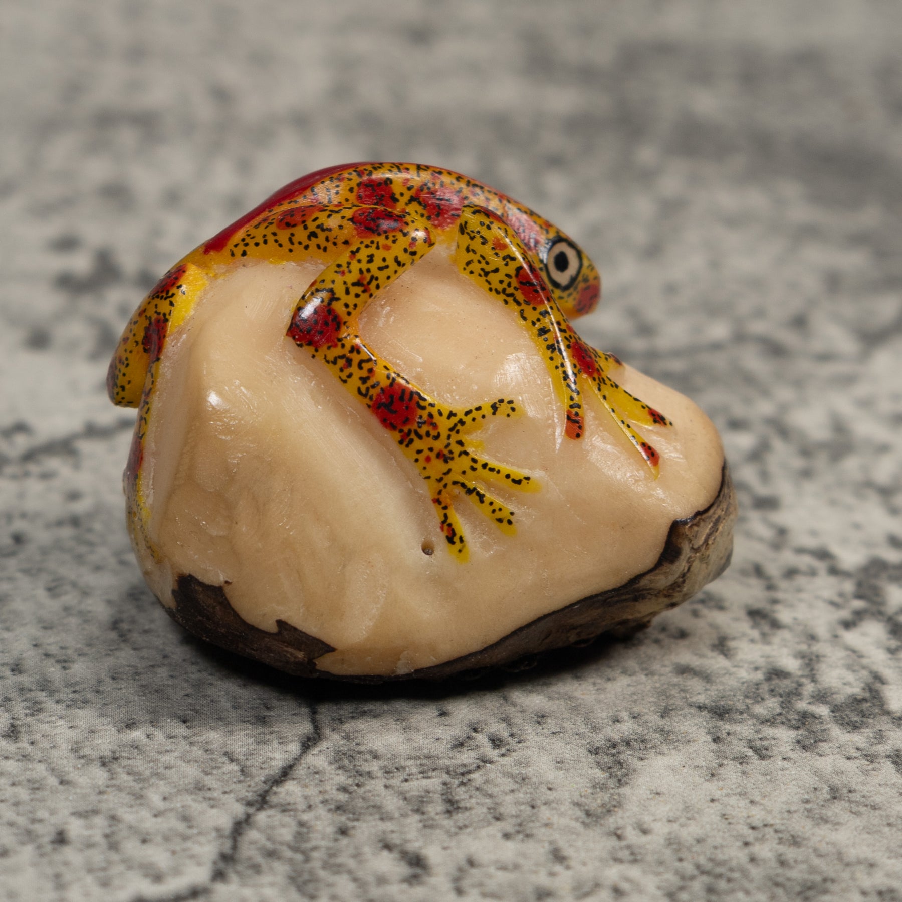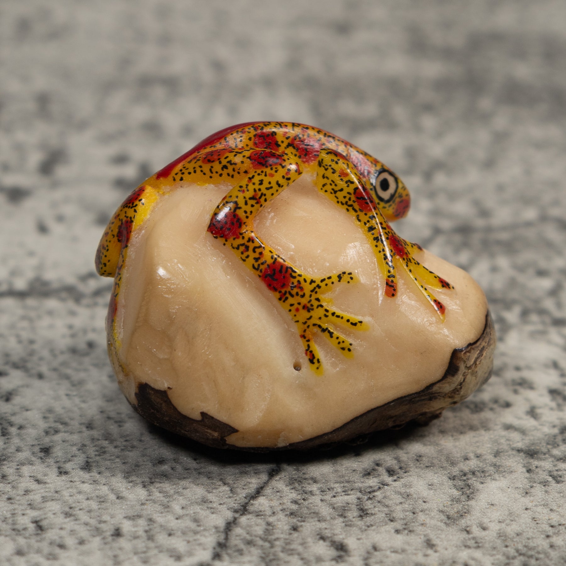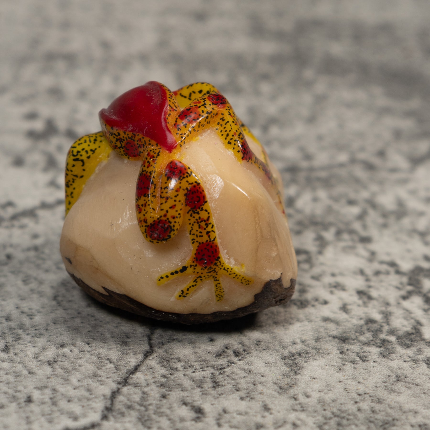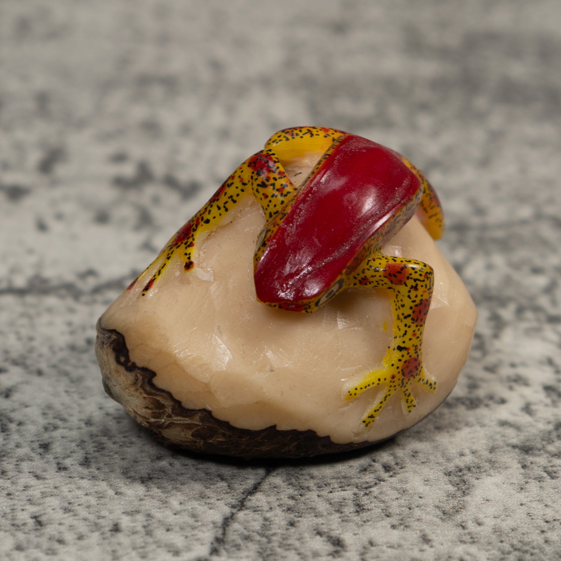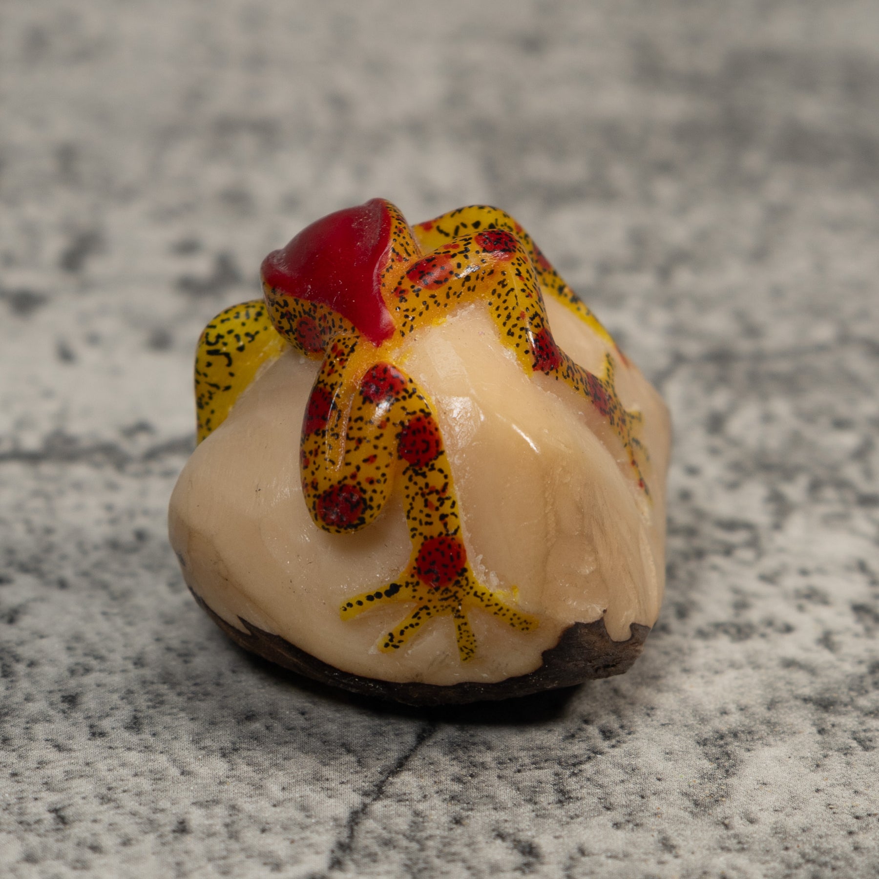 Hand carved from sustainably harvested tagua nut, often called “vegetable ivory”, this charming Frog celebrates the rich biodiversity of the Latin American rainforest. Each small sculpture is created by skilled artisans in Panama who carefully shape and polish the natural nut before bringing the animal to life with detailed hand painting. Every piece is made by our artisan partners for TraderBrock, helping support traditional craft and fair, long term relationships with local makers.