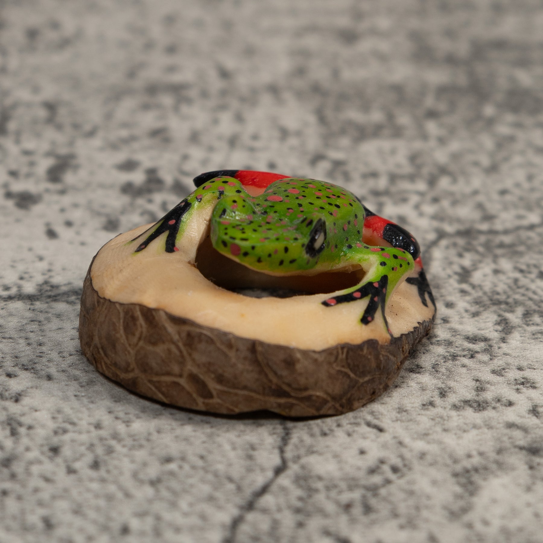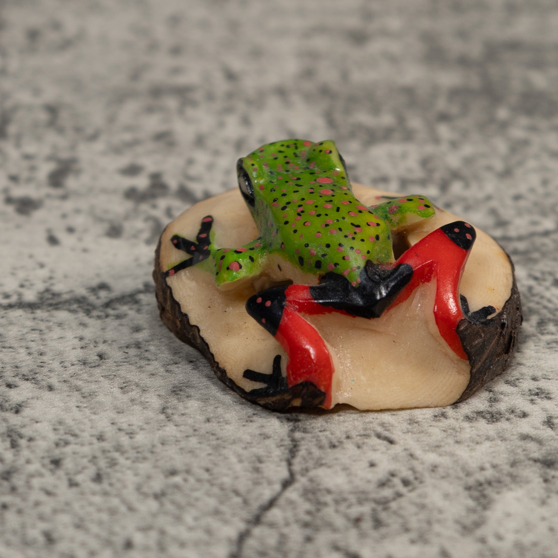 Hand carved from sustainably harvested tagua nut, often called “vegetable ivory”, this charming Frog celebrates the rich biodiversity of the Latin American rainforest. Each small sculpture is created by skilled artisans in Panama who carefully shape and polish the natural nut before bringing the animal to life with detailed hand painting. Every piece is made by our artisan partners for TraderBrock, helping support traditional craft and fair, long term relationships with local makers.
