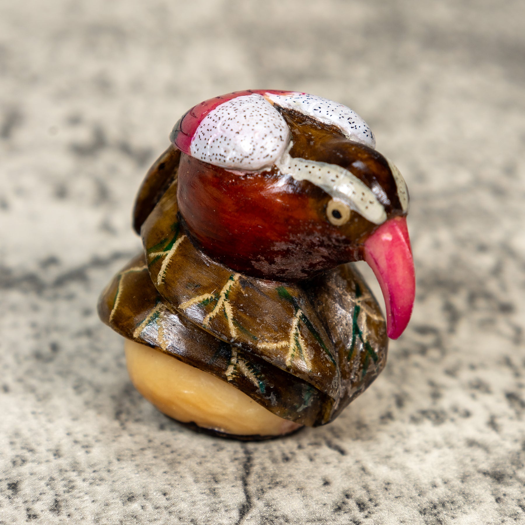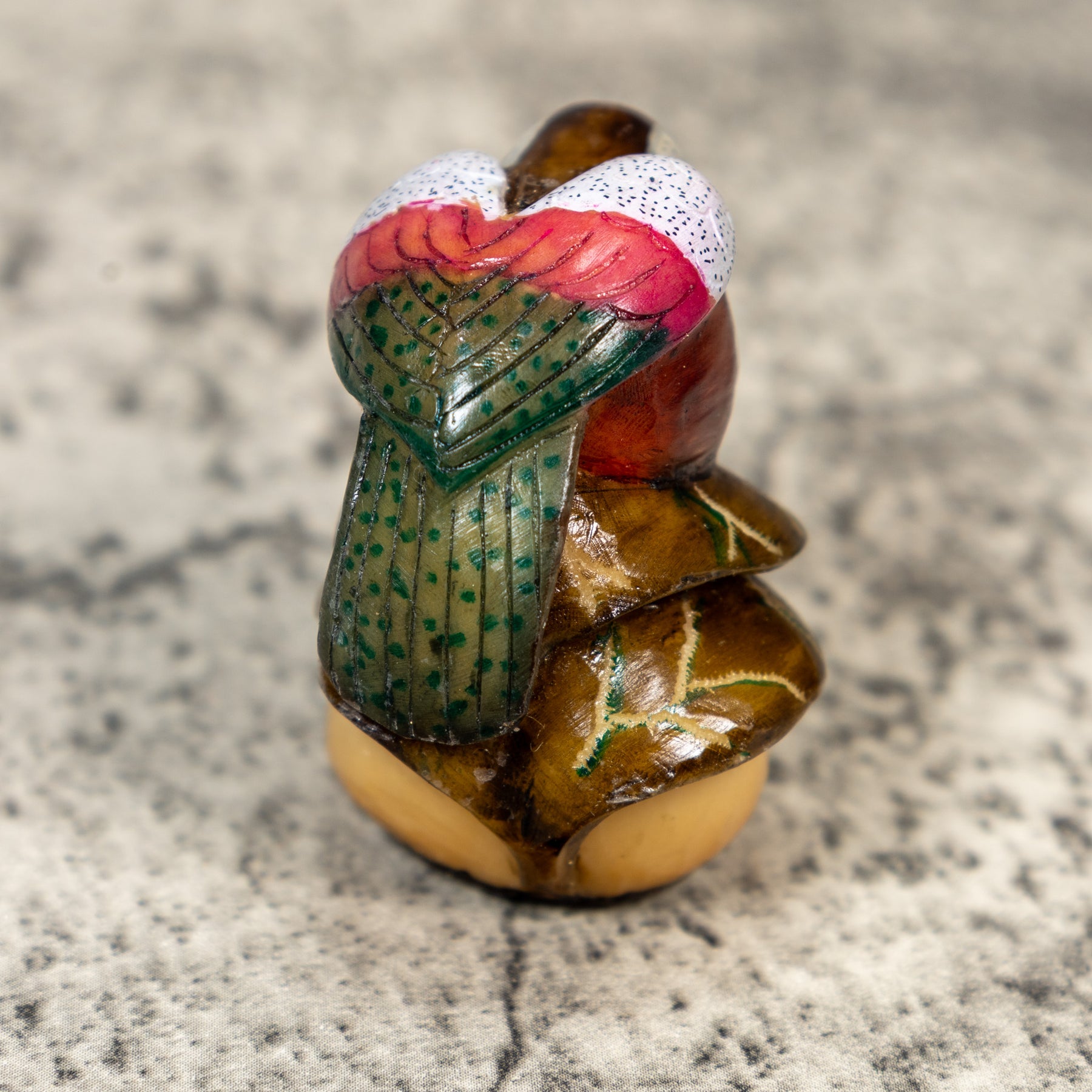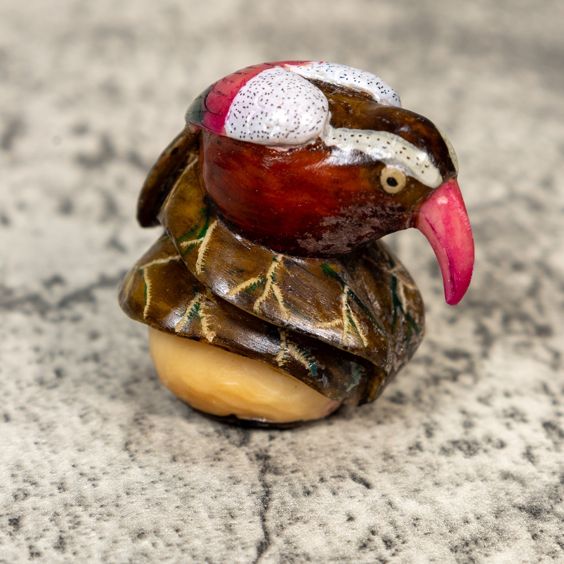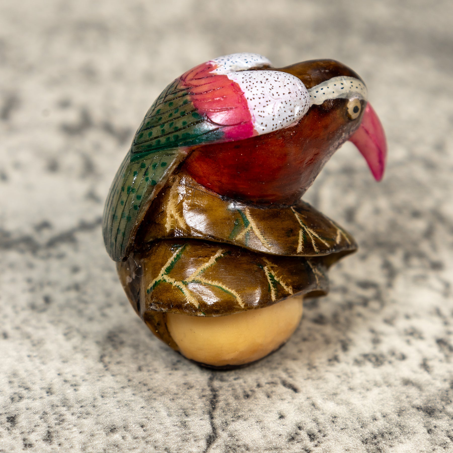 Hand carved from sustainably harvested tagua nut, often called “vegetable ivory”, this charming Bird celebrates the rich biodiversity of the Latin American rainforest. Each small sculpture is created by skilled artisans in Panama who carefully shape and polish the natural nut before bringing the animal to life with detailed hand painting. Every piece is made by our artisan partners for TraderBrock, helping support traditional craft and fair, long term relationships with local makers.