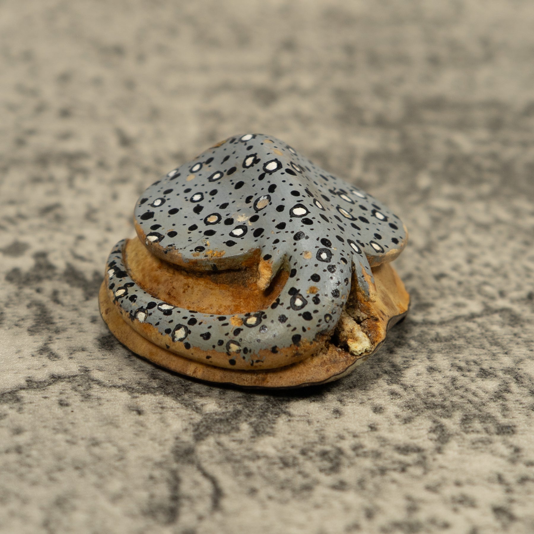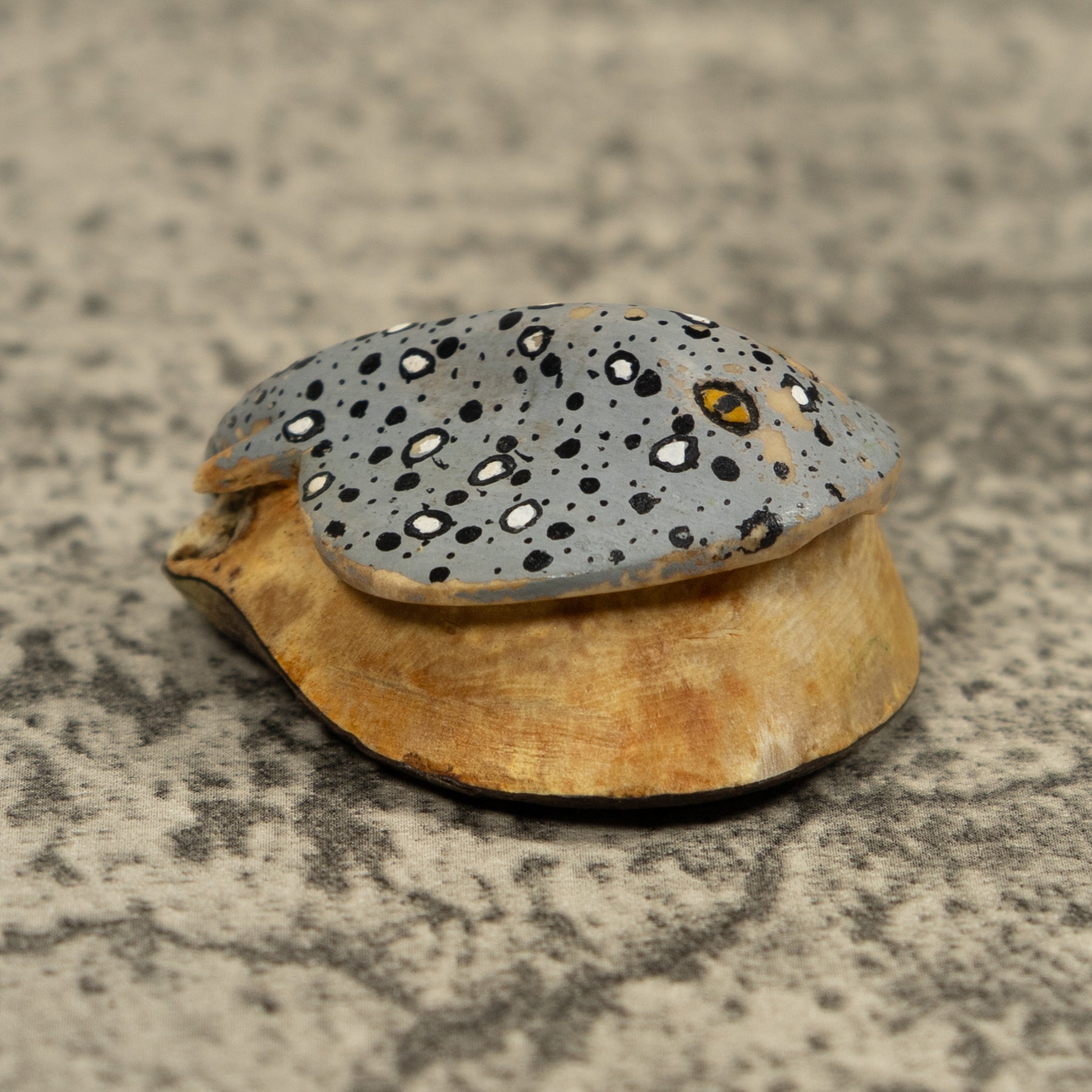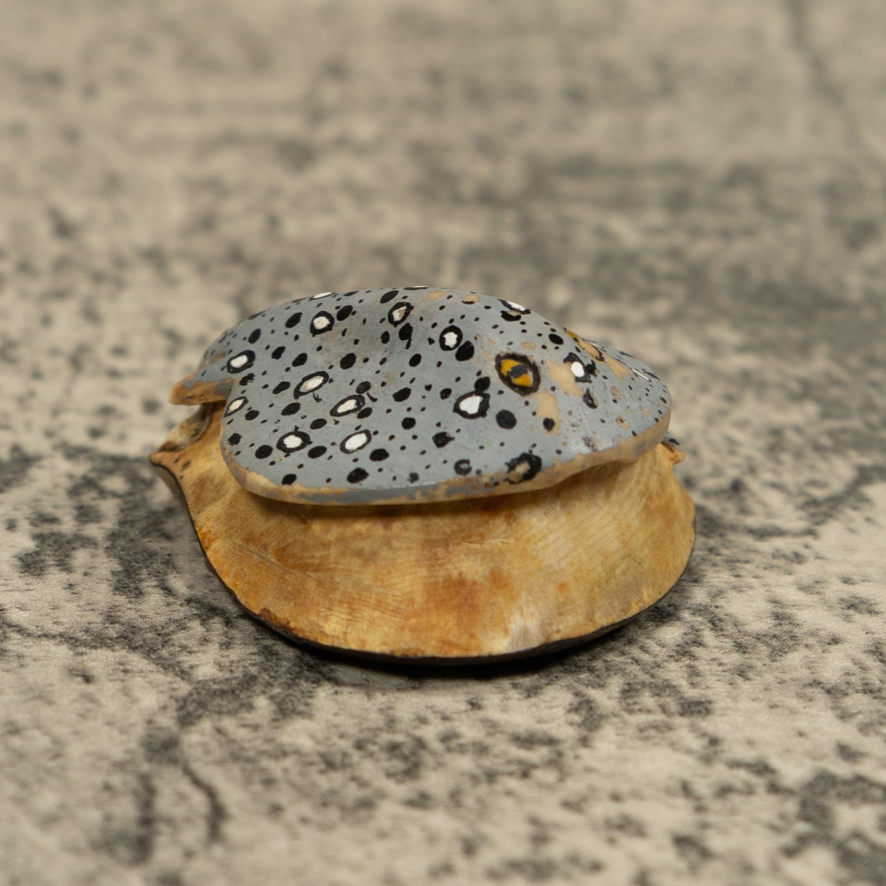 Hand carved from sustainably harvested tagua nut, often called “vegetable ivory”, this charming Stingray Fish Ocean Tagua Carving celebrates the rich biodiversity of the Latin American rainforest. Each small sculpture is created by skilled artisans in Panama who carefully shape and polish the natural nut before bringing the animal to life with detailed hand painting. Every piece is made by our artisan partners for TraderBrock, helping support traditional craft and fair, long term relationships with local makers.