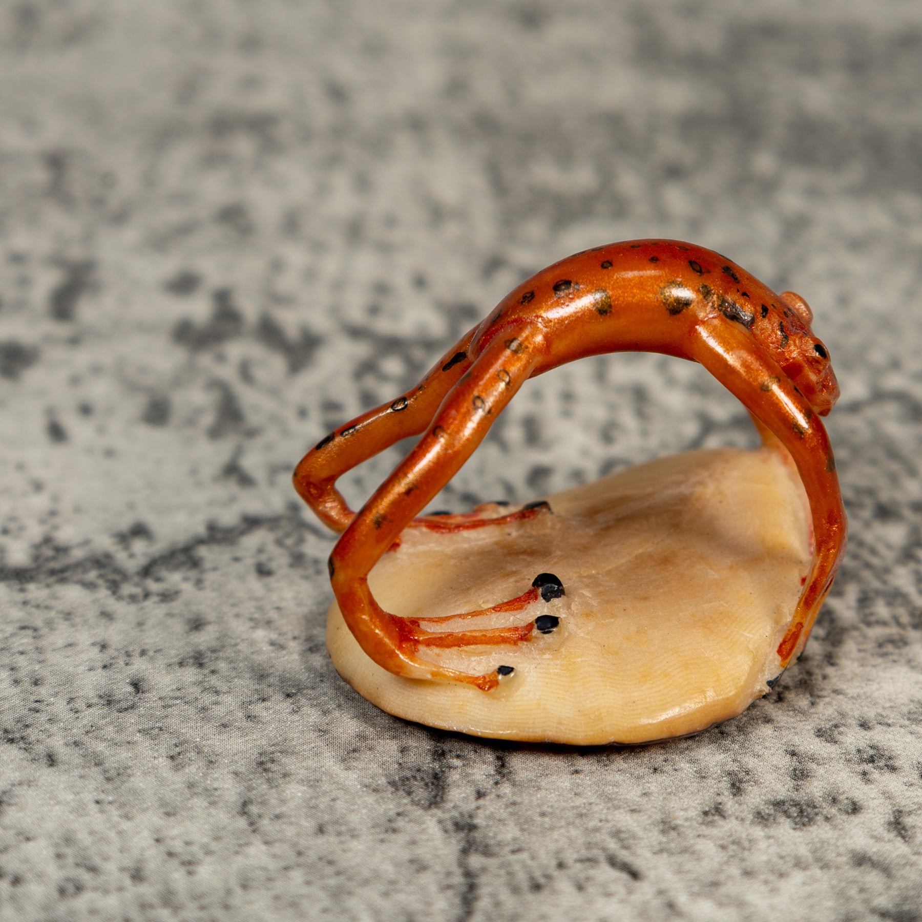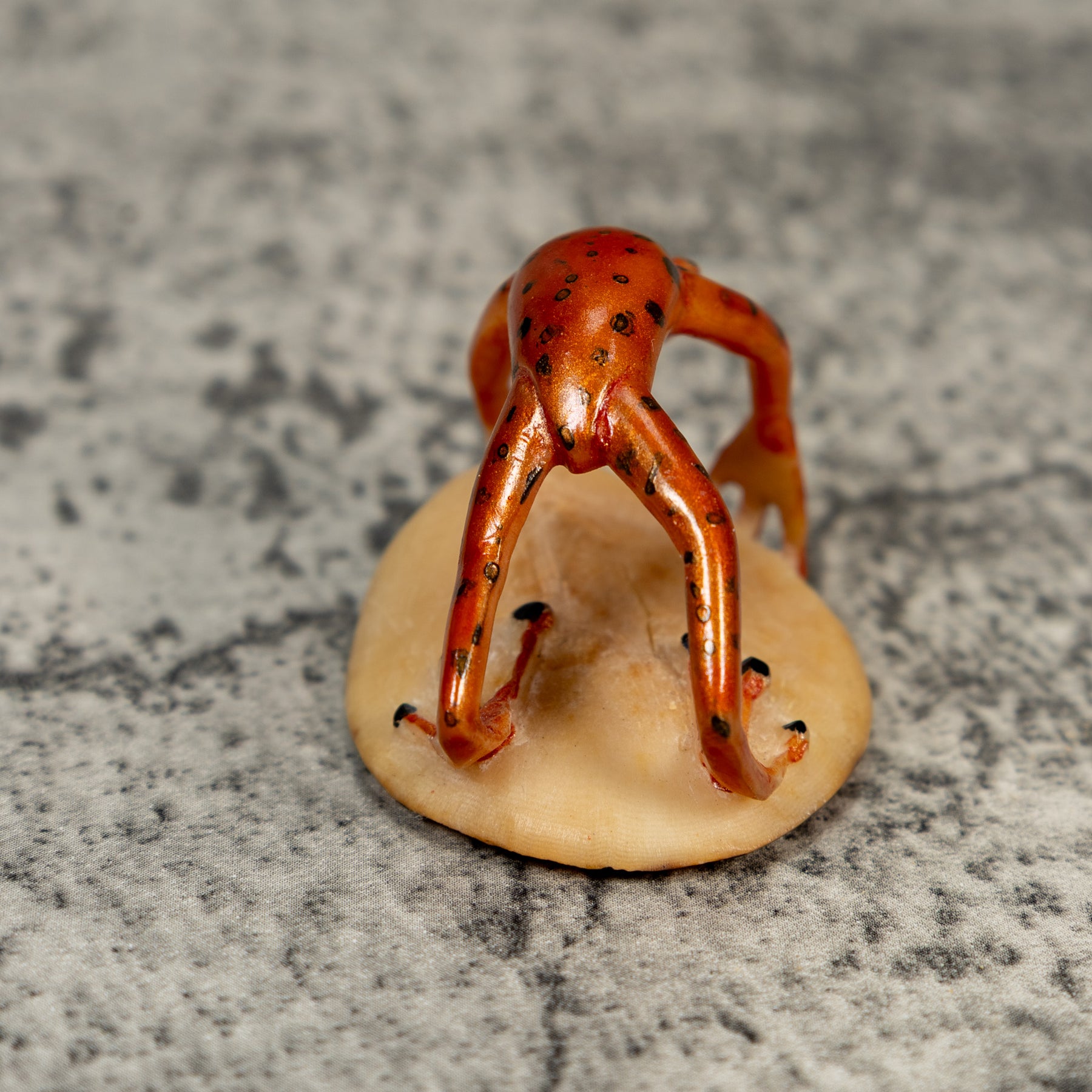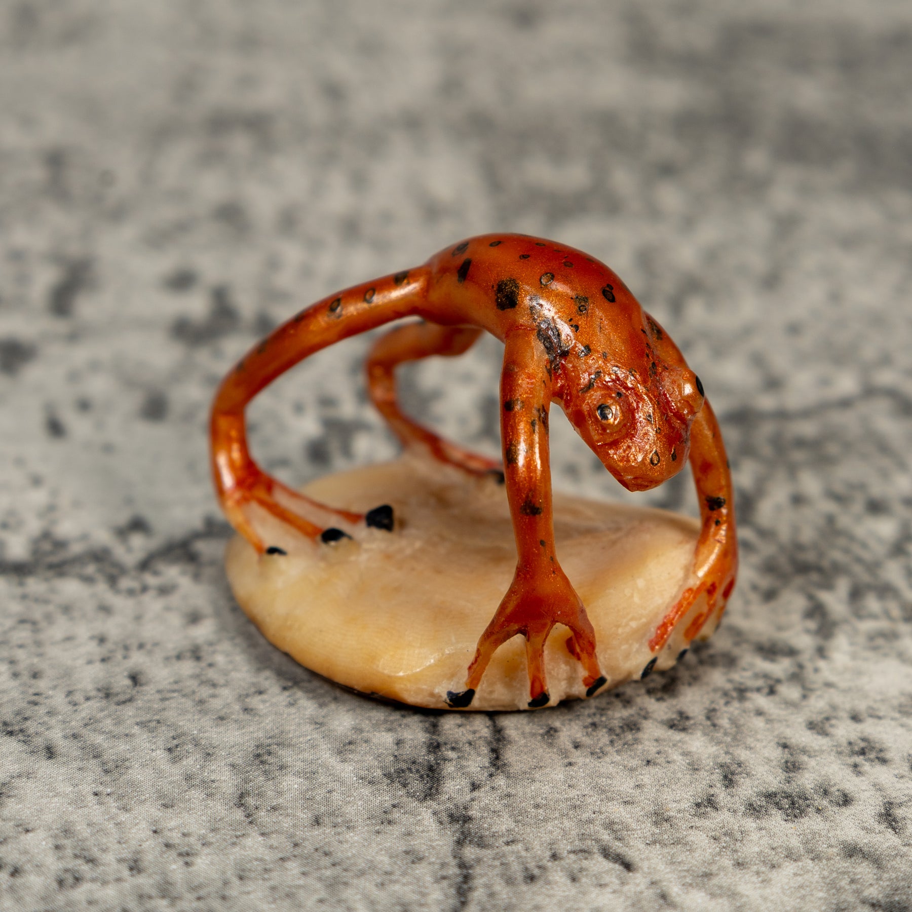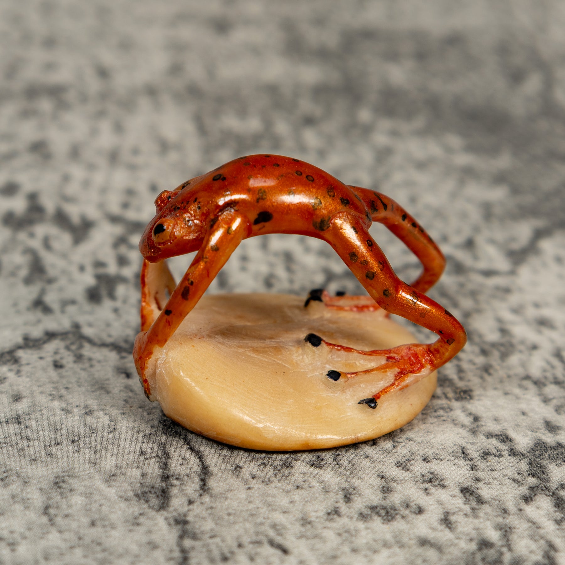 Hand carved from sustainably harvested tagua nut, often called “vegetable ivory”, this charming Frog celebrates the rich biodiversity of the Latin American rainforest. Each small sculpture is created by skilled artisans in Panama who carefully shape and polish the natural nut before bringing the animal to life with detailed hand painting. Every piece is made by our artisan partners for TraderBrock, helping support traditional craft and fair, long term relationships with local makers.