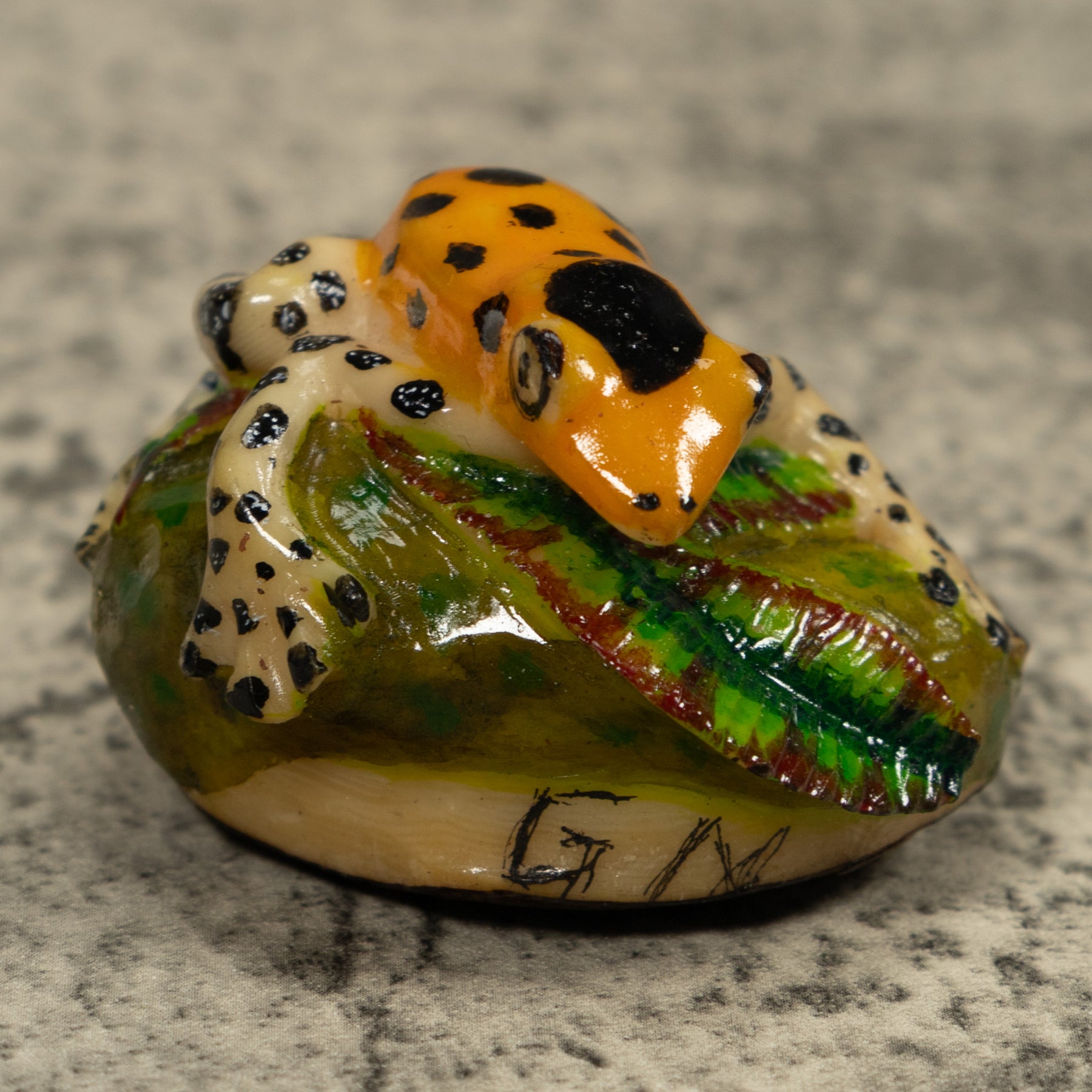Hand carved from sustainably harvested tagua nut, often called “vegetable ivory”, this charming Frog celebrates the rich biodiversity of the Latin American rainforest. Each small sculpture is created by skilled artisans in Panama who carefully shape and polish the natural nut before bringing the animal to life with detailed hand painting. Every piece is made by our artisan partners for TraderBrock, helping support traditional craft and fair, long term relationships with local makers.