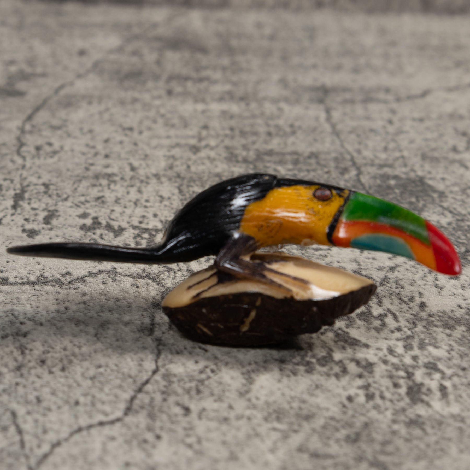 Hand carved from sustainably harvested tagua nut, often called “vegetable ivory”, this charming Toucan celebrates the rich biodiversity of the Latin American rainforest. Each small sculpture is created by skilled artisans in Panama who carefully shape and polish the natural nut before bringing the animal to life with detailed hand painting. Every piece is made by our artisan partners for TraderBrock, helping support traditional craft and fair, long term relationships with local makers.
