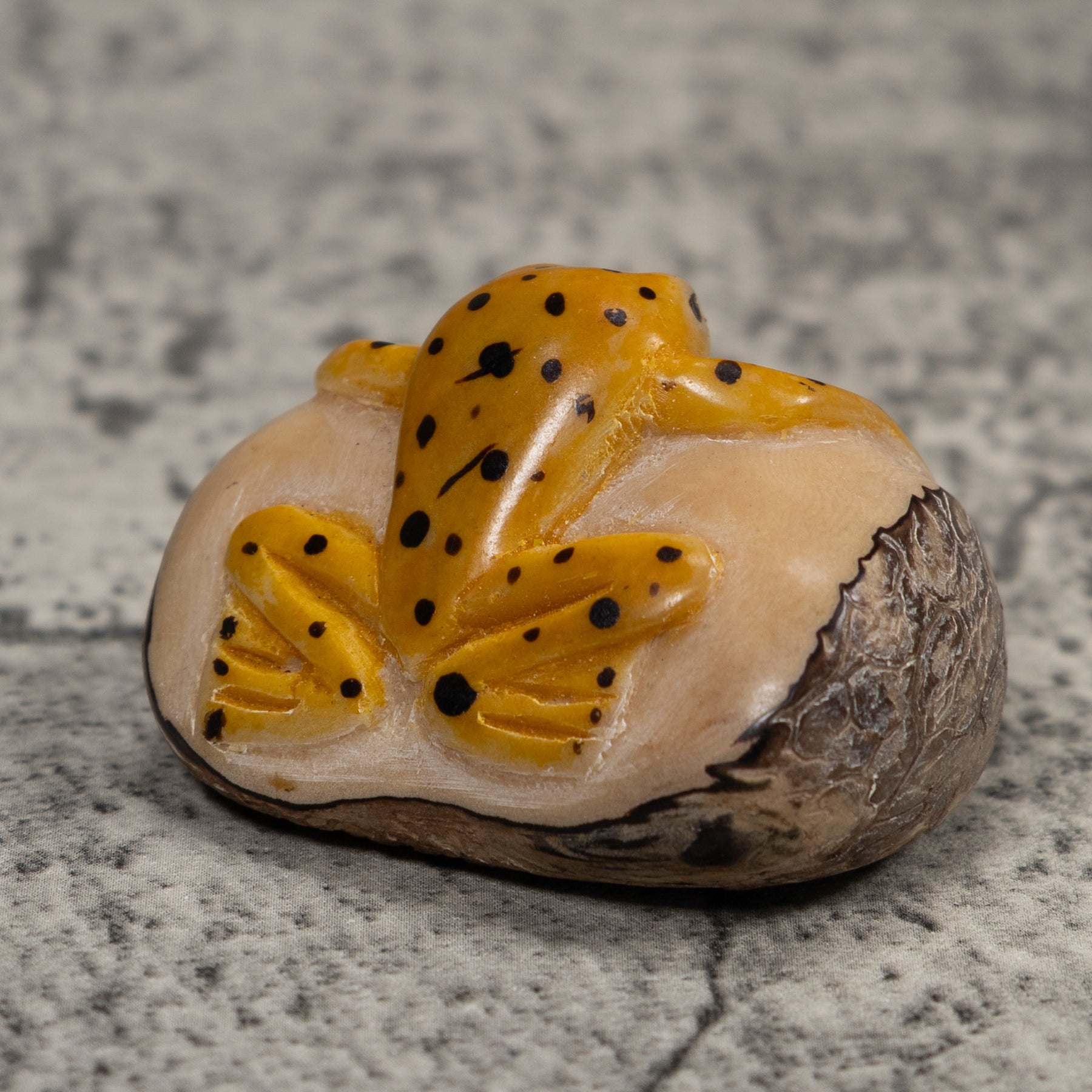 Vintage Black And Gold Frog Tagua Carving