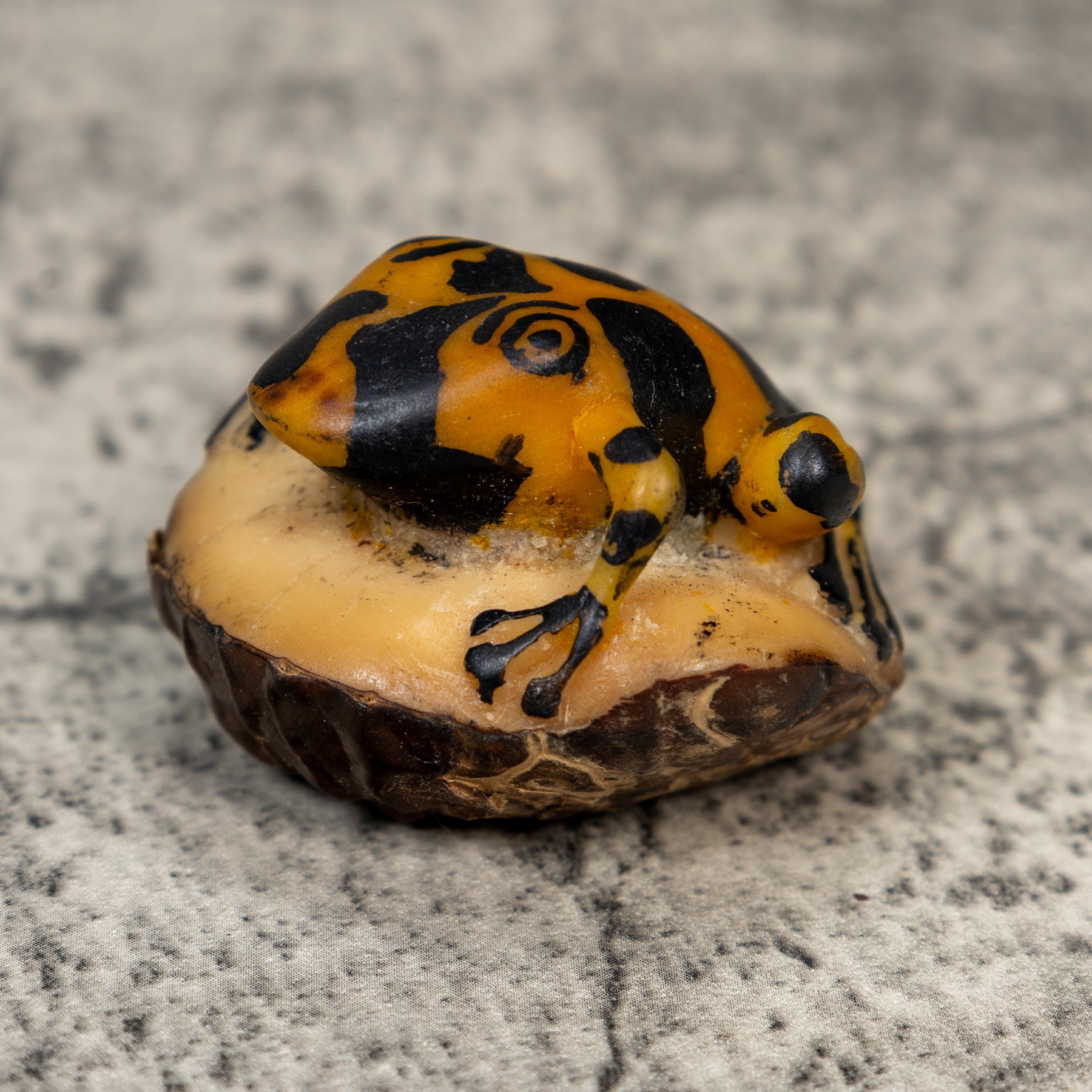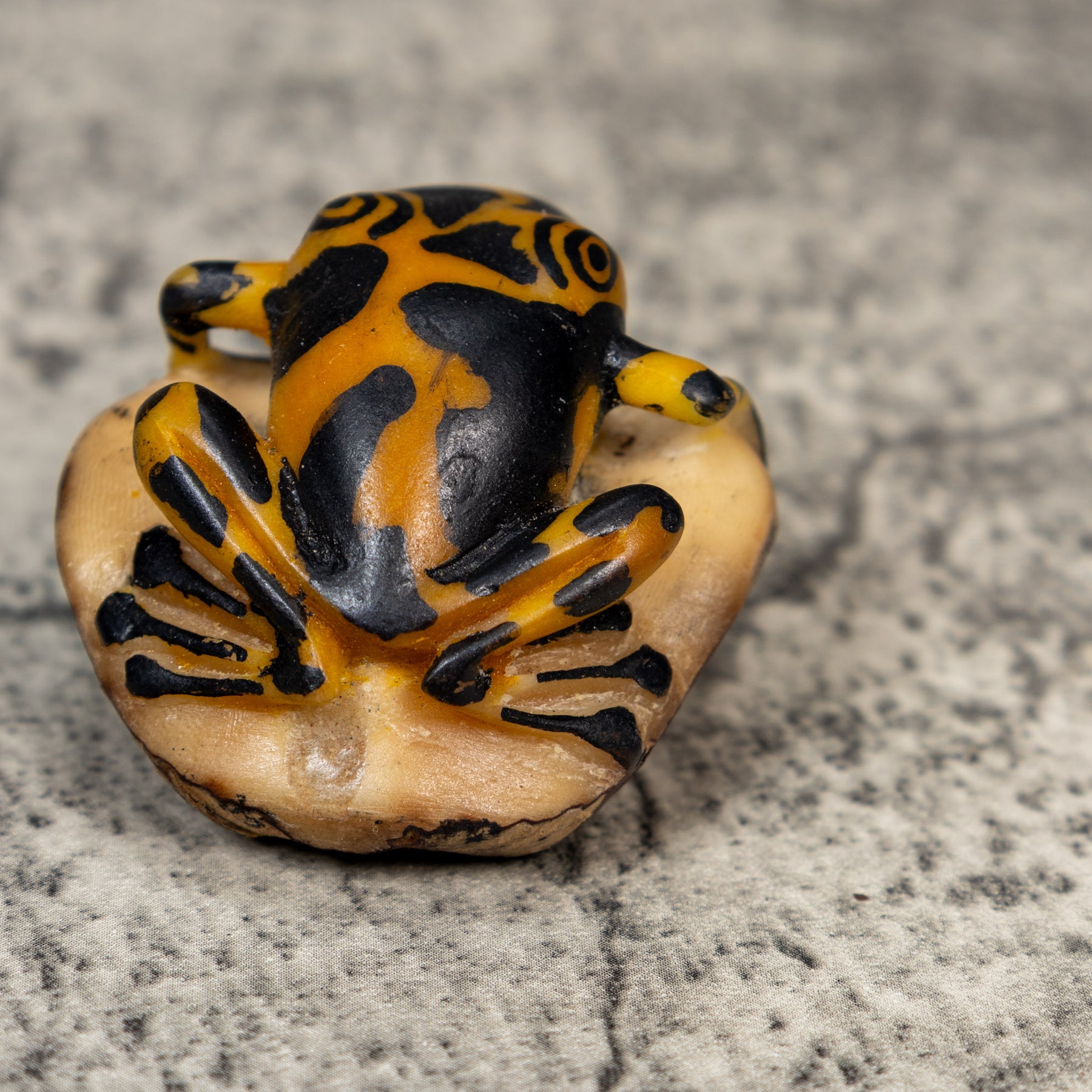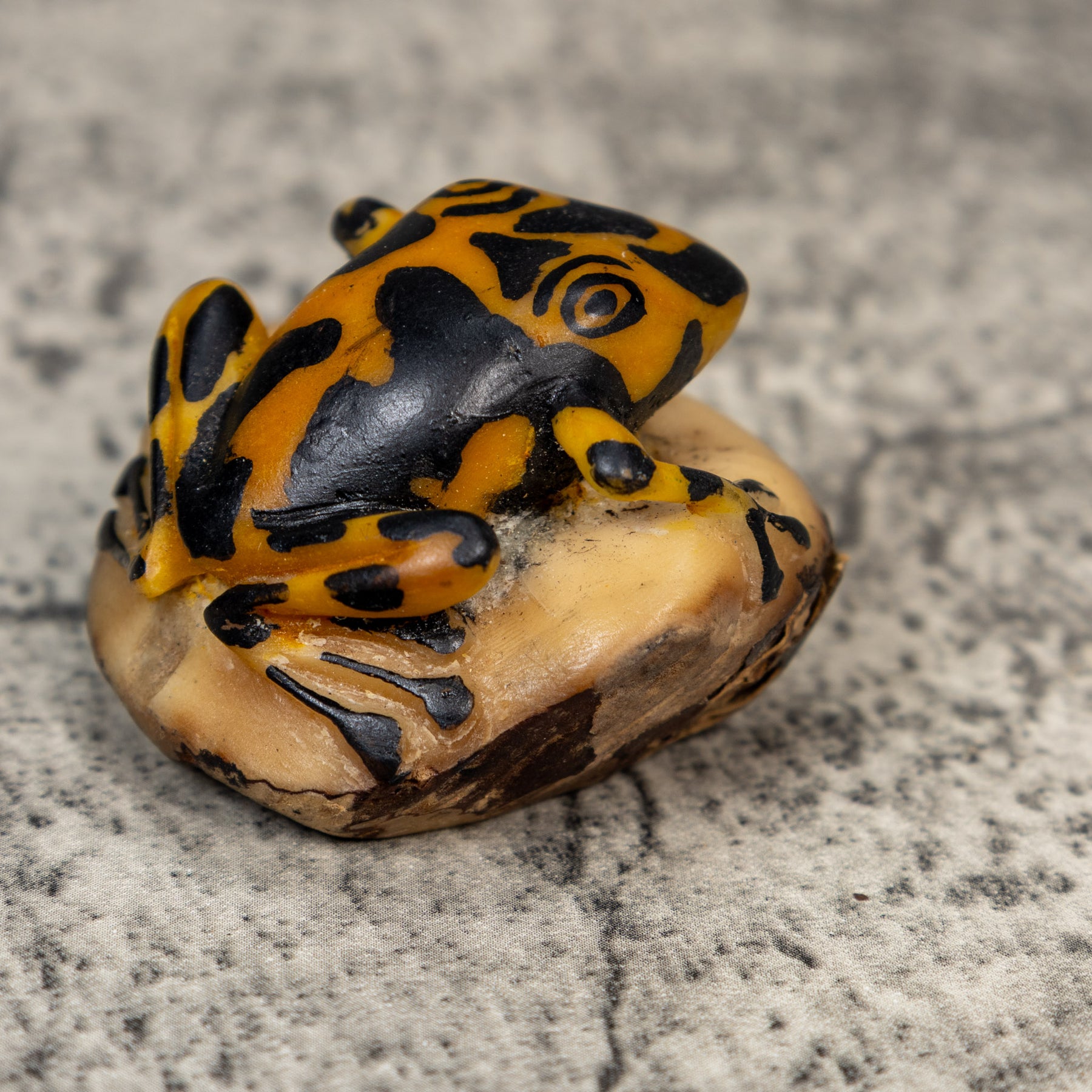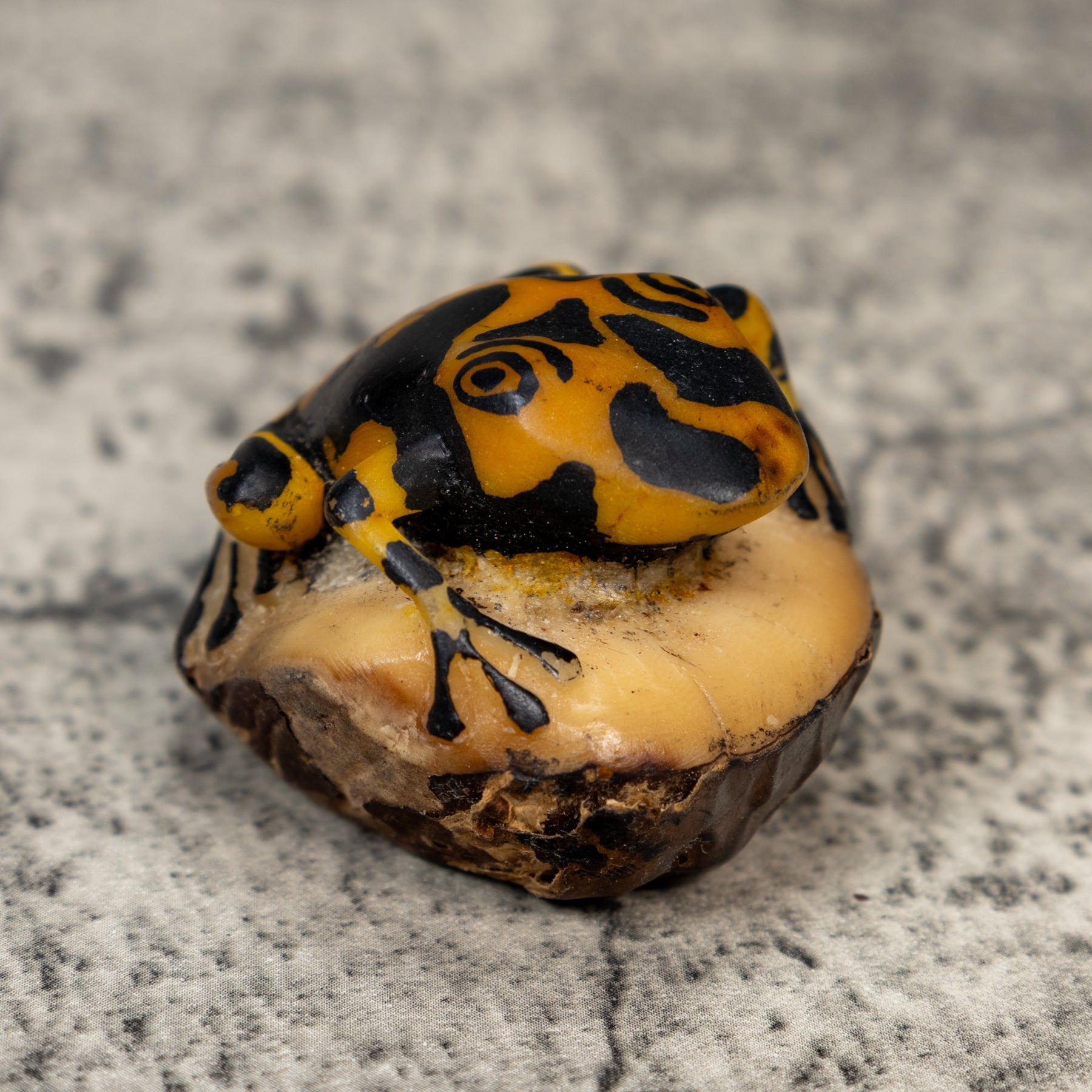 Vintage Black And Gold Frog Tagua Carving