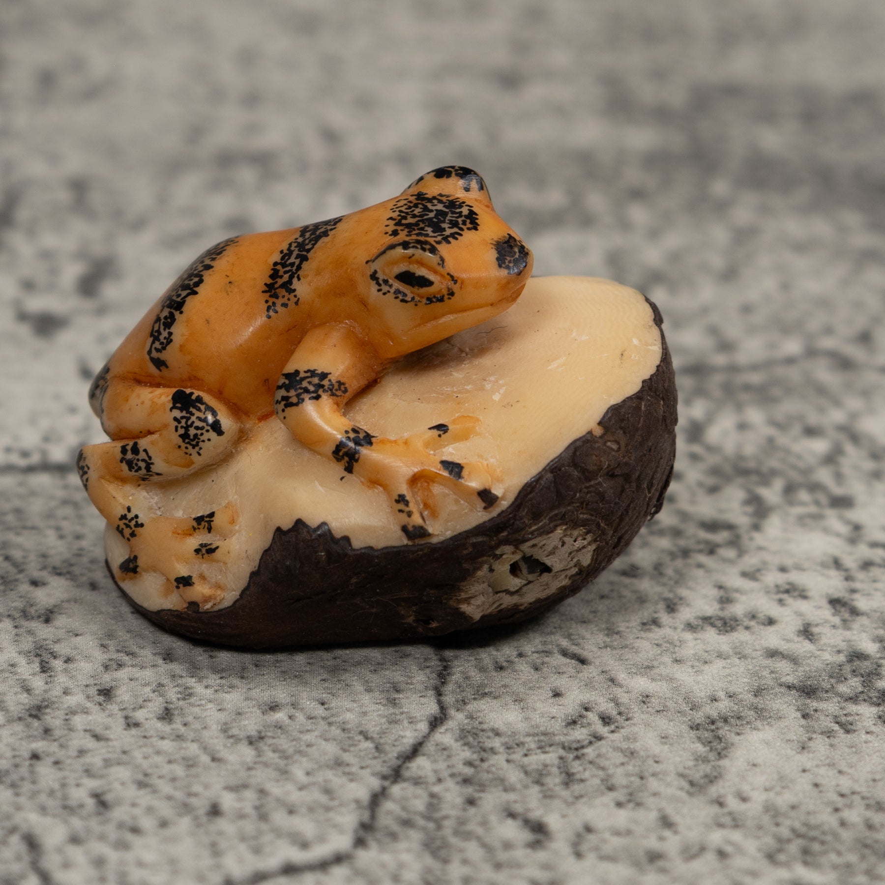Hand carved from sustainably harvested tagua nut, often called “vegetable ivory”, this charming Frog celebrates the rich biodiversity of the Latin American rainforest. Each small sculpture is created by skilled artisans in Panama who carefully shape and polish the natural nut before bringing the animal to life with detailed hand painting. Every piece is made by our artisan partners for TraderBrock, helping support traditional craft and fair, long term relationships with local makers.