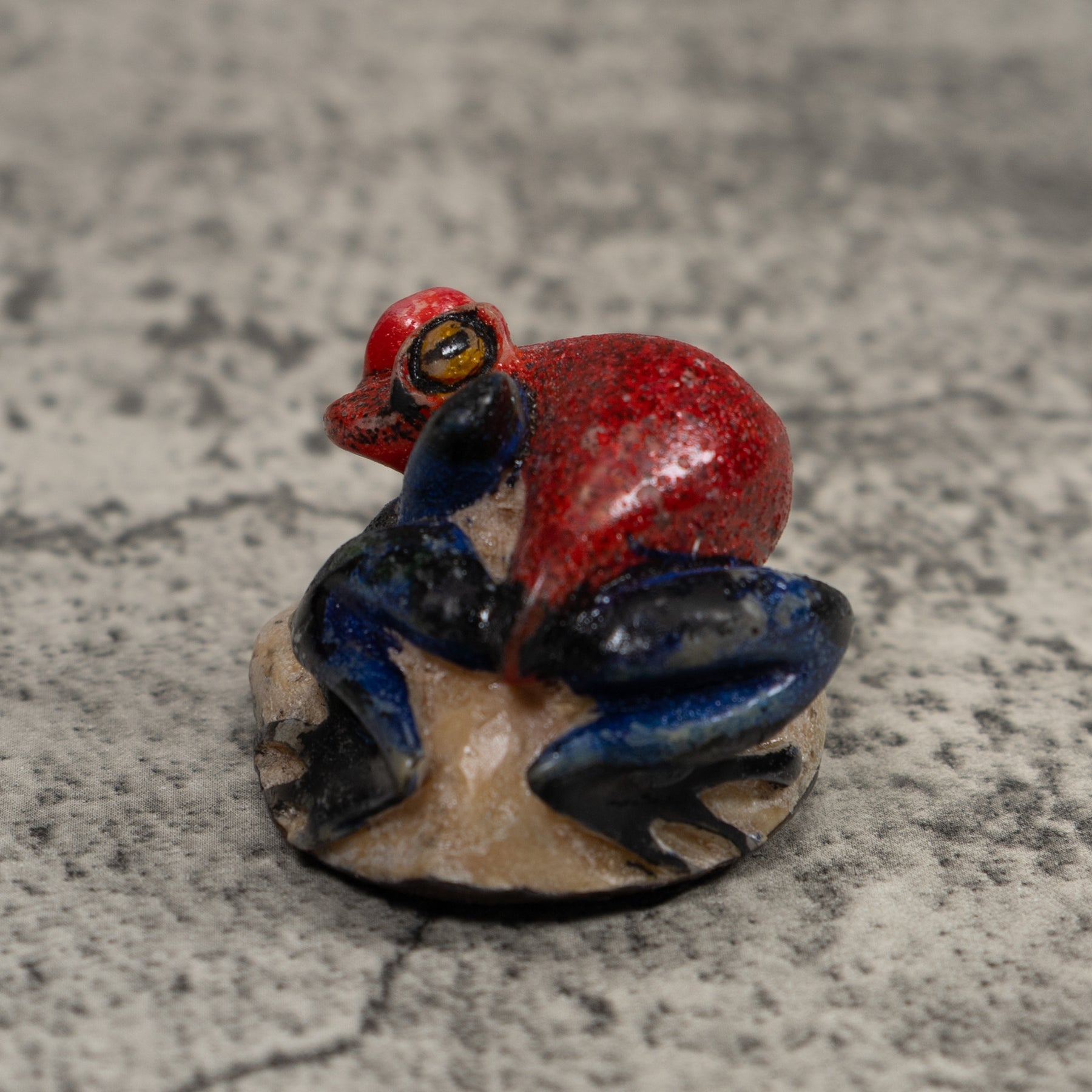 Hand carved from sustainably harvested tagua nut, often called “vegetable ivory”, this charming Frog celebrates the rich biodiversity of the Latin American rainforest. Each small sculpture is created by skilled artisans in Panama who carefully shape and polish the natural nut before bringing the animal to life with detailed hand painting. Every piece is made by our artisan partners for TraderBrock, helping support traditional craft and fair, long term relationships with local makers.