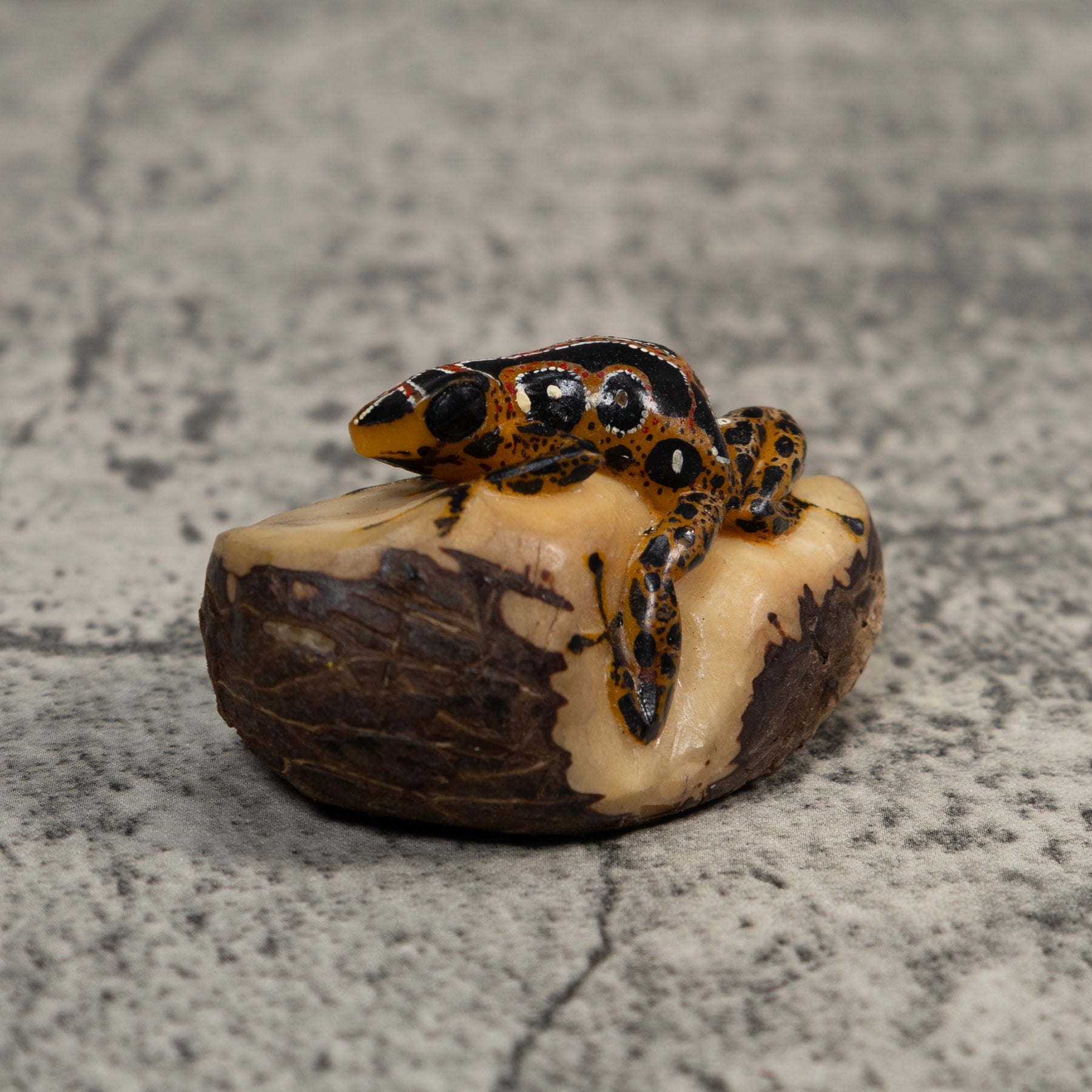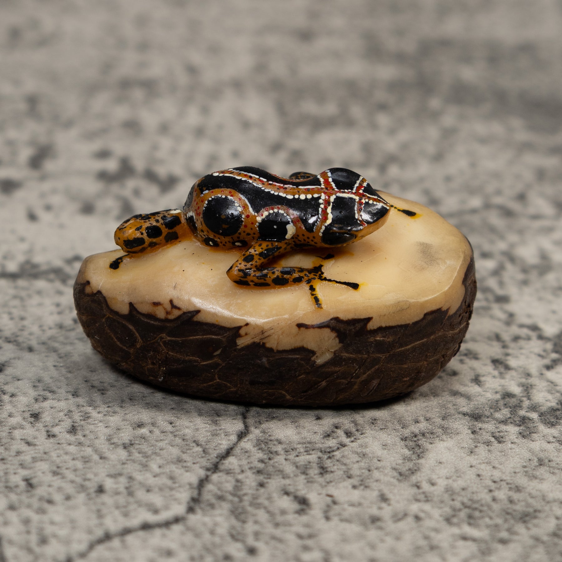 Vintage Black Brown And White Poison Dart Frog Tagua Carving