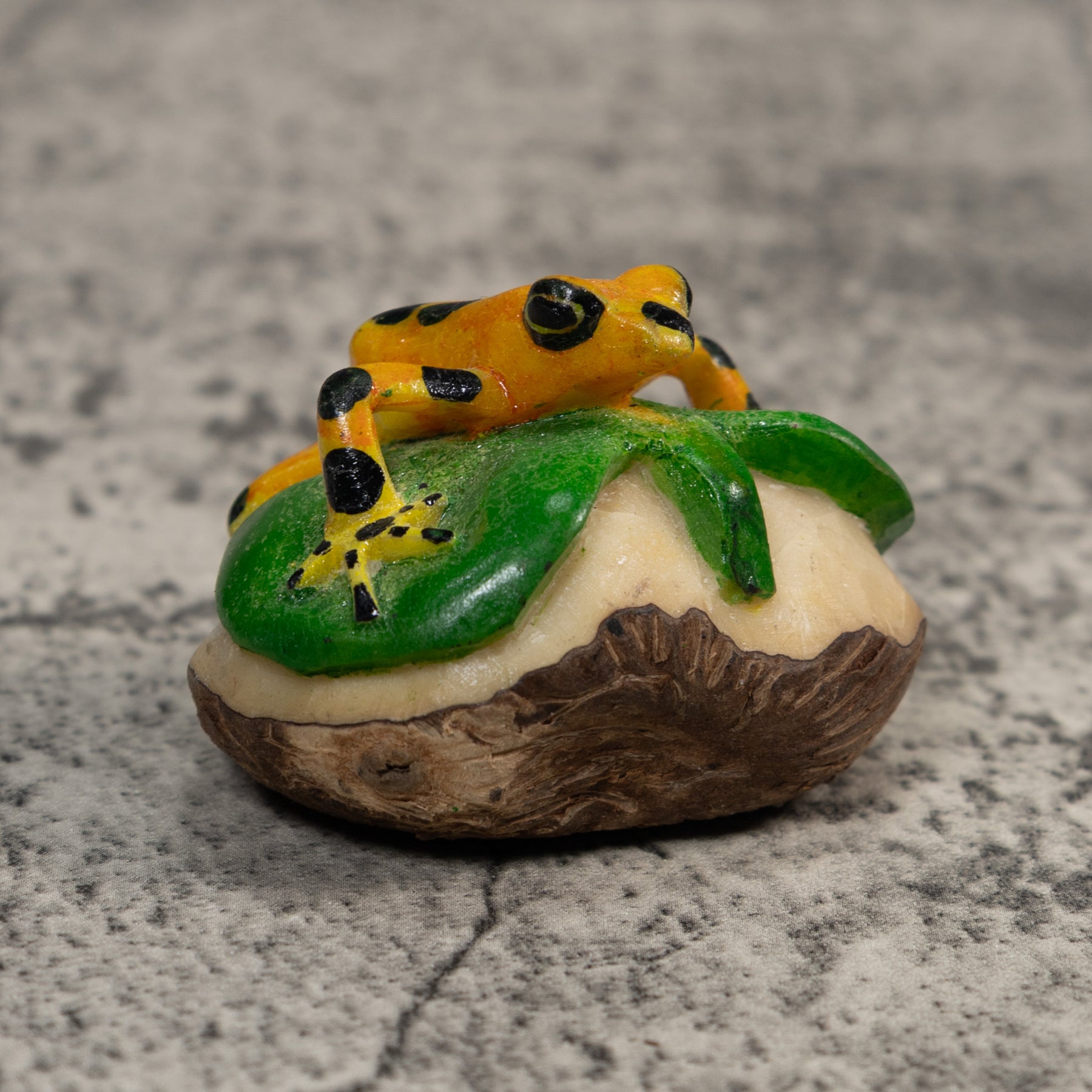 Black Gold And Green Poison Dart Frog Tagua Carving