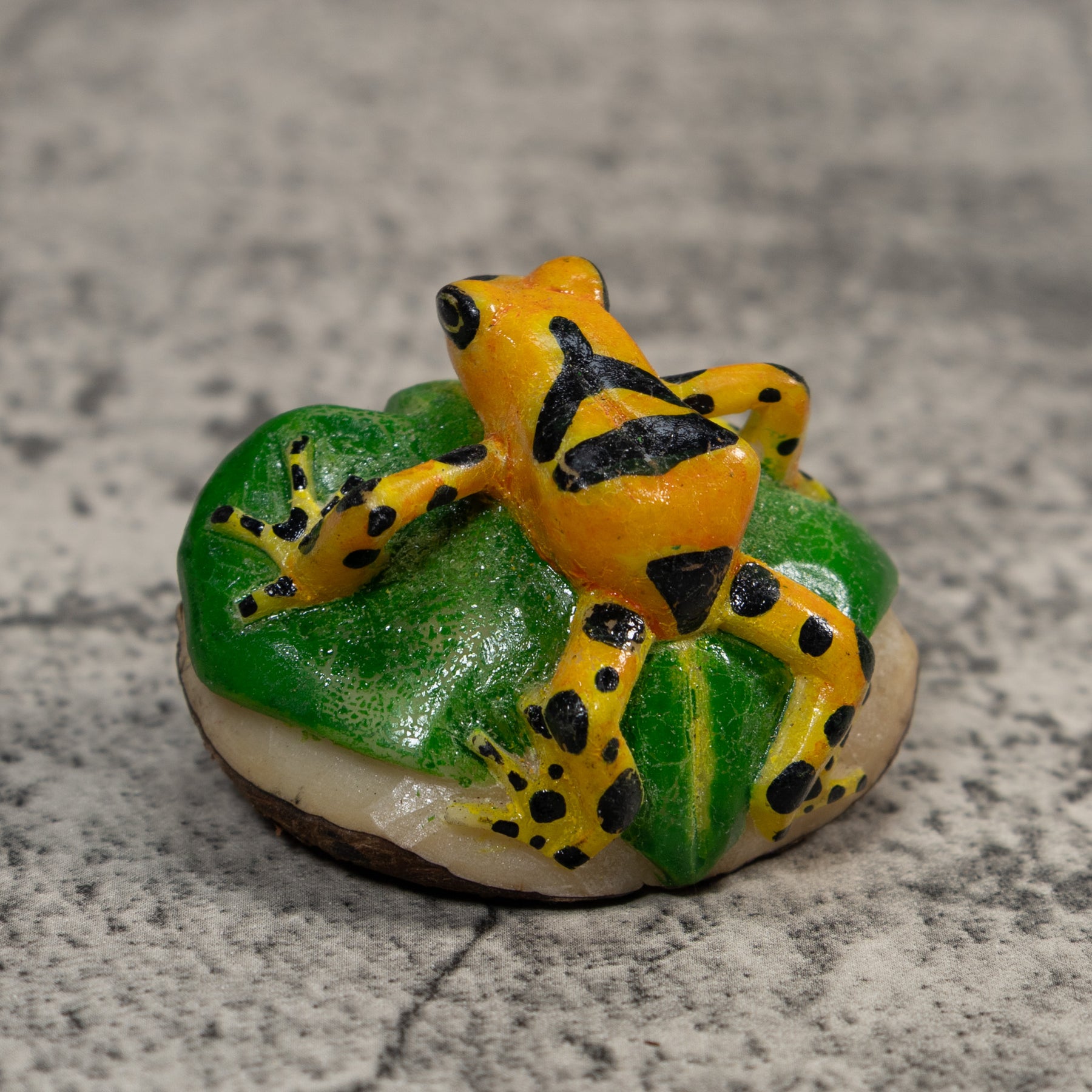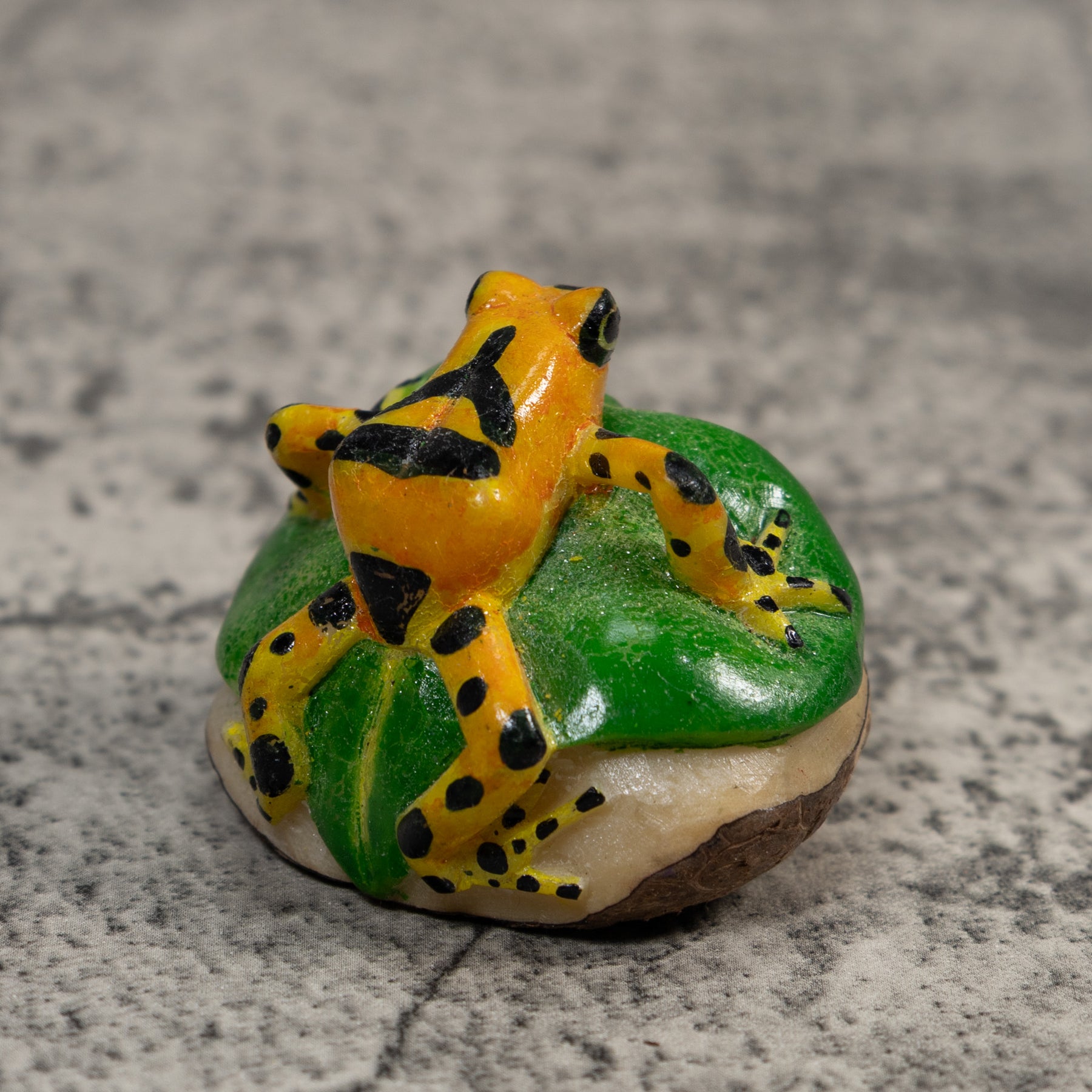 Hand carved from sustainably harvested tagua nut, often called “vegetable ivory”, this charming Frog celebrates the rich biodiversity of the Latin American rainforest. Each small sculpture is created by skilled artisans in Panama who carefully shape and polish the natural nut before bringing the animal to life with detailed hand painting. Every piece is made by our artisan partners for TraderBrock, helping support traditional craft and fair, long term relationships with local makers.