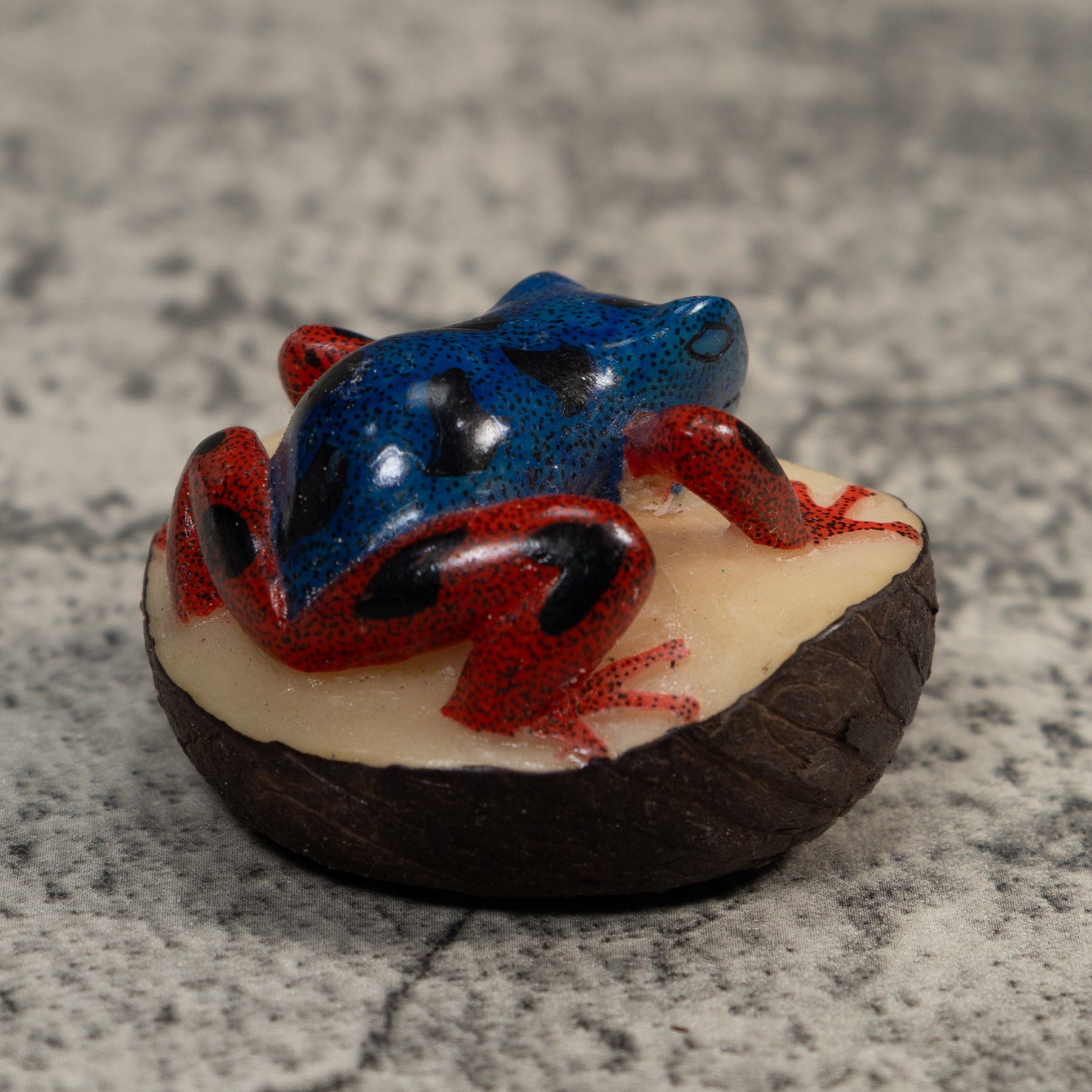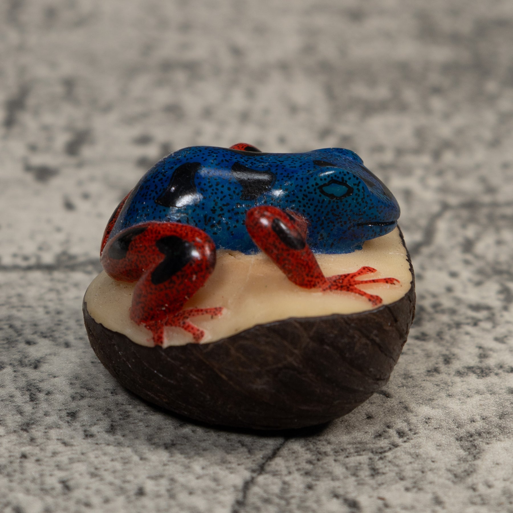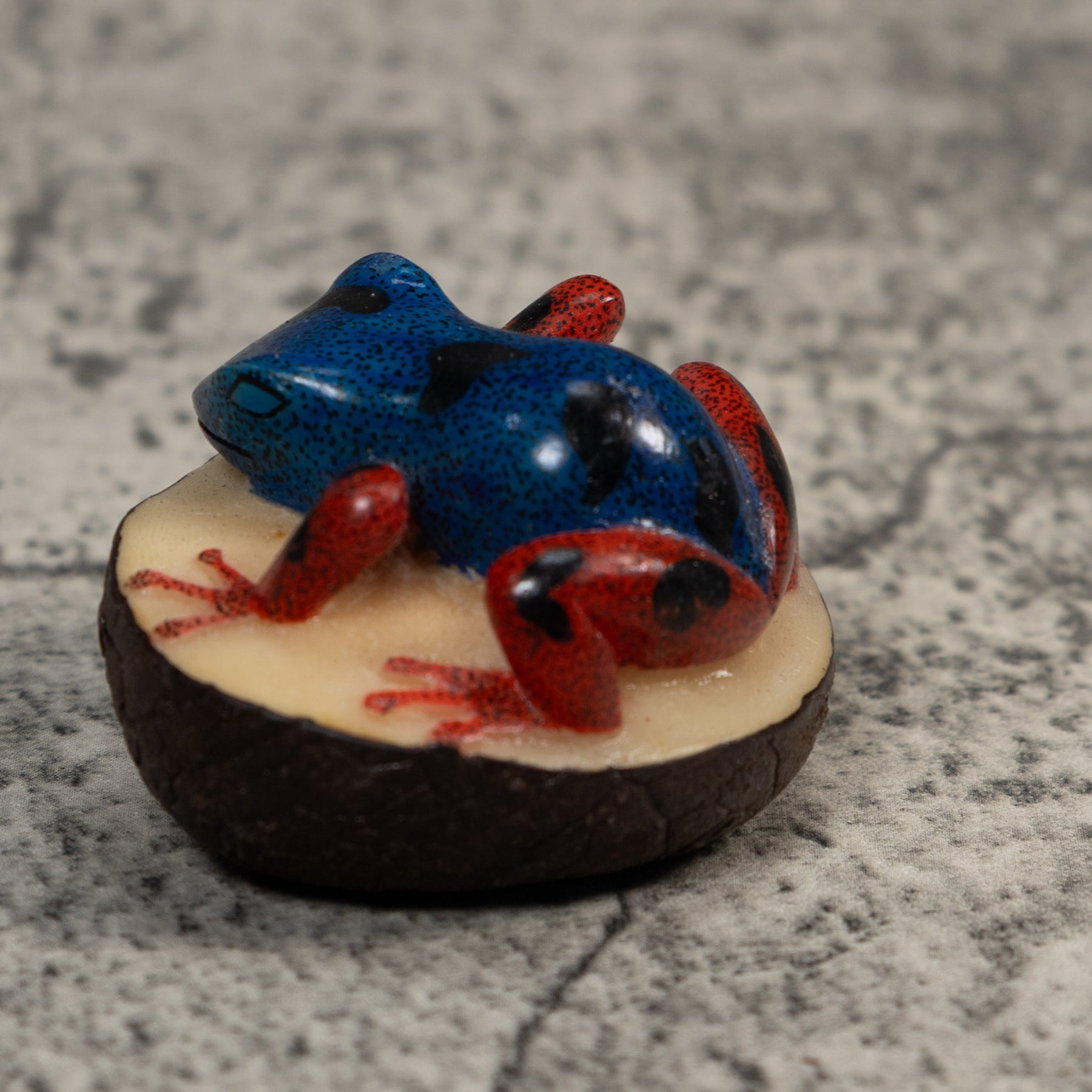 Vintage Blue And Red Poison Dart Frog Tagua Carving