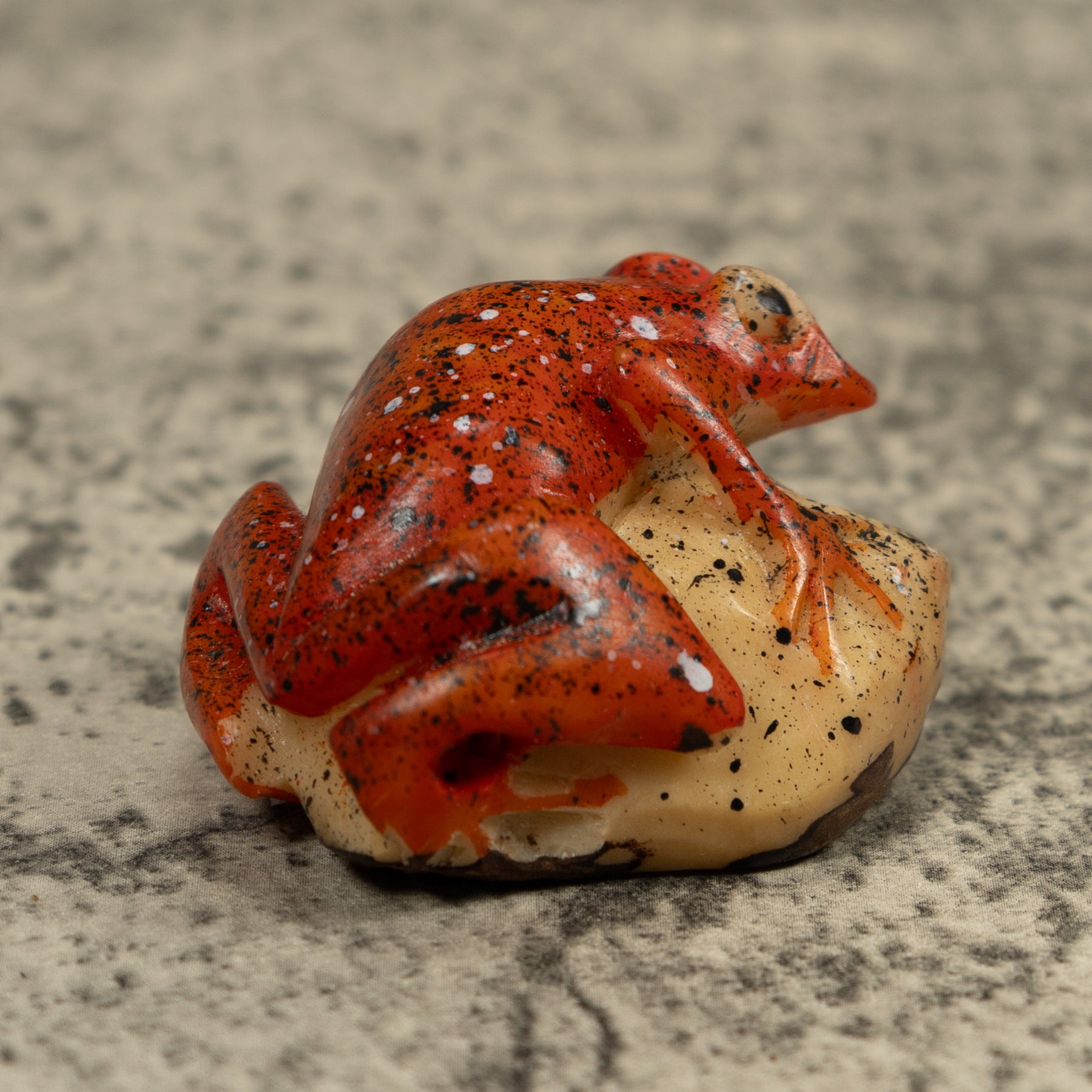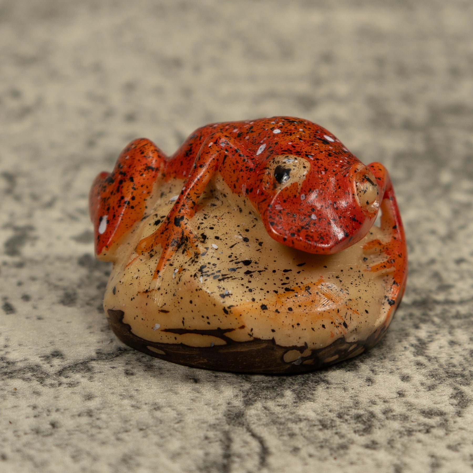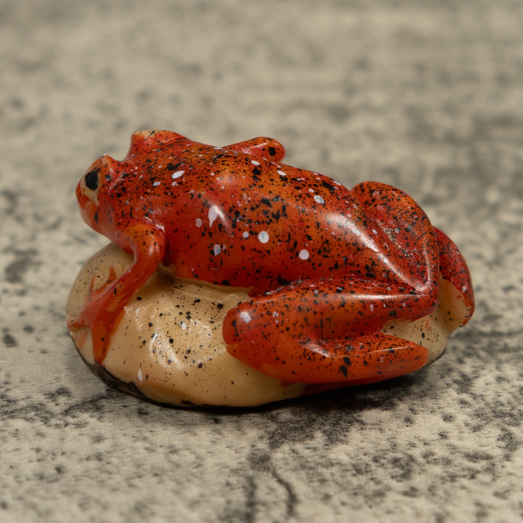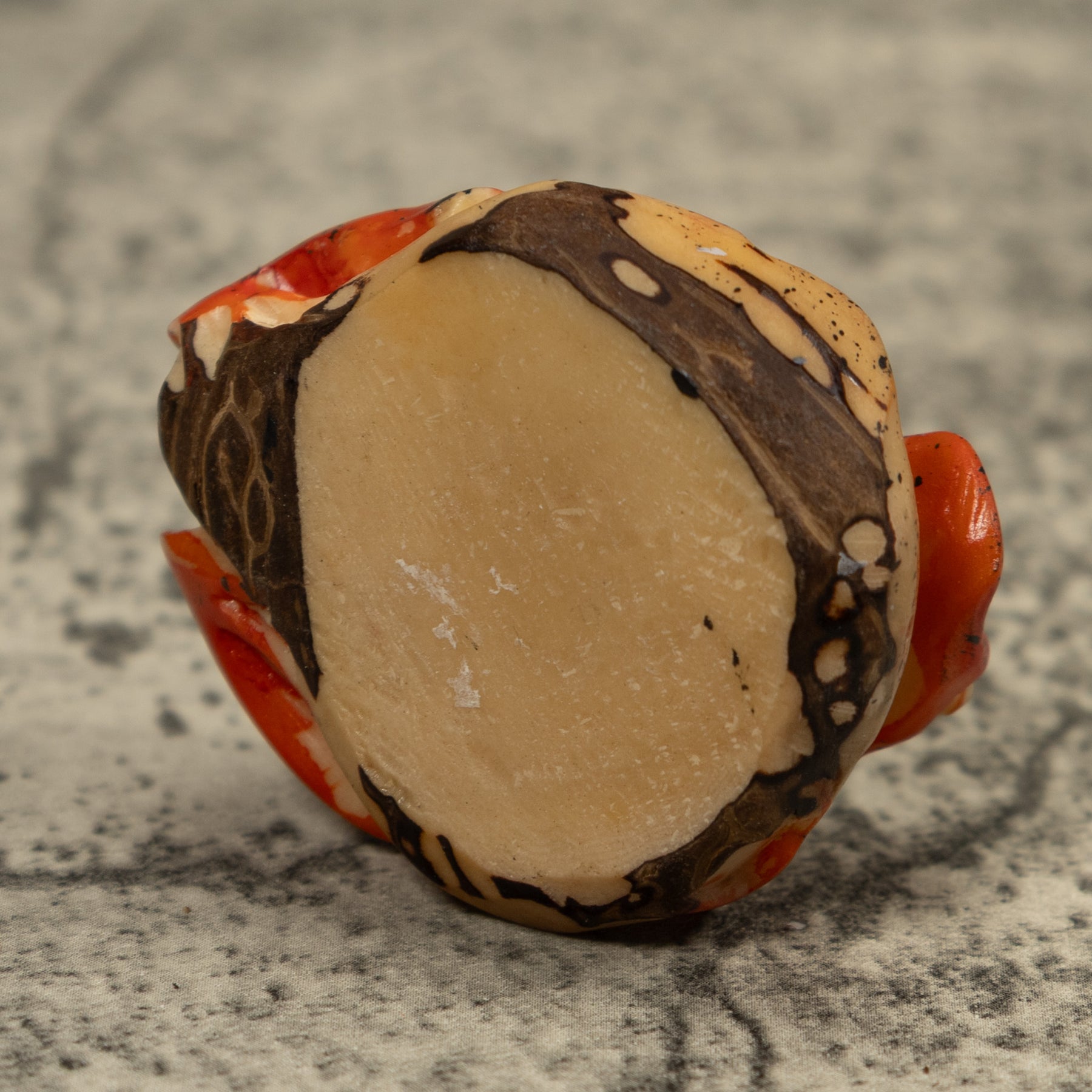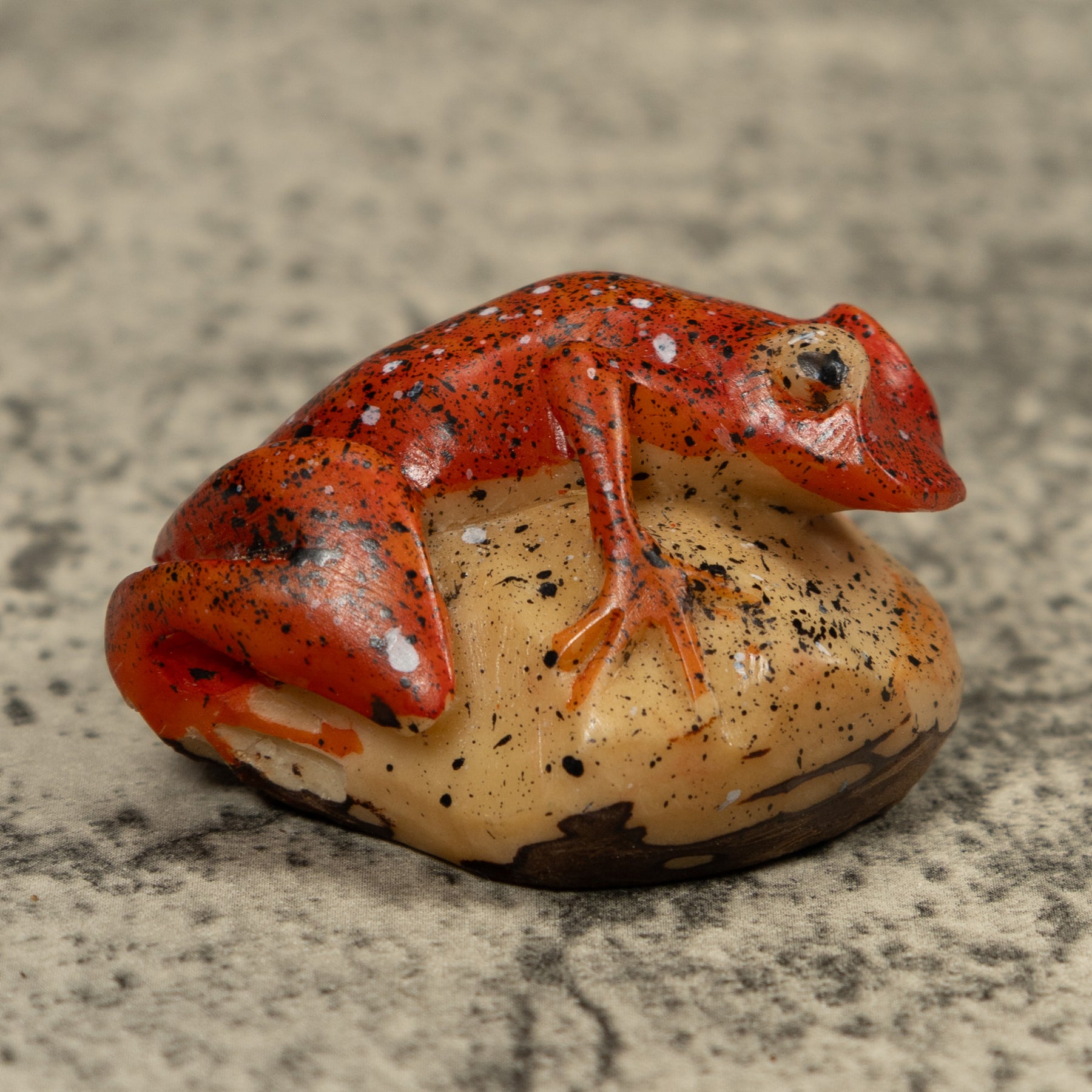 Hand carved from sustainably harvested tagua nut, often called “vegetable ivory”, this charming Vintage Frog Tagua Carving celebrates the rich biodiversity of the Latin American rainforest. Each small sculpture is created by skilled artisans in Panama who carefully shape and polish the natural nut before bringing the animal to life with detailed hand painting. Every piece is made by our artisan partners for TraderBrock, helping support traditional craft and fair, long term relationships with local makers.