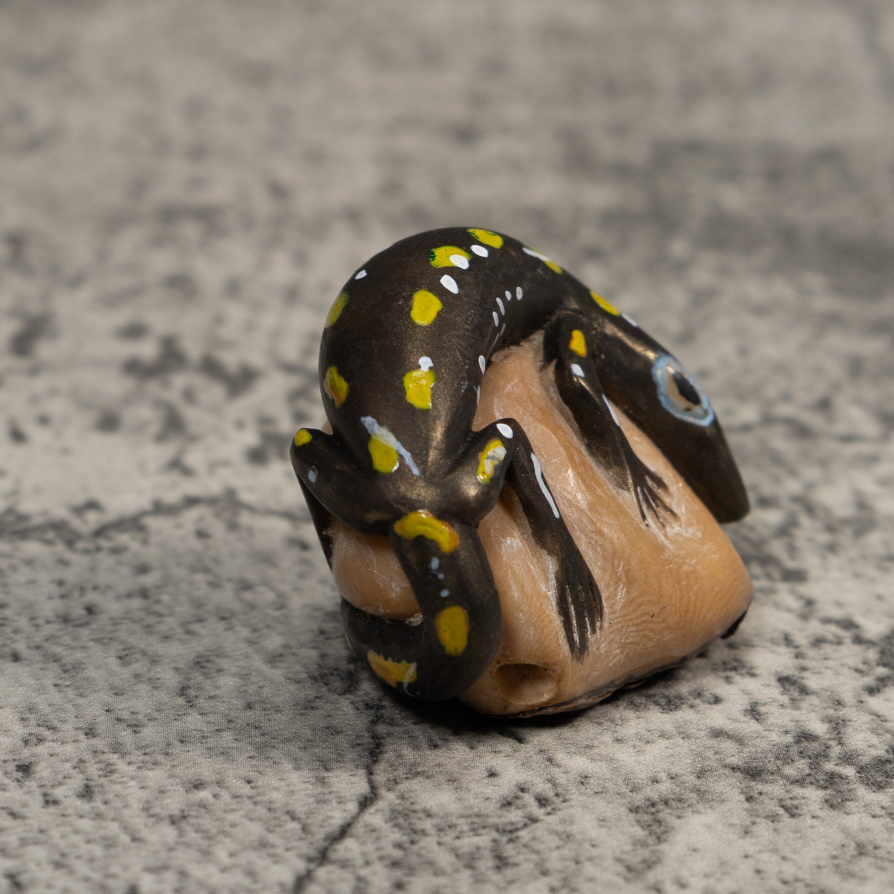 Hand carved from sustainably harvested tagua nut, often called “vegetable ivory”, this charming Gecko celebrates the rich biodiversity of the Latin American rainforest. Each small sculpture is created by skilled artisans in Panama who carefully shape and polish the natural nut before bringing the animal to life with detailed hand painting. Every piece is made by our artisan partners for TraderBrock, helping support traditional craft and fair, long term relationships with local makers.