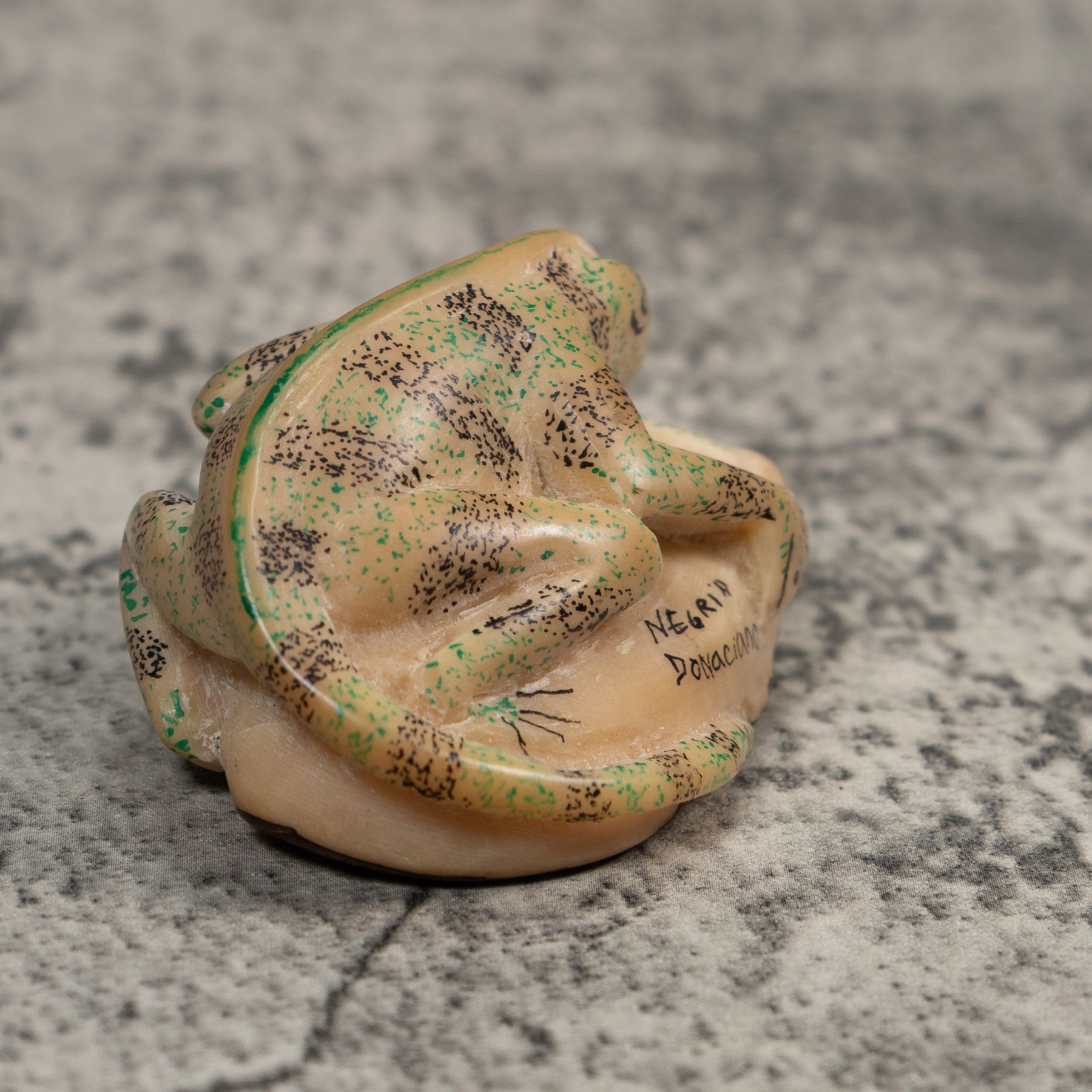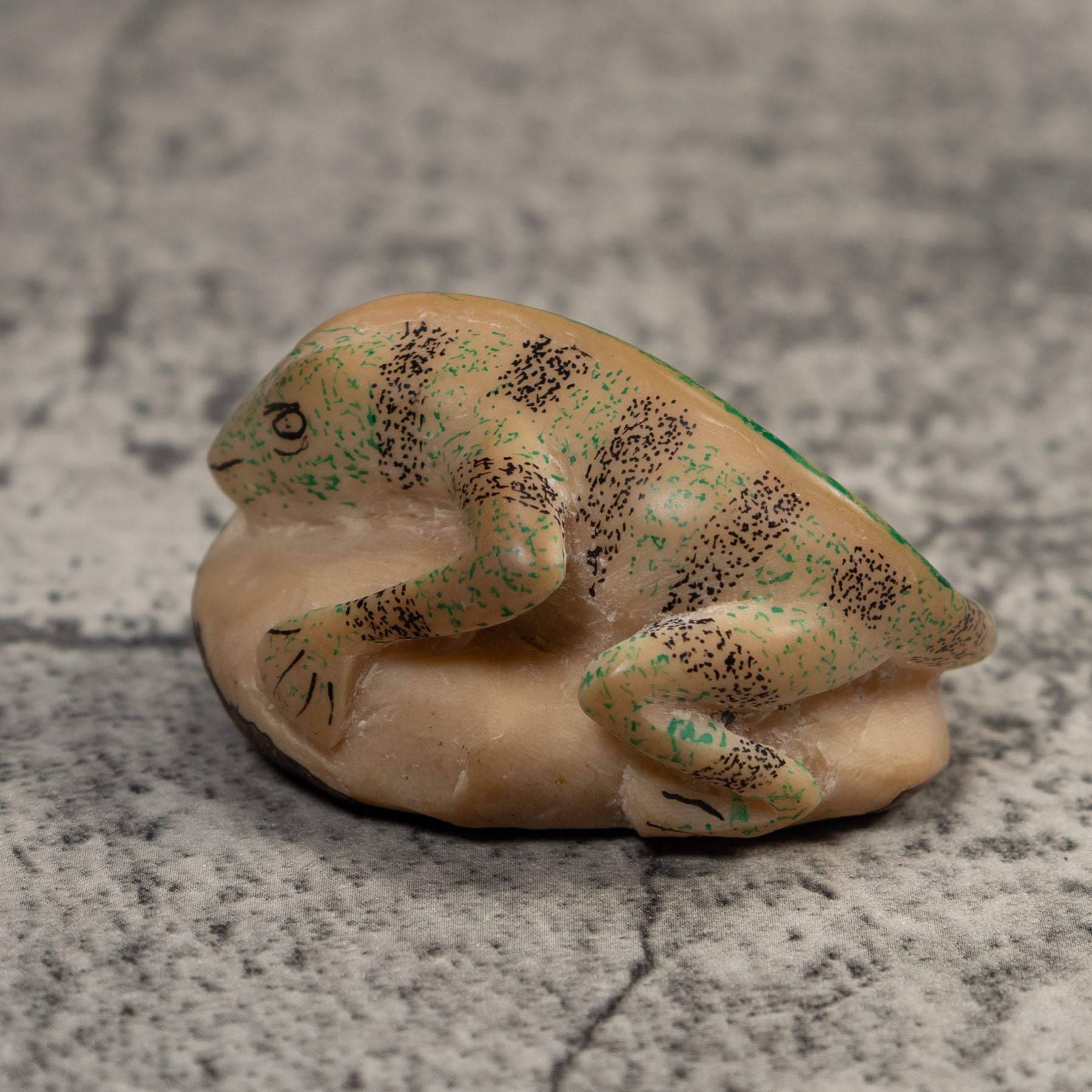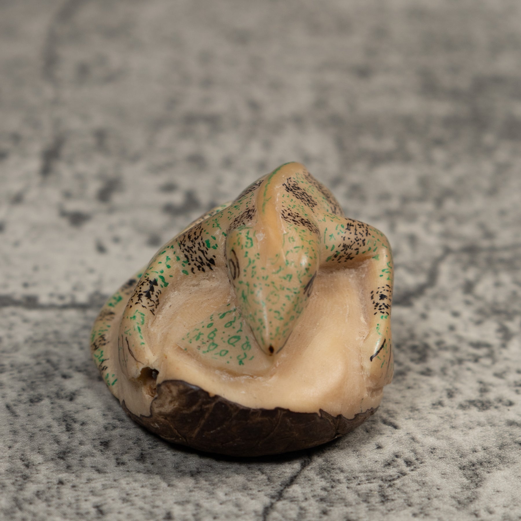Vintage Green And Black Gecko Lizard Tagua Carving