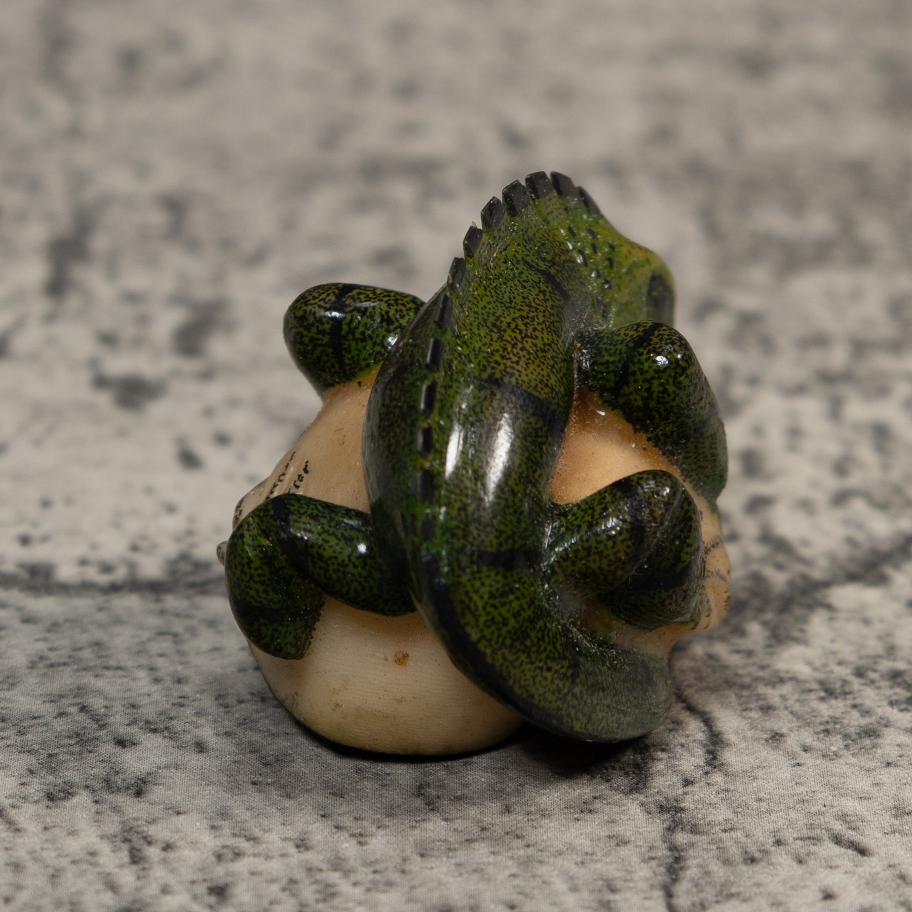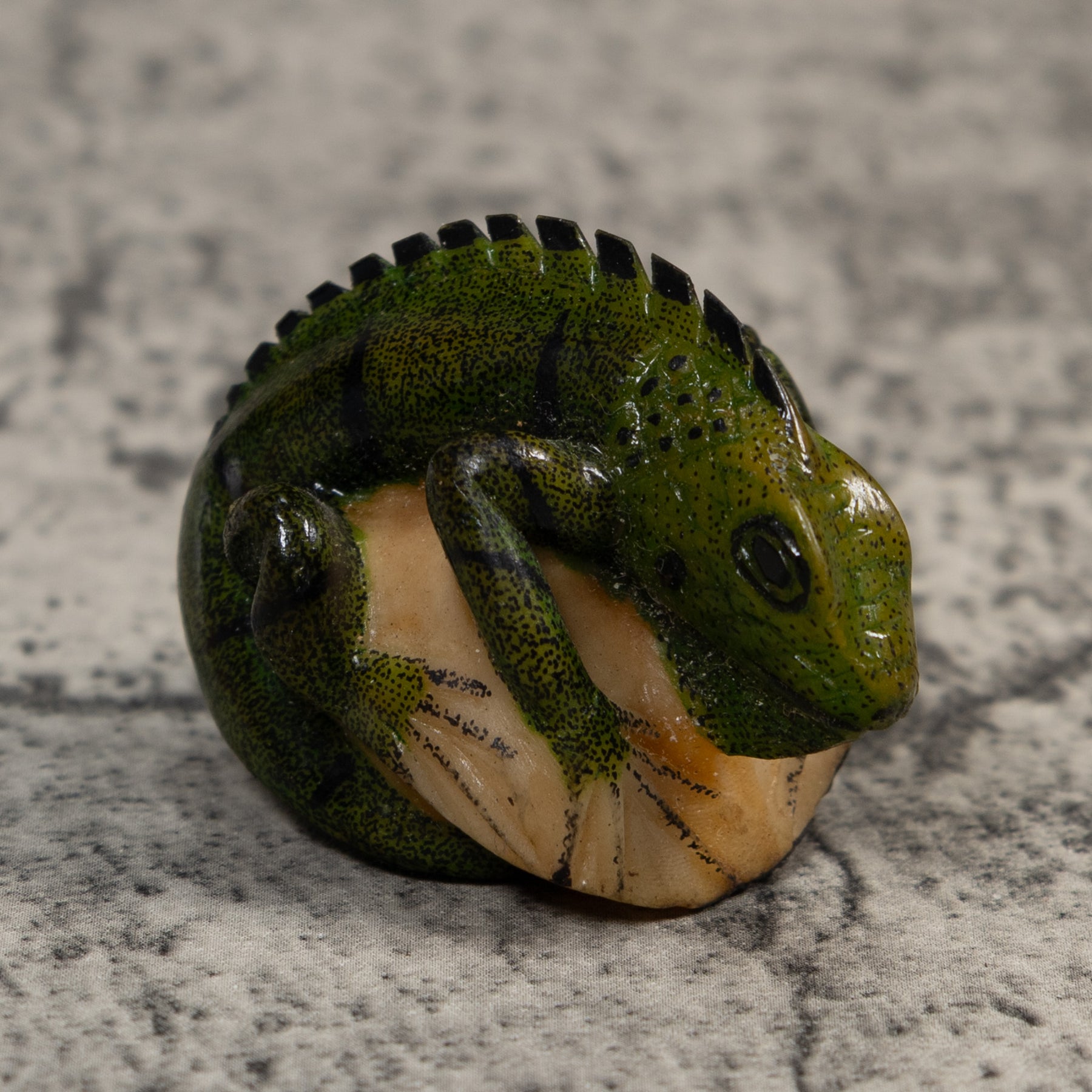 Vintage Green And Black Iguana Lizard Tagua Carving