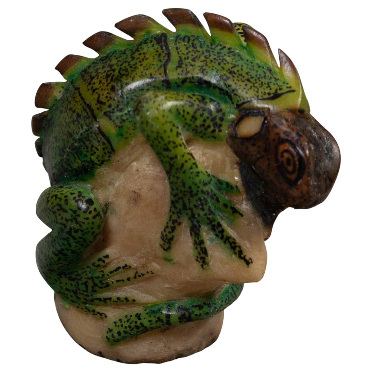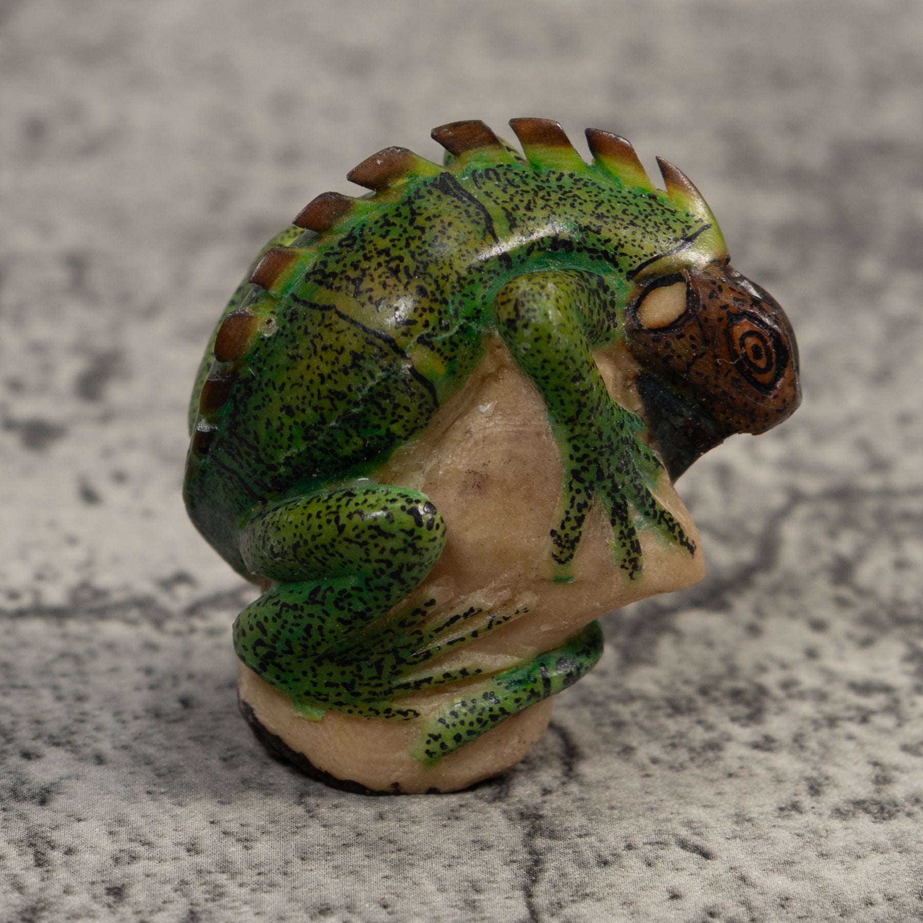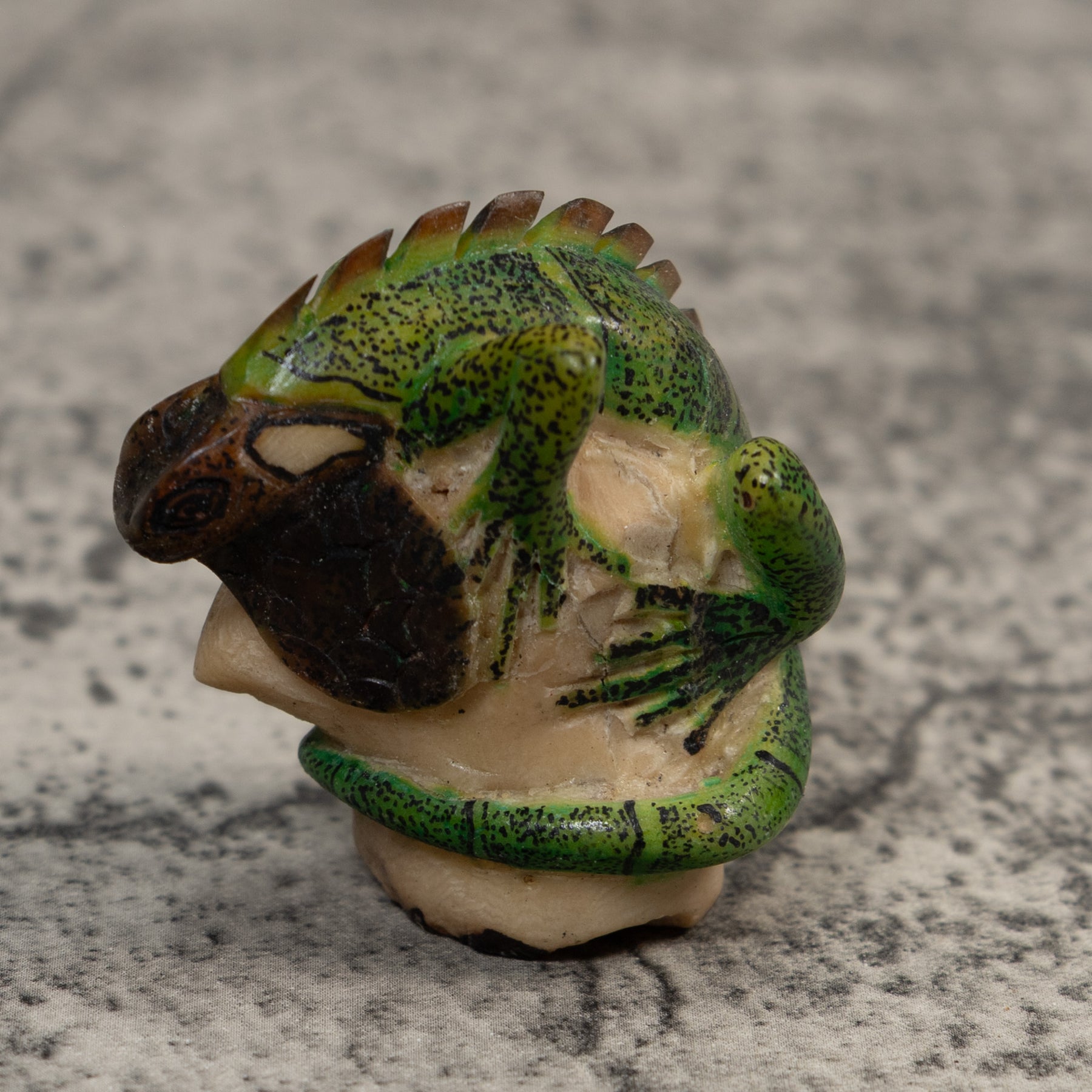 Vintage Green And Black Iguana Lizard Tagua Carving