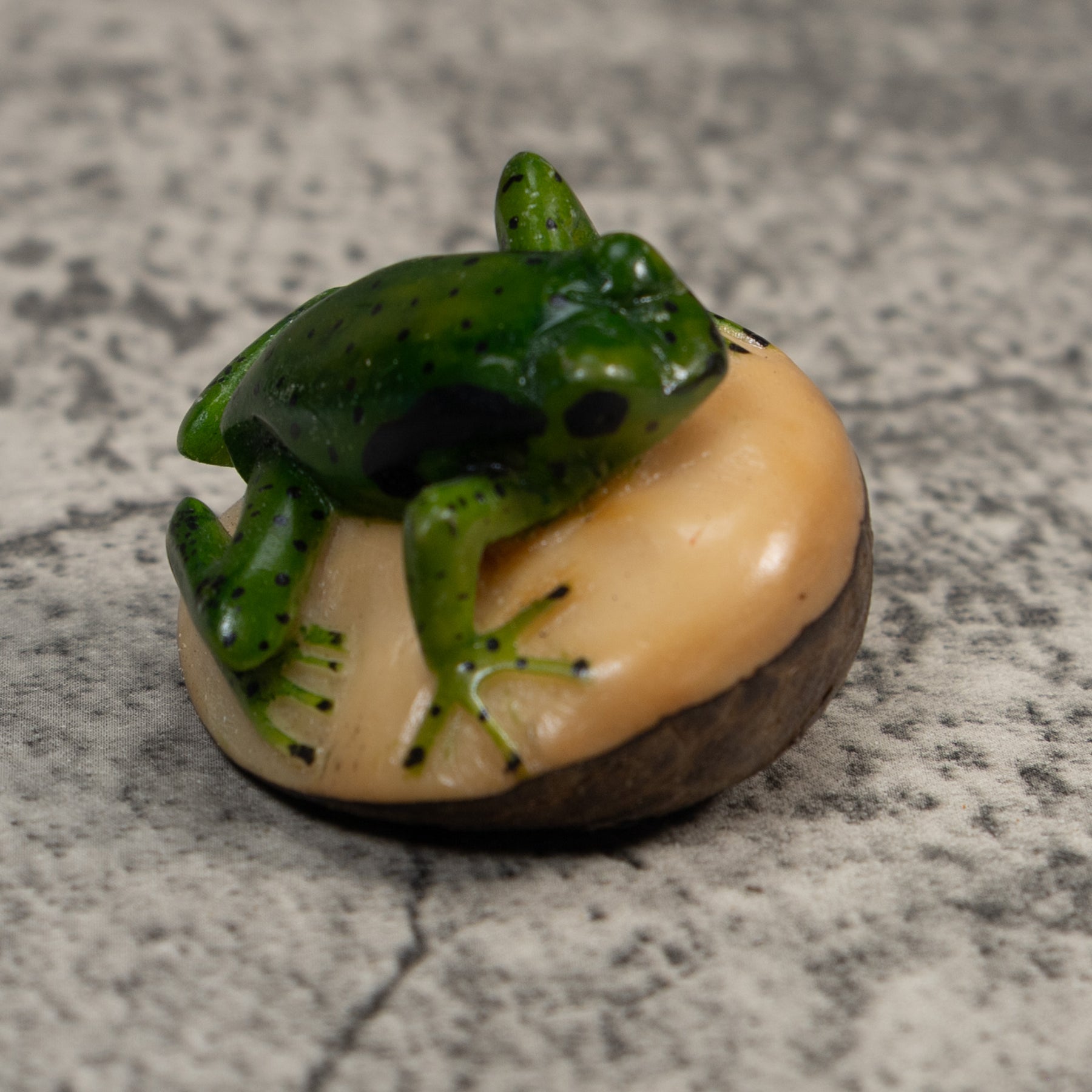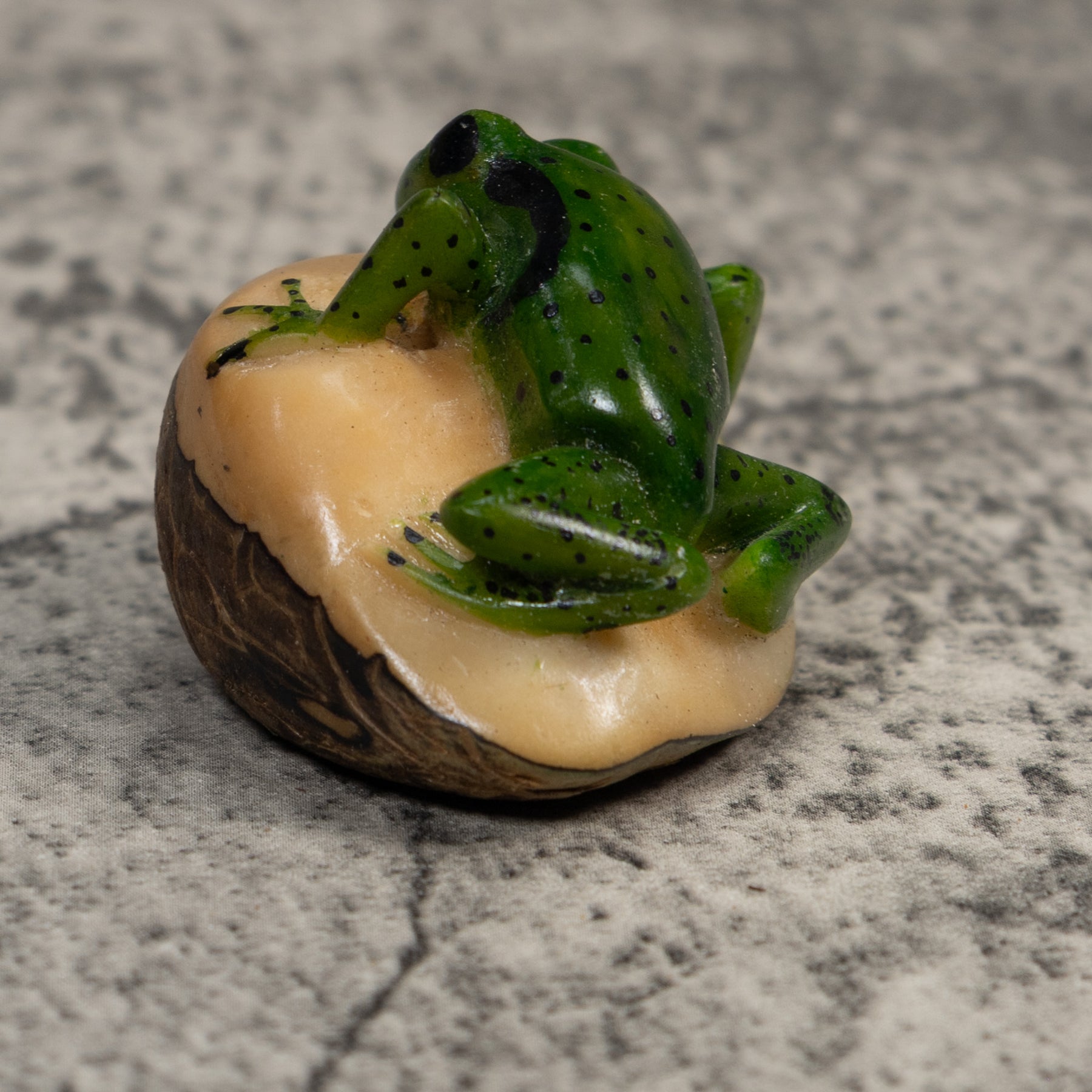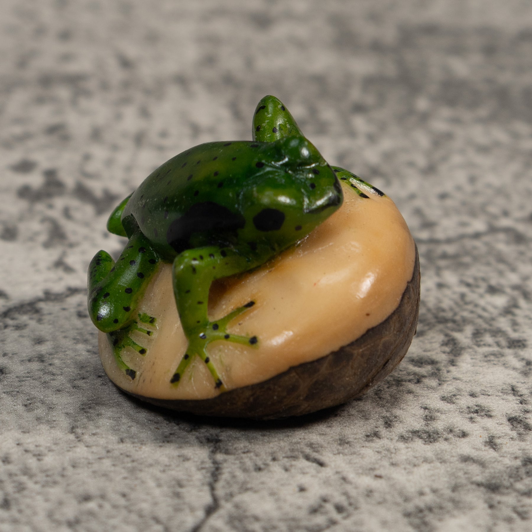 Vintage Green And Black Poison Dart Frog Tagua Carving