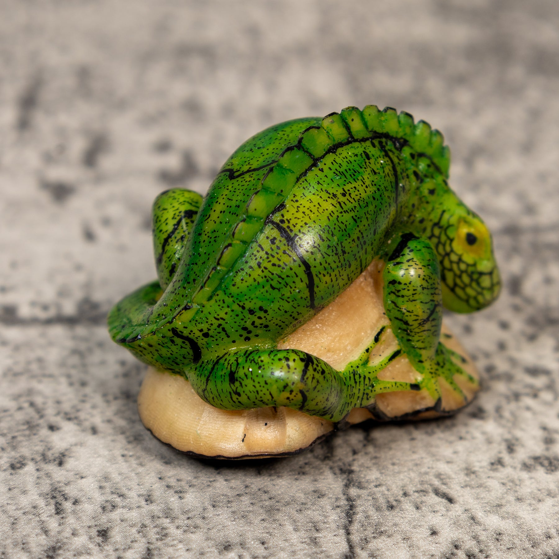 Hand carved from sustainably harvested tagua nut, often called “vegetable ivory”, this charming Iguana celebrates the rich biodiversity of the Latin American rainforest. Each small sculpture is created by skilled artisans in Panama who carefully shape and polish the natural nut before bringing the animal to life with detailed hand painting. Every piece is made by our artisan partners for TraderBrock, helping support traditional craft and fair, long term relationships with local makers.