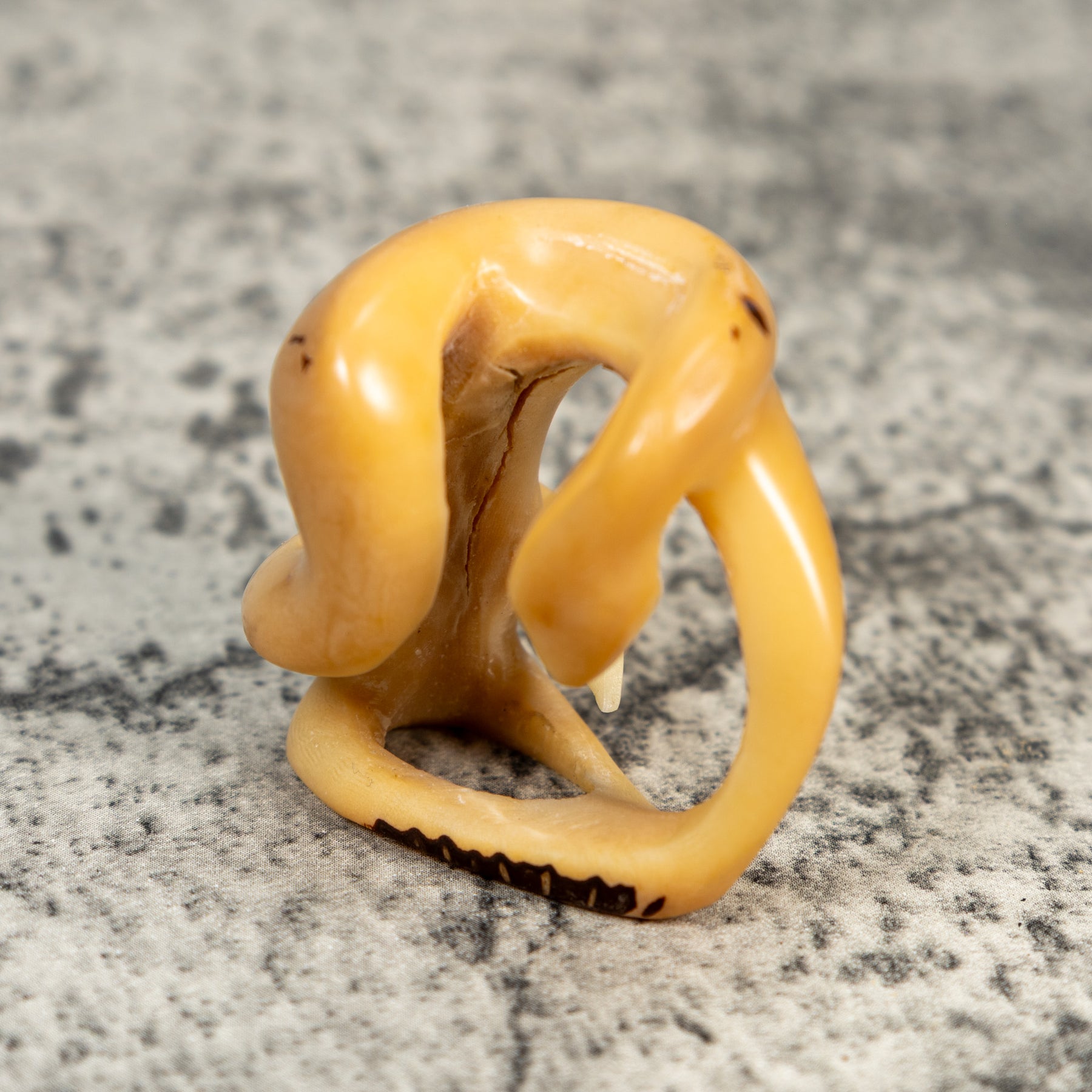 Hand carved from sustainably harvested tagua nut, often called “vegetable ivory”, this charming Snake celebrates the rich biodiversity of the Latin American rainforest. Each small sculpture is created by skilled artisans in Panama who carefully shape and polish the natural nut before bringing the animal to life with detailed hand painting. Every piece is made by our artisan partners for TraderBrock, helping support traditional craft and fair, long term relationships with local makers.