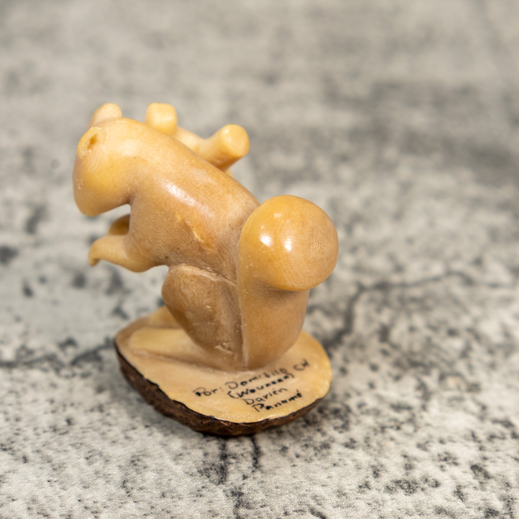 Hand carved from sustainably harvested tagua nut, often called “vegetable ivory”, this charming Squirrel celebrates the rich biodiversity of the Latin American rainforest. Each small sculpture is created by skilled artisans in Panama who carefully shape and polish the natural nut before bringing the animal to life with detailed hand painting. Every piece is made by our artisan partners for TraderBrock, helping support traditional craft and fair, long term relationships with local makers.
