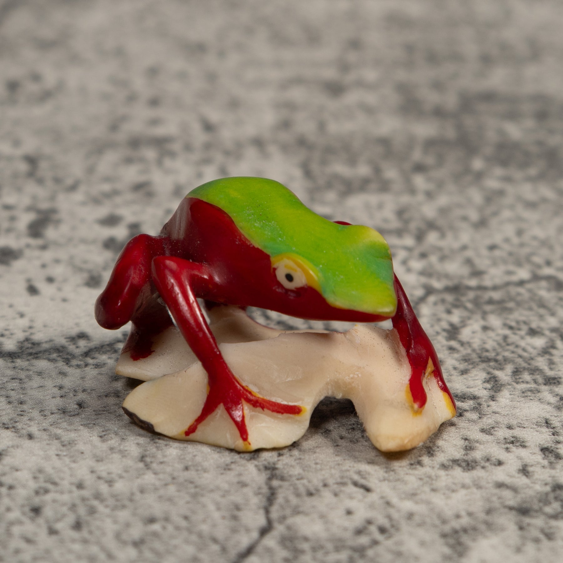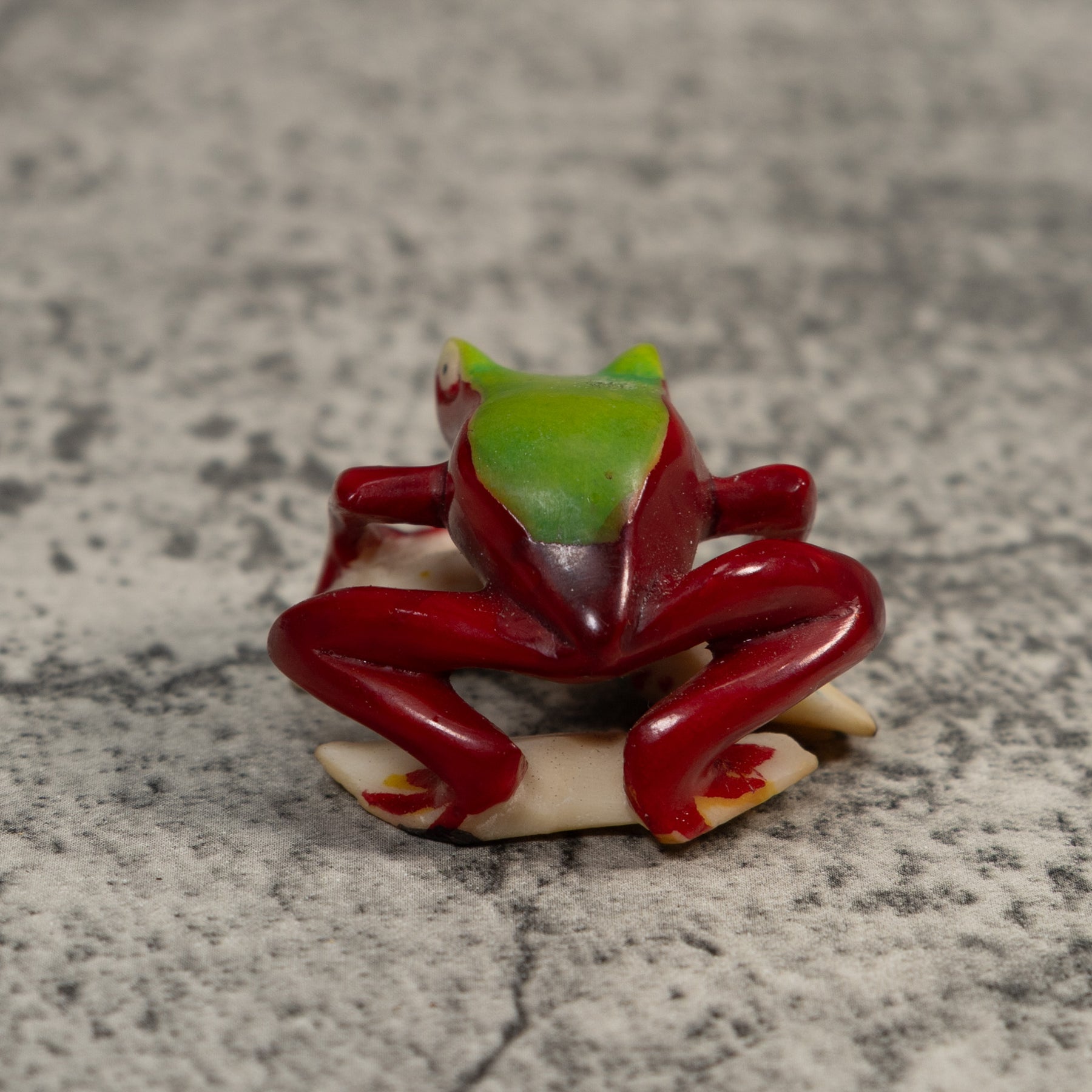 Vintage Red And Green Poison Dart Frog Tagua Carving