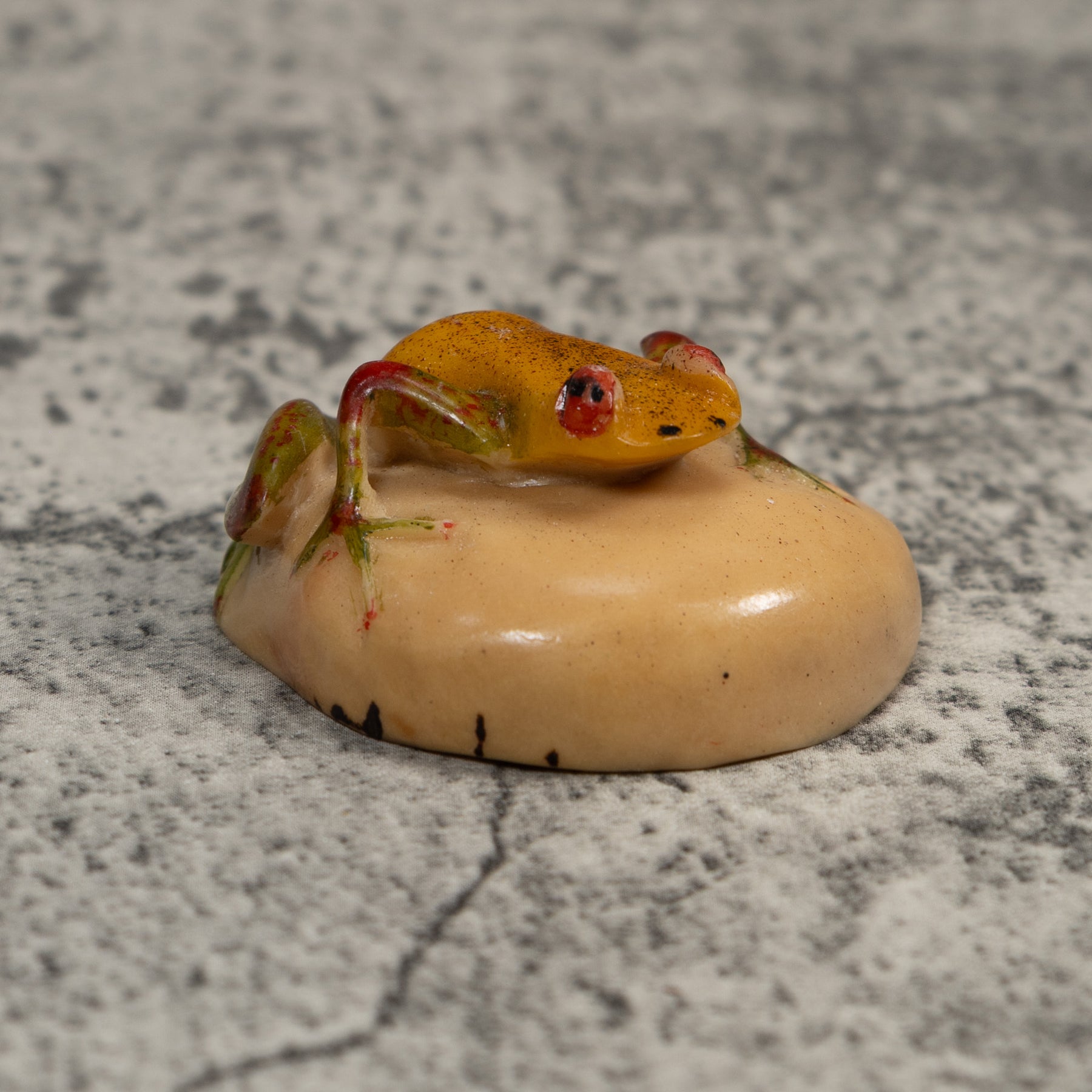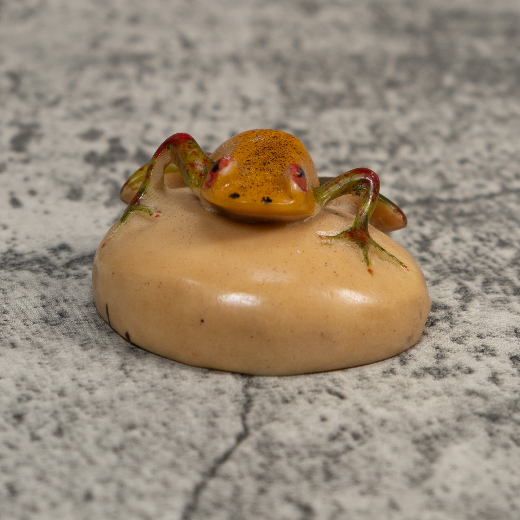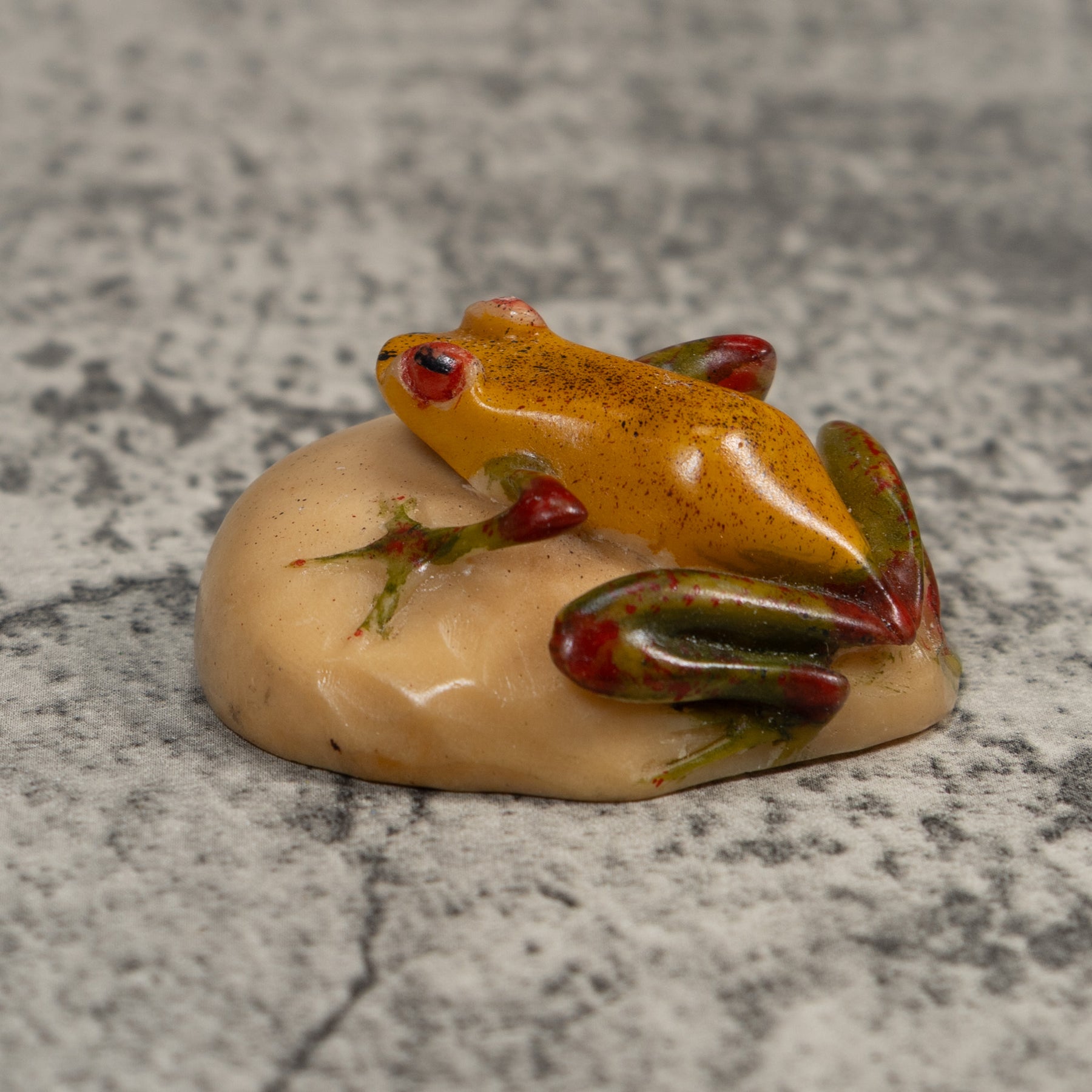 Vintage Redish And Gold Poison Dart Frog Tagua Carving