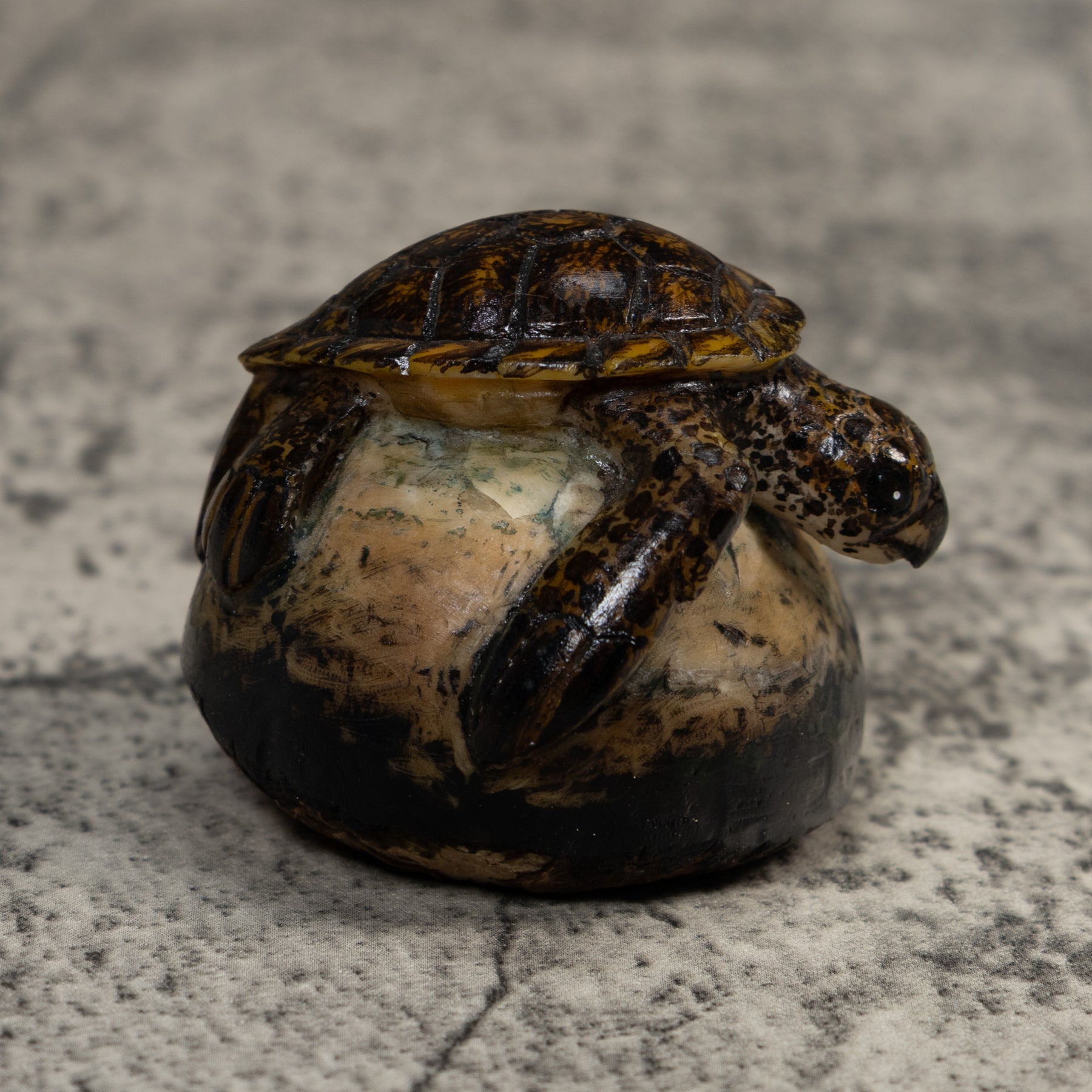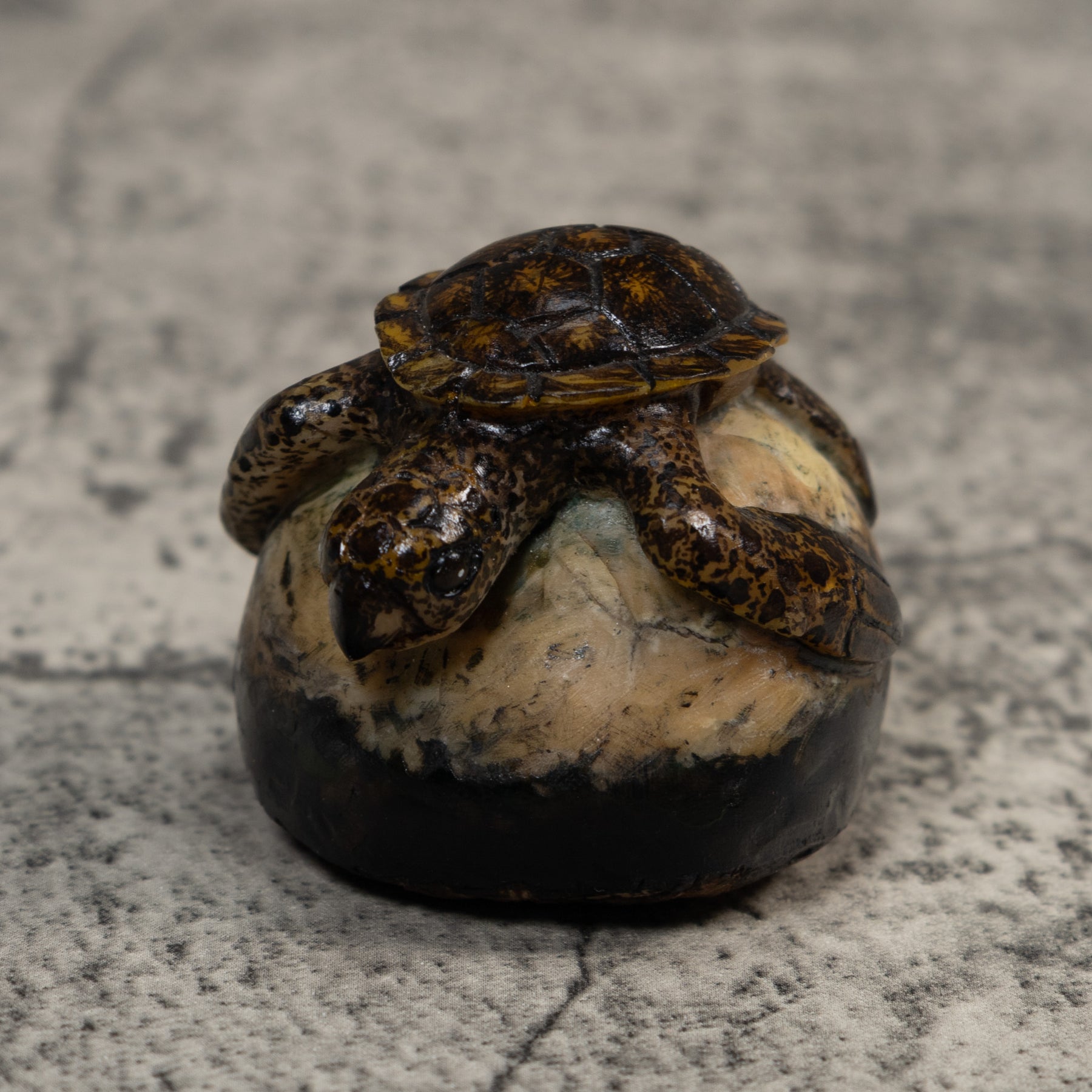 Hand carved from sustainably harvested tagua nut, often called “vegetable ivory”, this charming Sea Turtle celebrates the rich biodiversity of the Latin American rainforest. Each small sculpture is created by skilled artisans in Panama who carefully shape and polish the natural nut before bringing the animal to life with detailed hand painting. Every piece is made by our artisan partners for TraderBrock, helping support traditional craft and fair, long term relationships with local makers.