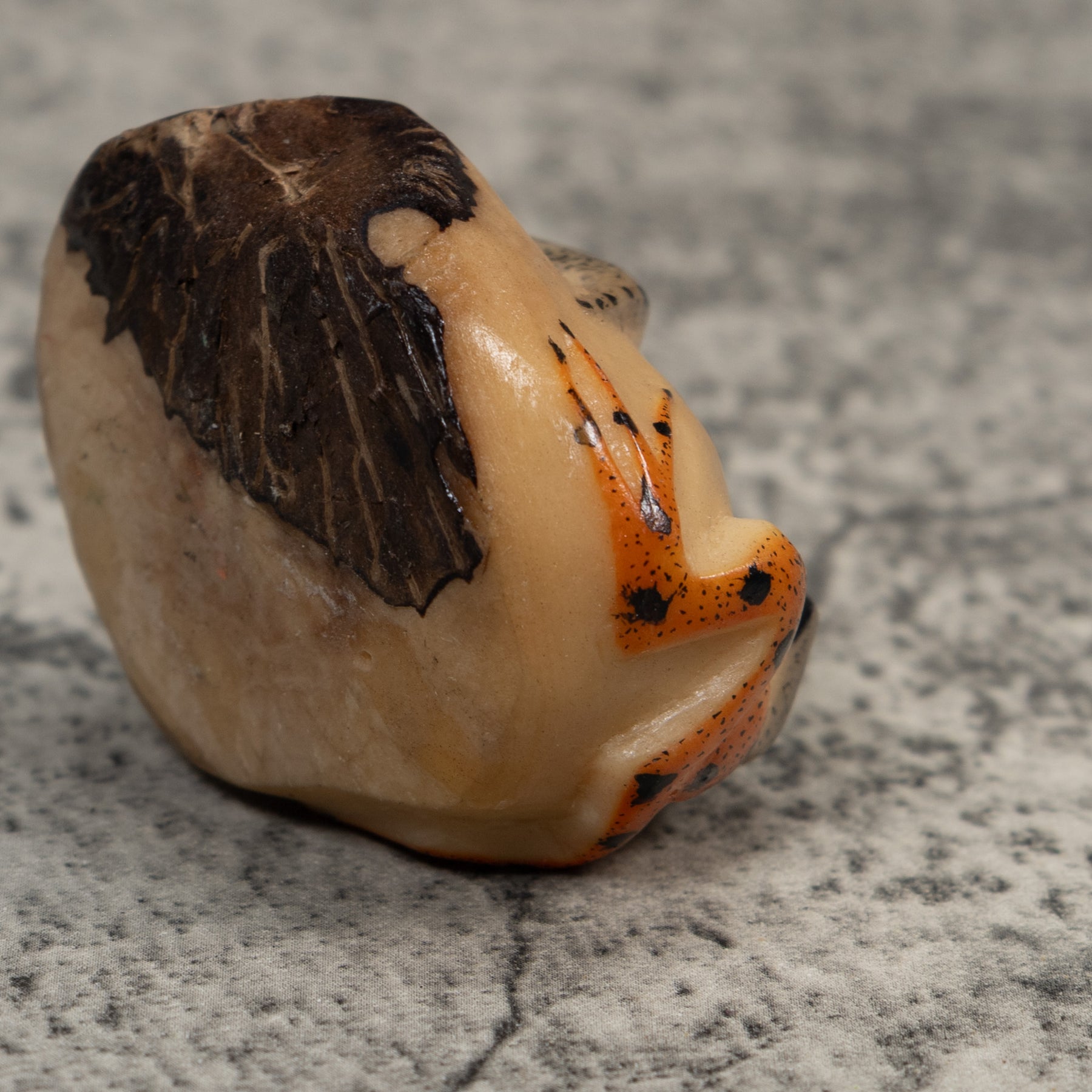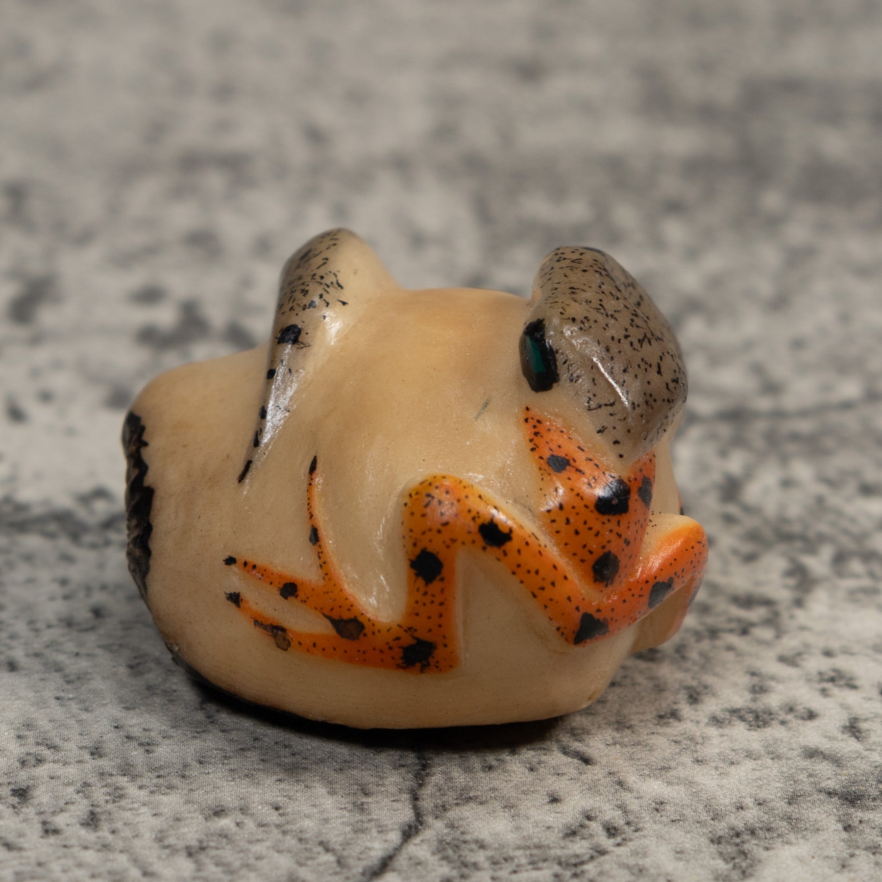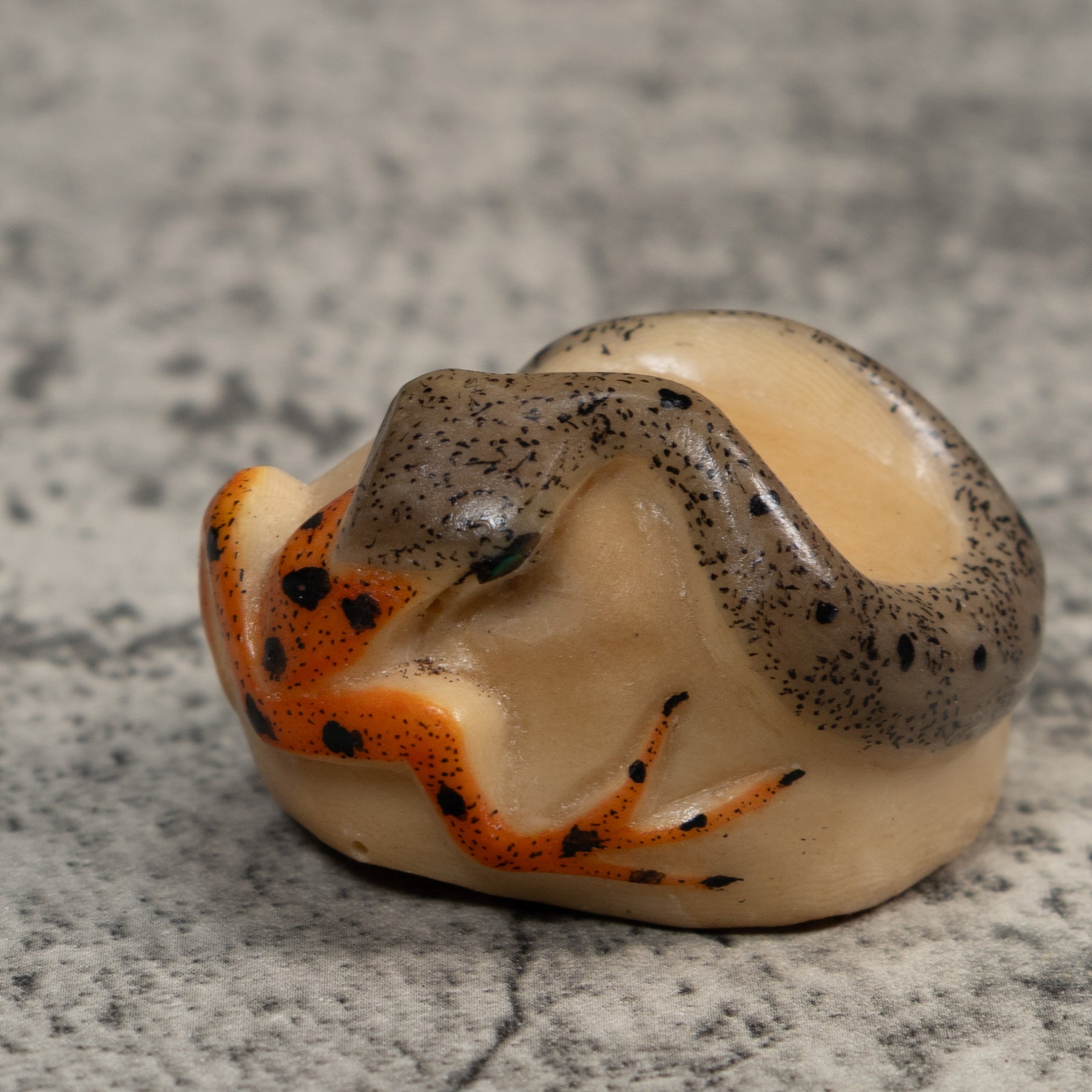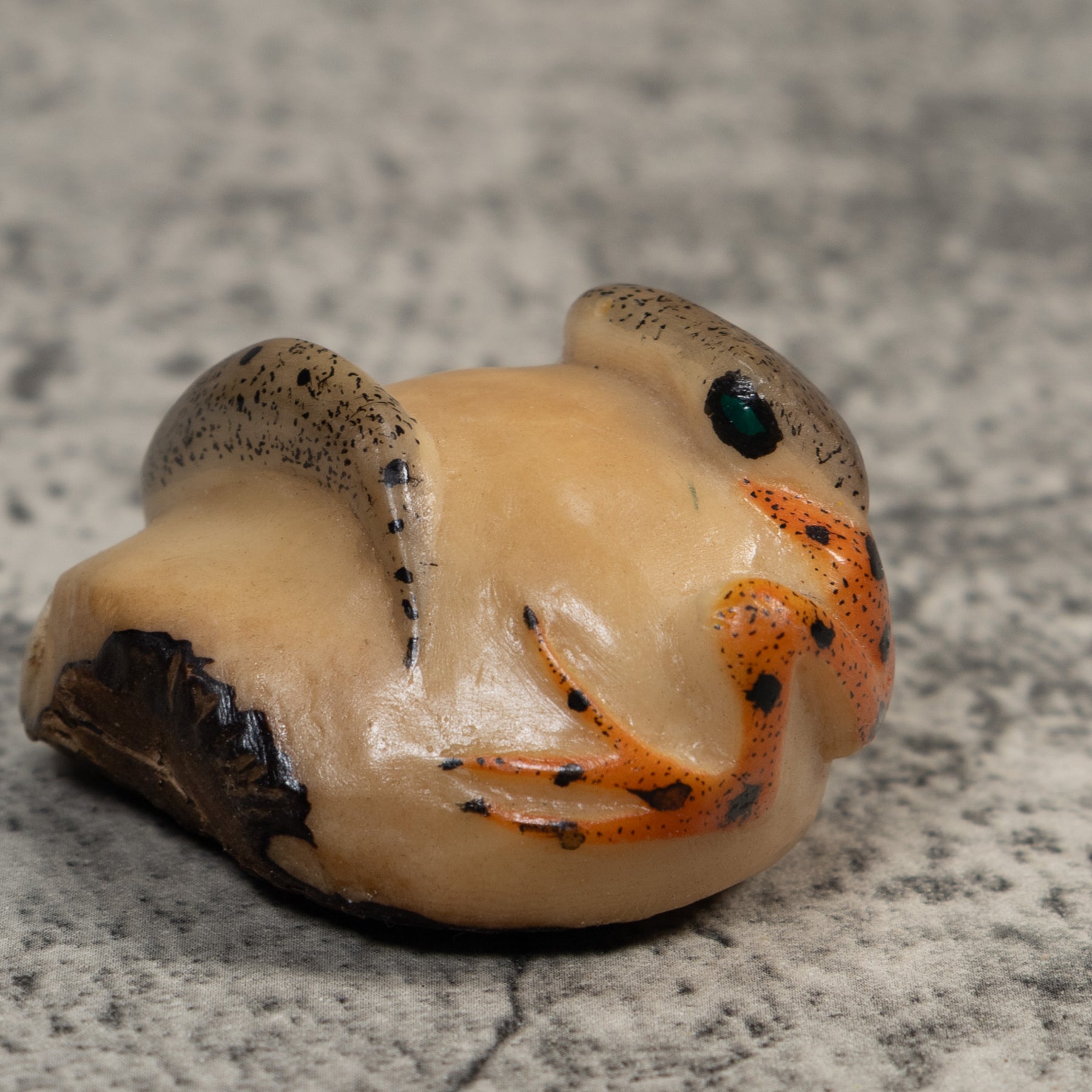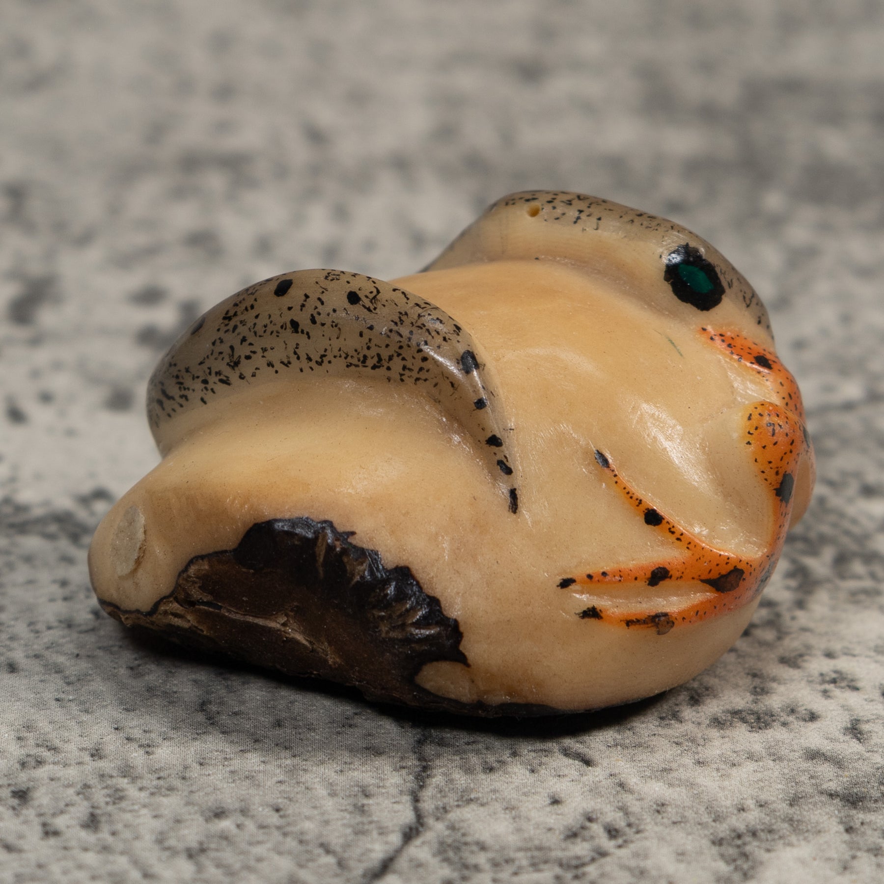 Hand carved from sustainably harvested tagua nut, often called “vegetable ivory”, this charming Snake Eating Frog celebrates the rich biodiversity of the Latin American rainforest. Each small sculpture is created by skilled artisans in Panama who carefully shape and polish the natural nut before bringing the animal to life with detailed hand painting. Every piece is made by our artisan partners for TraderBrock, helping support traditional craft and fair, long term relationships with local makers.
