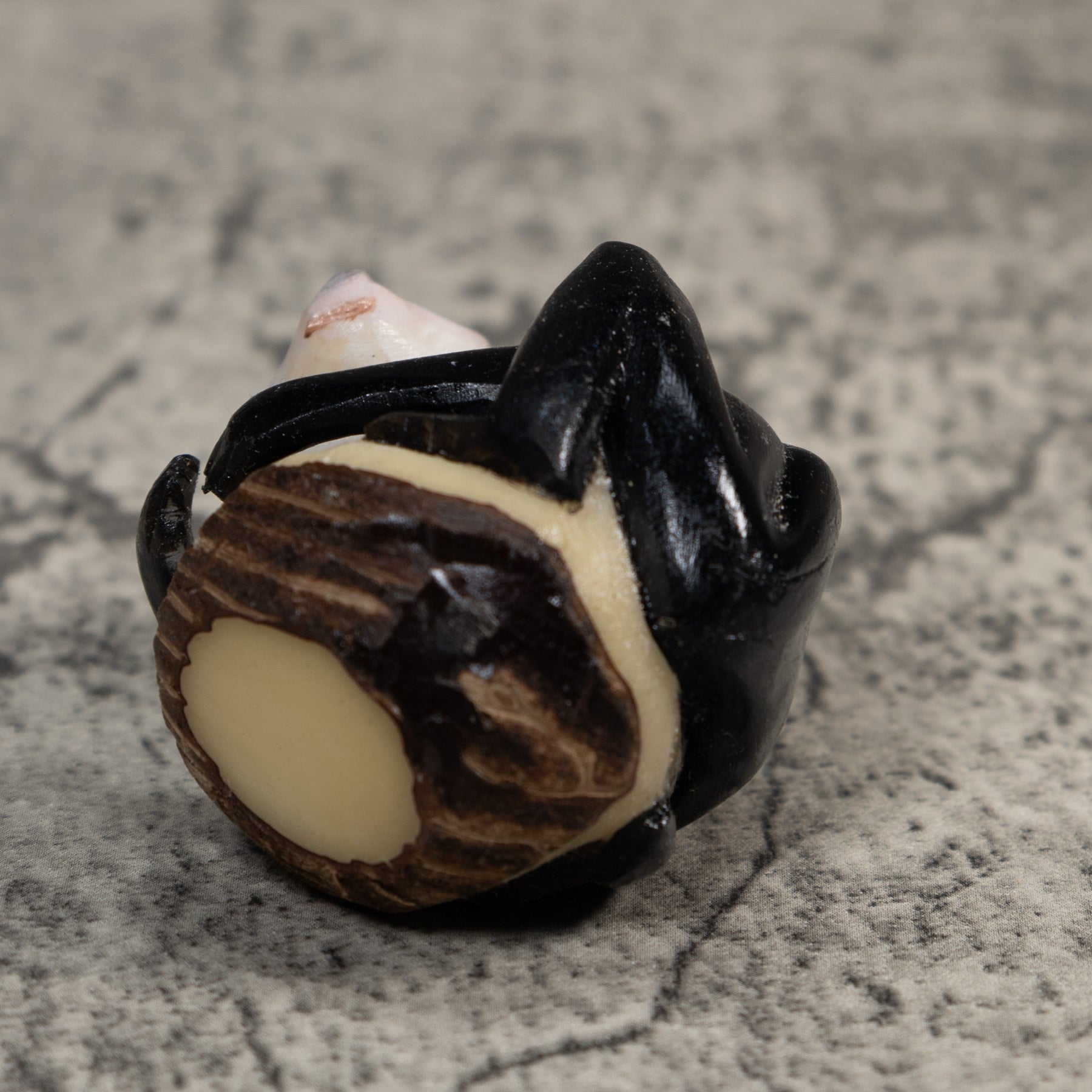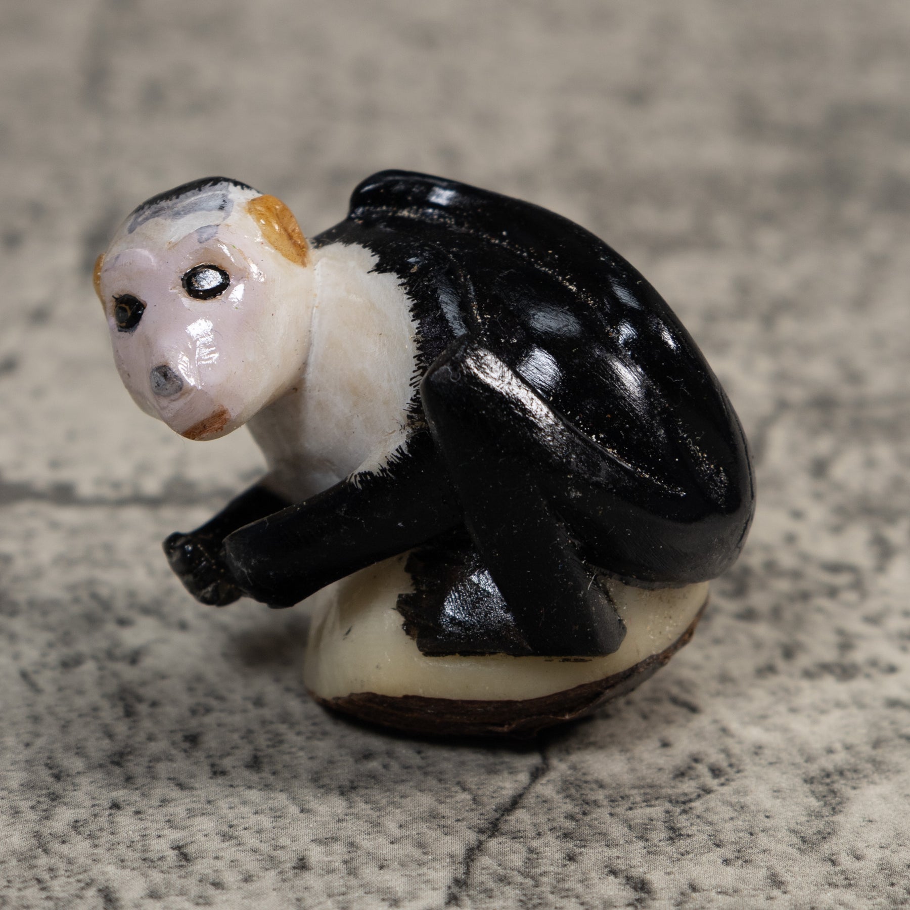 Hand carved from sustainably harvested tagua nut, often called “vegetable ivory”, this charming Monkey celebrates the rich biodiversity of the Latin American rainforest. Each small sculpture is created by skilled artisans in Panama who carefully shape and polish the natural nut before bringing the animal to life with detailed hand painting. Every piece is made by our artisan partners for TraderBrock, helping support traditional craft and fair, long term relationships with local makers.