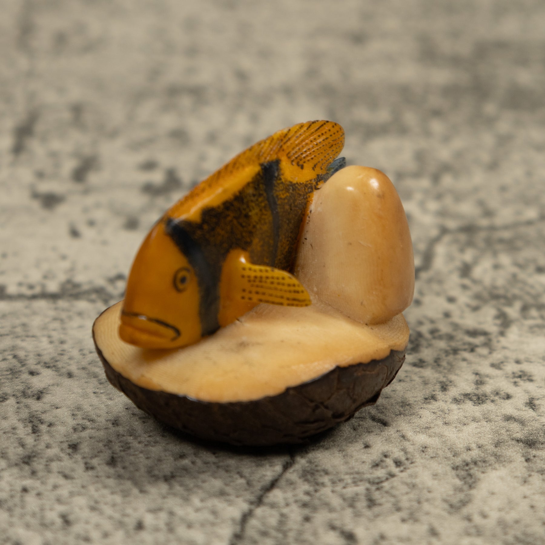 Hand carved from sustainably harvested tagua nut, often called “vegetable ivory”, this charming Vintage Tropical Fish  celebrates the rich biodiversity of the Latin American rainforest. Each small sculpture is created by skilled artisans in Panama who carefully shape and polish the natural nut before bringing the animal to life with detailed hand painting. Every piece is made by our artisan partners for TraderBrock, helping support traditional craft and fair, long term relationships with local makers.